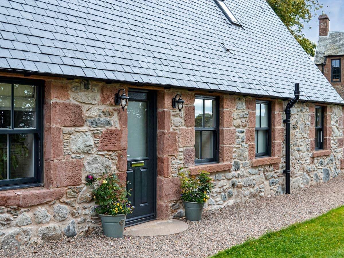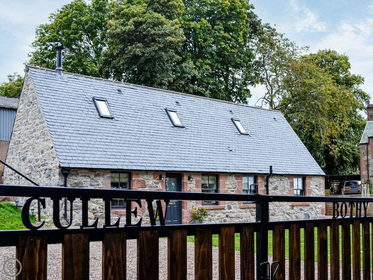Cullew Bothy is in Dykehead, near Kirriemuir. It's a detached stone cottage on our farm. There are fields with our horses, sheep, and chickens around it. It's quiet.