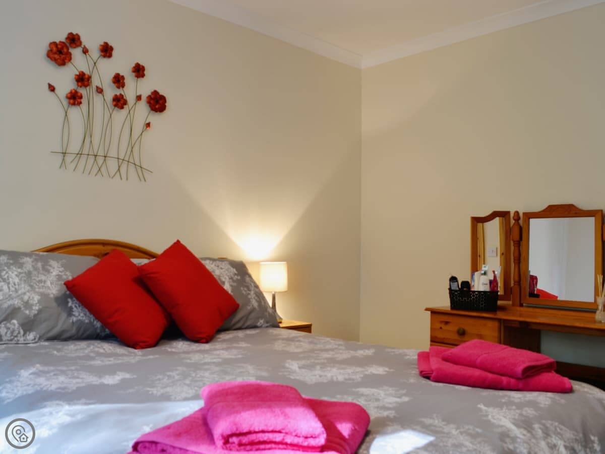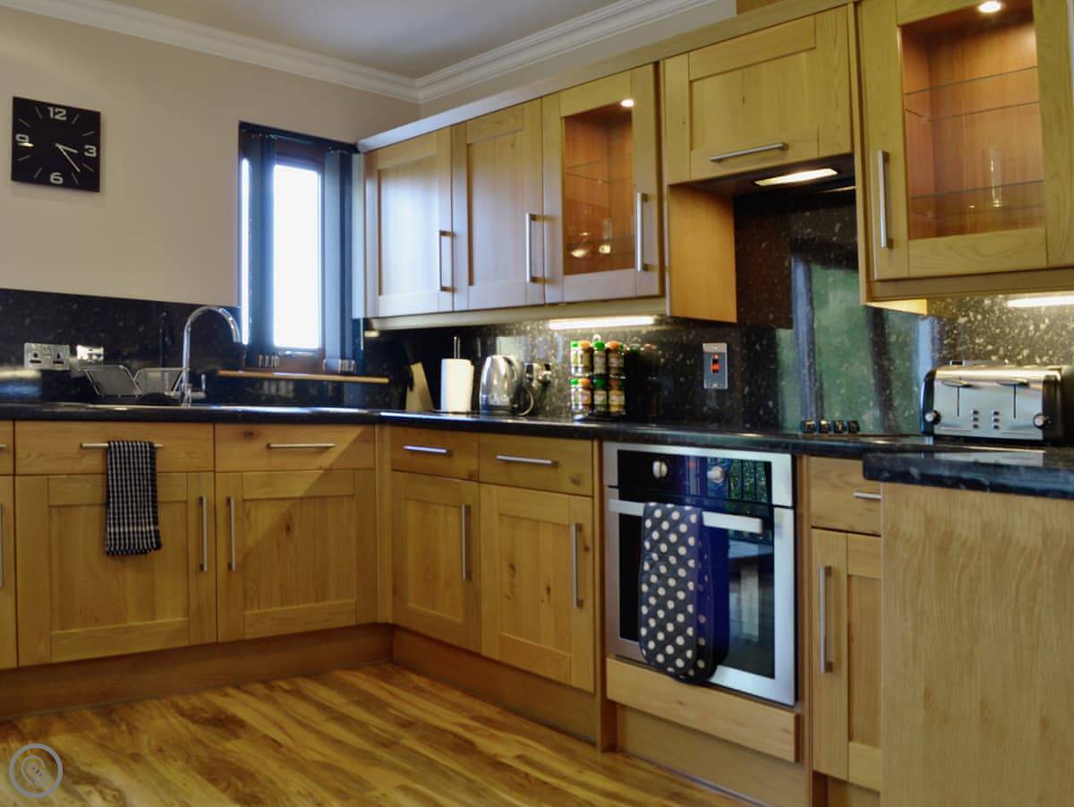 It's a one-bedroom place for two people. It’s got a 4-star rating. It's comfortable and modern, with level access and a wet room, so it works well for wheelchairs or anyone who finds steps difficult. The kitchen has what you need. There’s a washing machine, TV, WiFi, and parking right outside.