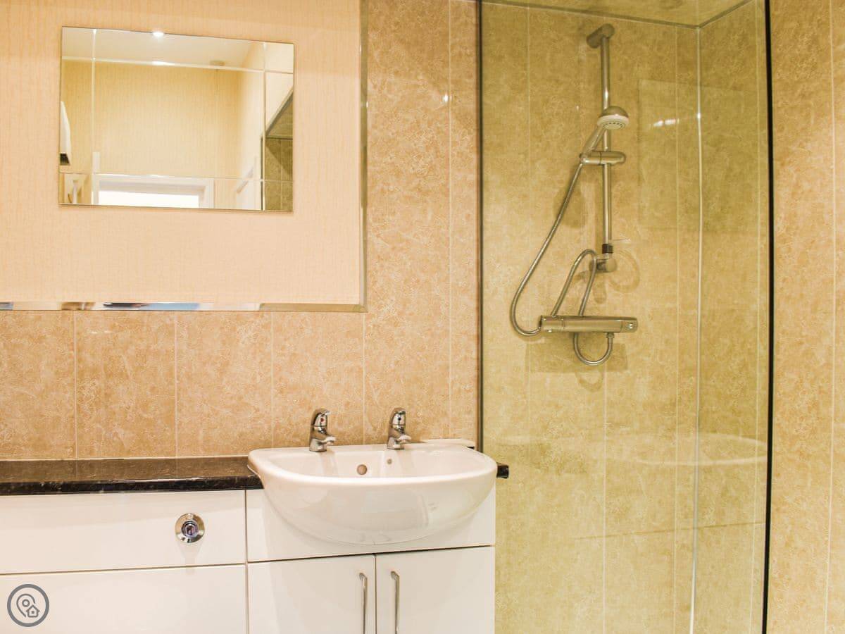 The bedroom is a good size. Big built-in wardrobes. The shower is a walk-in power shower.
