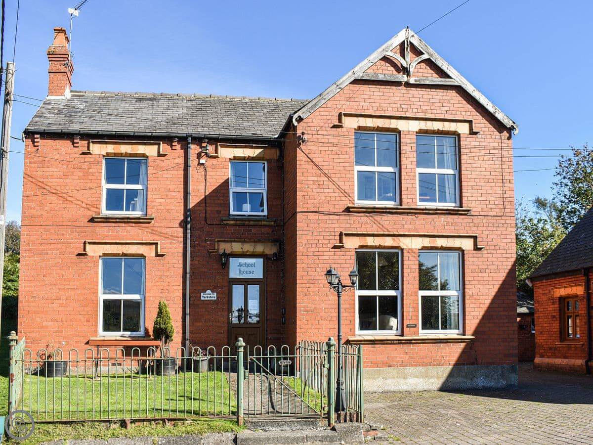 Outside, there's a small shared garden at the front with a bench. The owners live next door in the other part of the old school. You park in what used to be the playground.