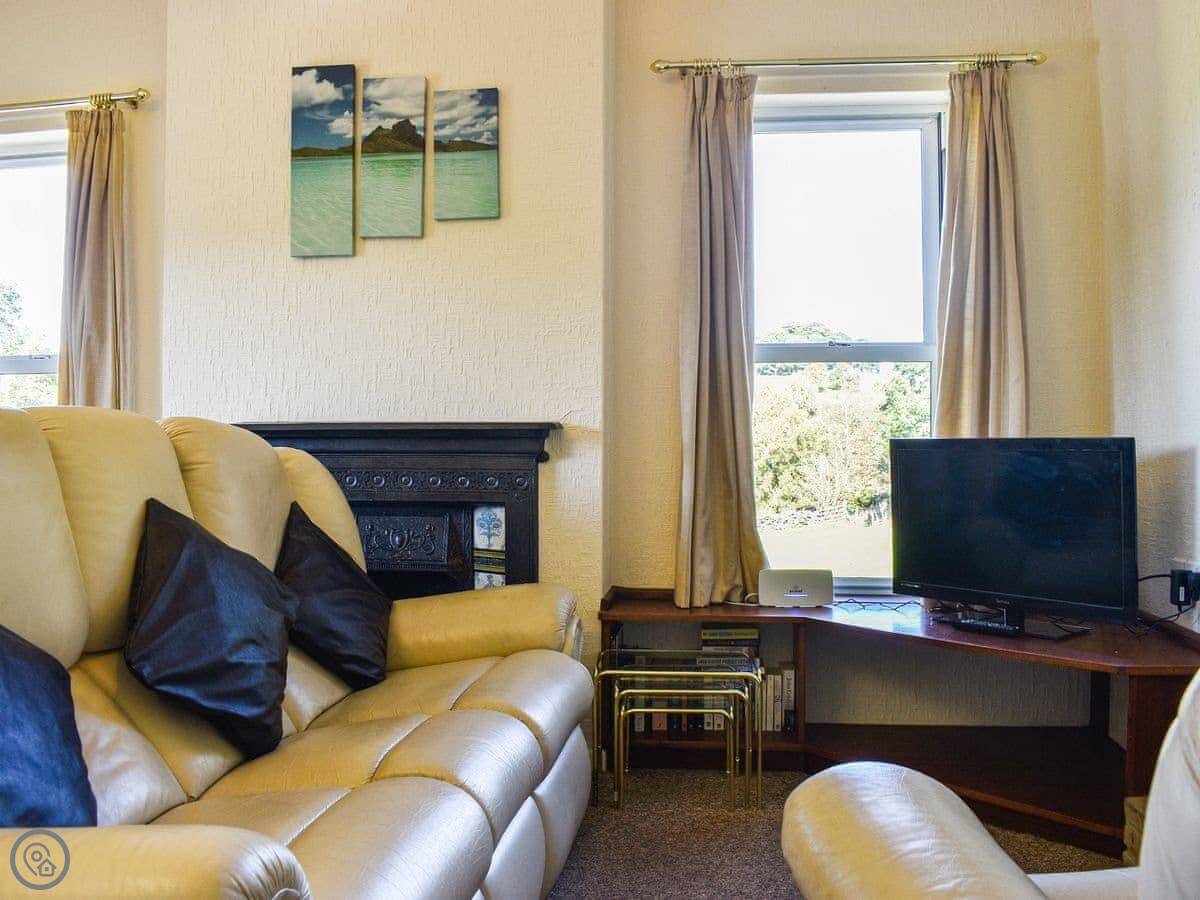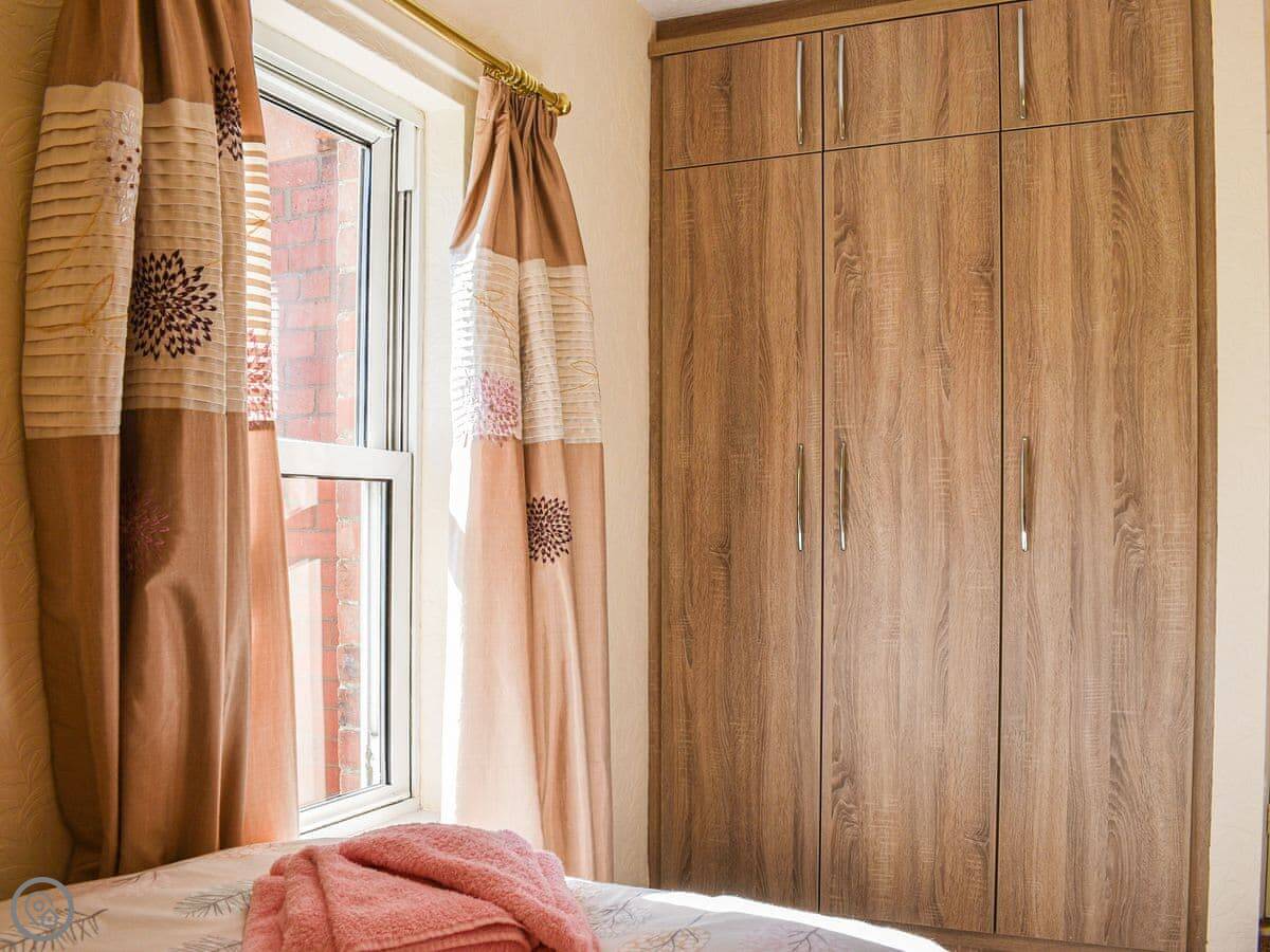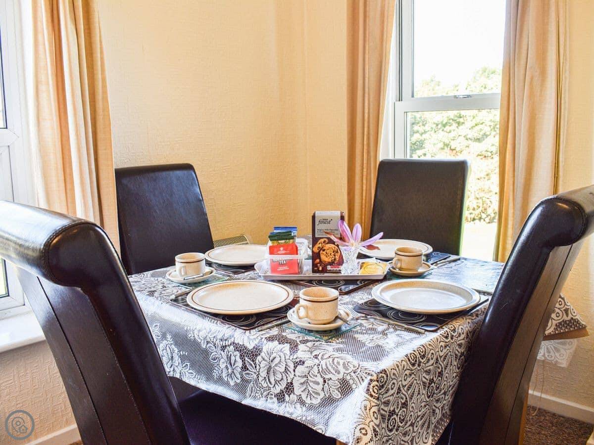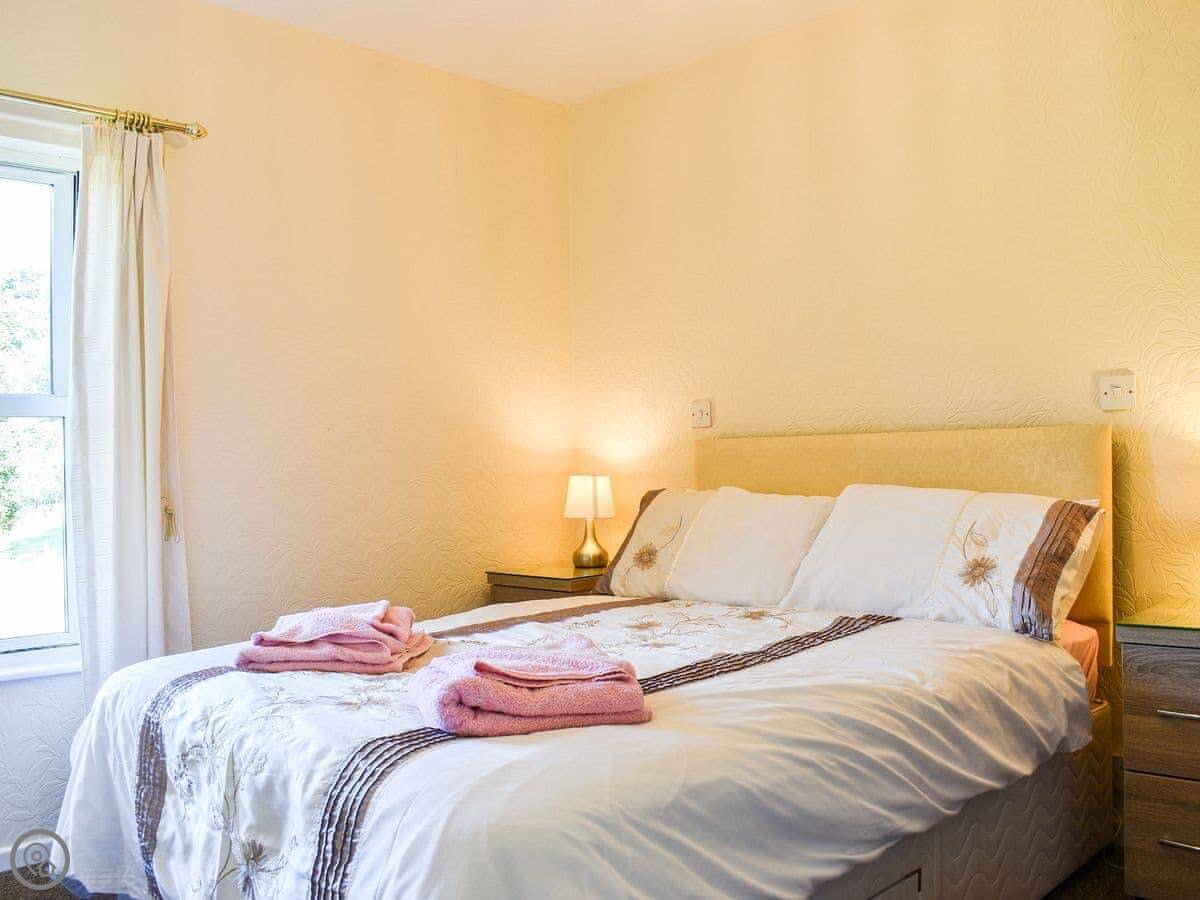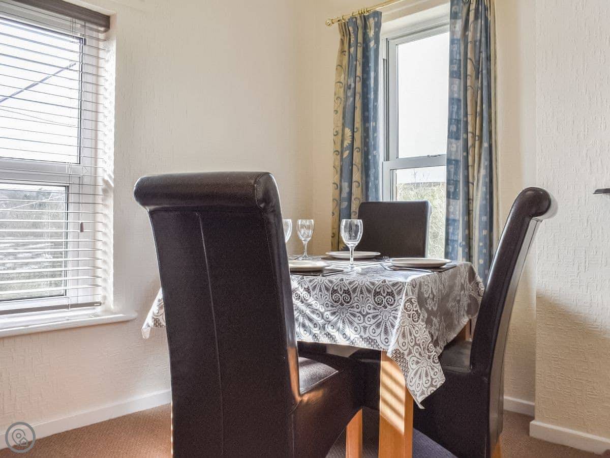 It sleeps four. Two bedrooms, one double and one twin. One bathroom with a walk-in shower. It's got a 3 Star rating, so it's comfortable and clean. The kitchen has what you need, including a dishwasher and a washing machine.
