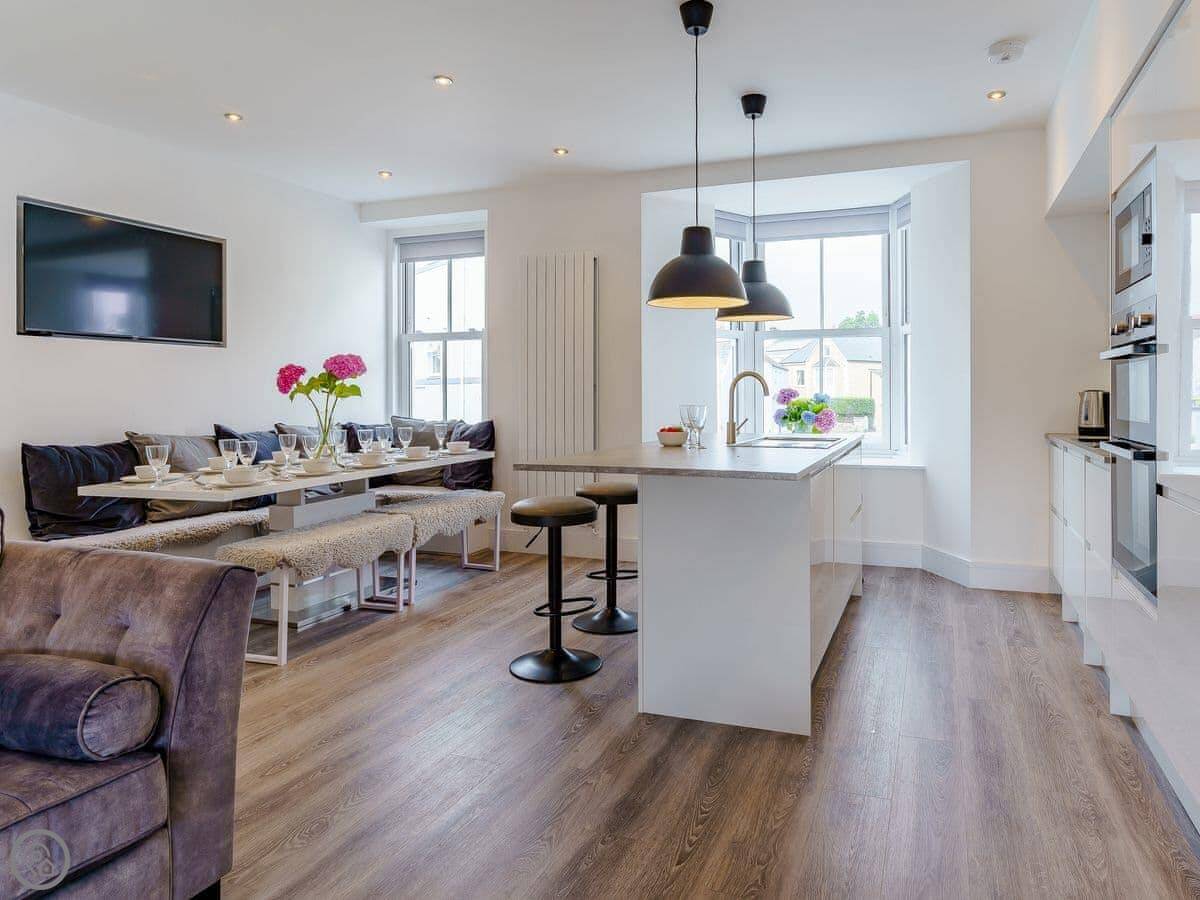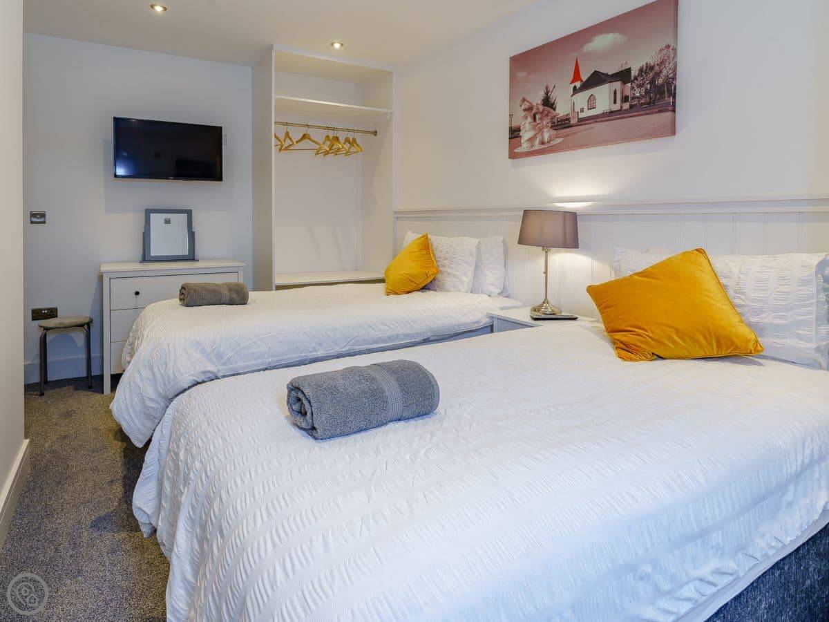 As you enter this beautiful property you will notice the attention to detail throughout. The ground and second floor are home to the bedrooms, boasting en-suite facilities and Smart TVs. The spacious open-plan living space on the first floor offers everything needed for the perfect holiday, with a well-equipped bespoke kitchen with breakfast bar area, two 55" Smart TVs so you don’t miss that game whilst cooking and an elegant living area, complete with a flame-effect fire for a cosy night in. The ground floor also boasts a second kitchen and a sitting room, with bedrooms leading onto an enclosed courtyard area to take in the balmy summers day.