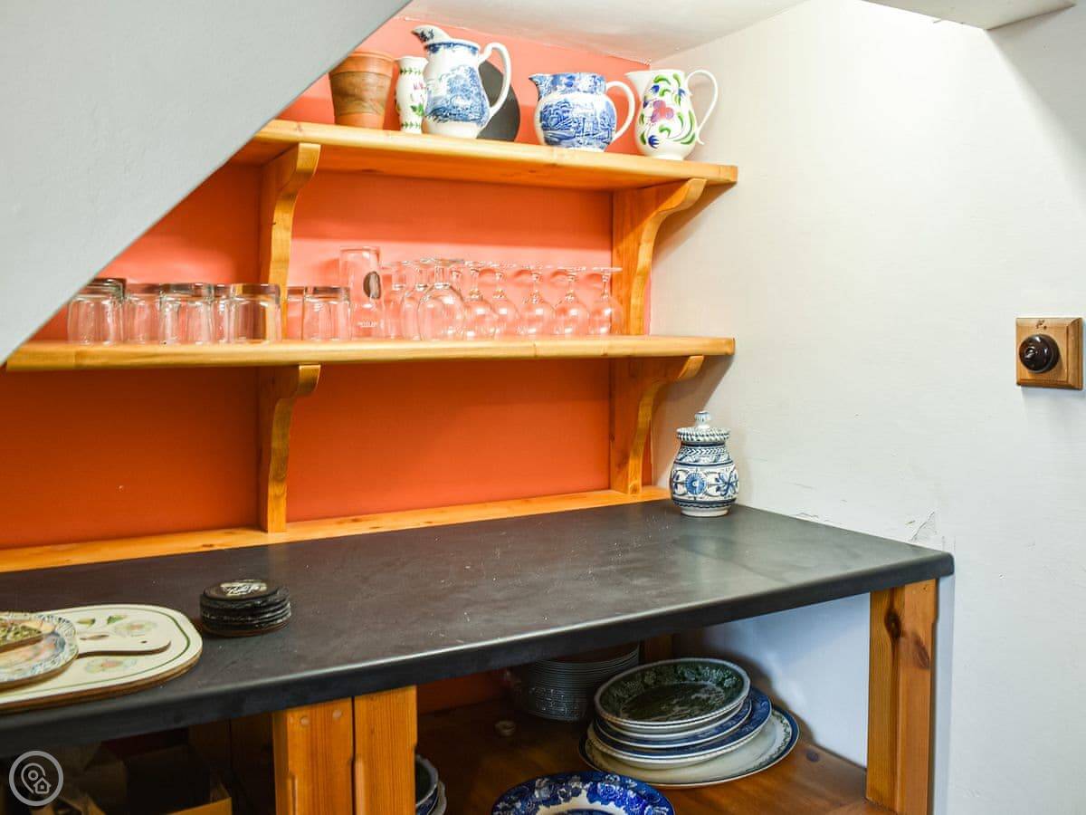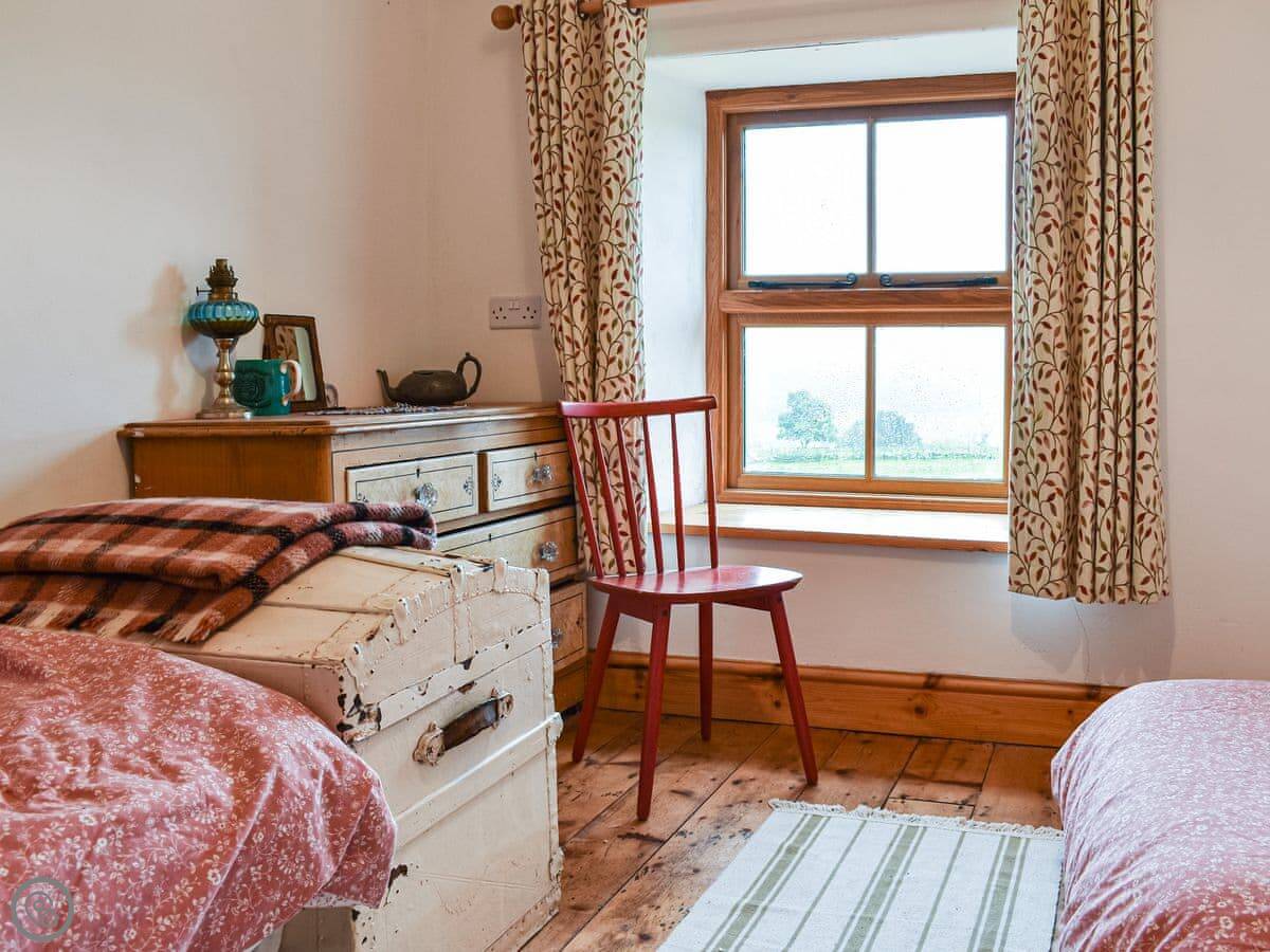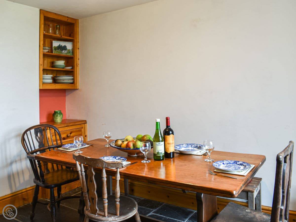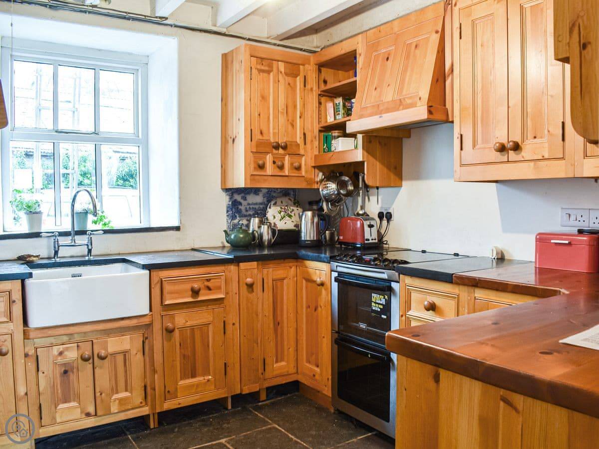 It sleeps eight across four bedrooms. There are two bathrooms. It's got a 3 Star rating, which is about right. It's comfortable and clean, but it's an old cottage. The ceilings are low in some rooms. The kitchen has what you need. The wood burner in the living room works well.
