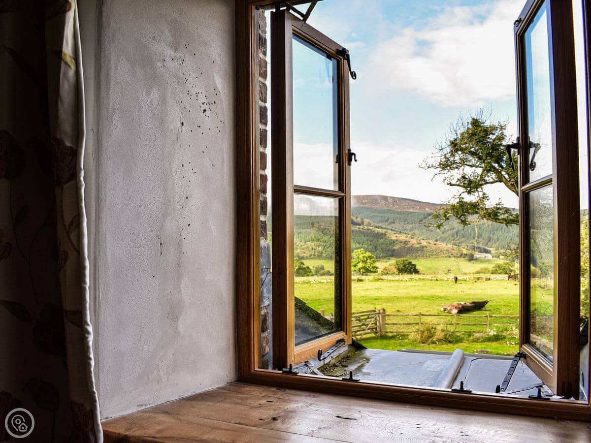 Nant Y Crogwyn is our family's old place near Penmachno. It's detached, so no neighbours on the other side of the wall. The views are all fields and hills.