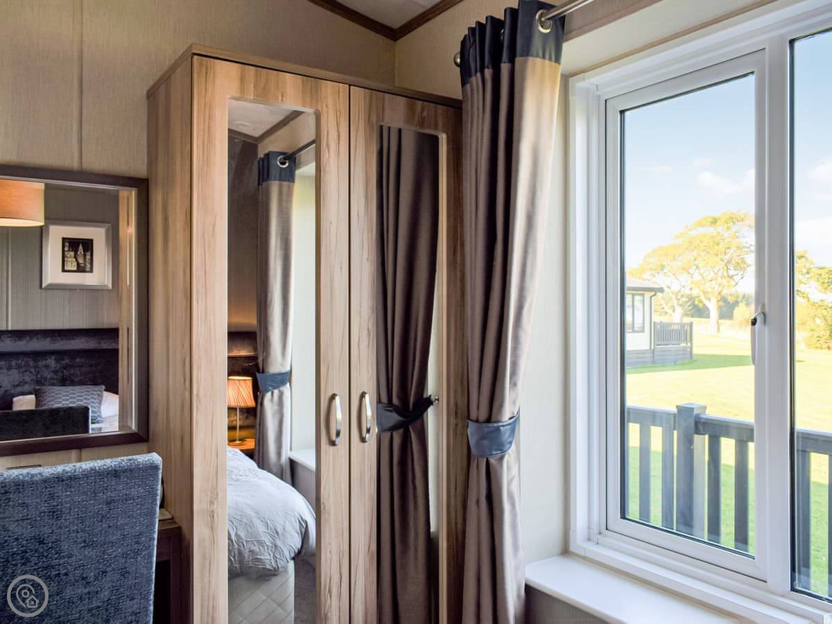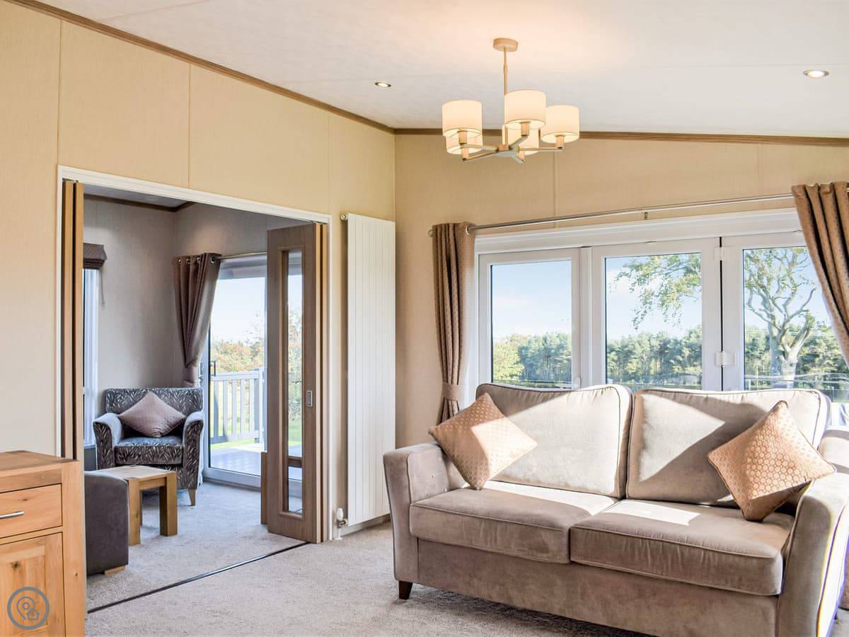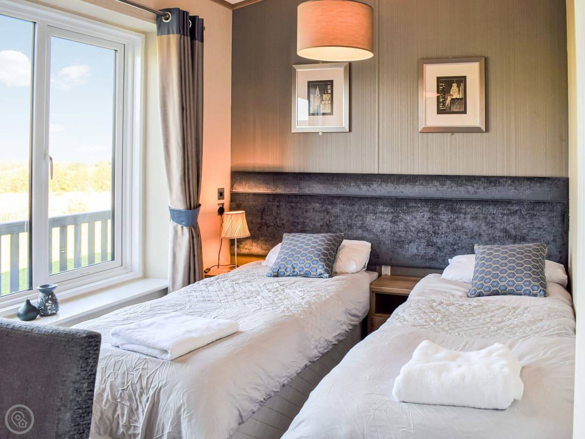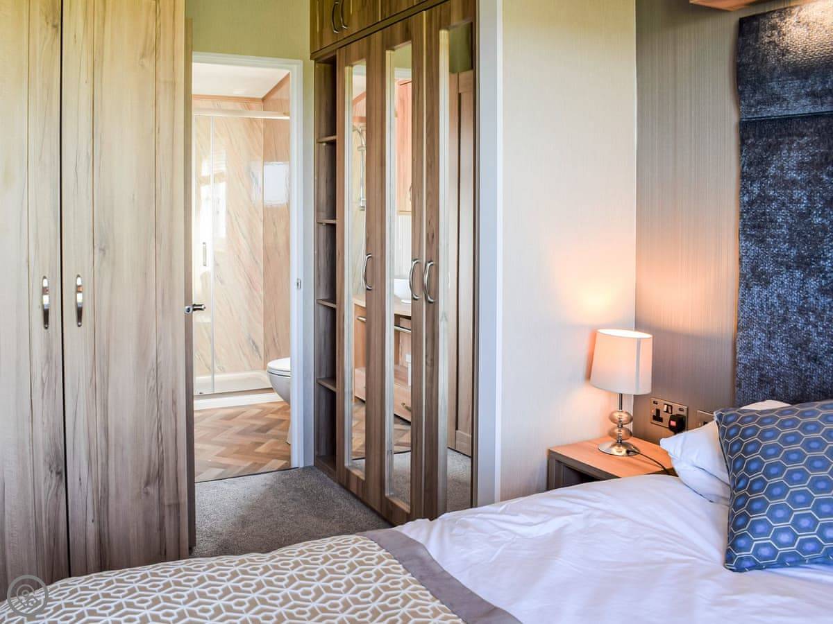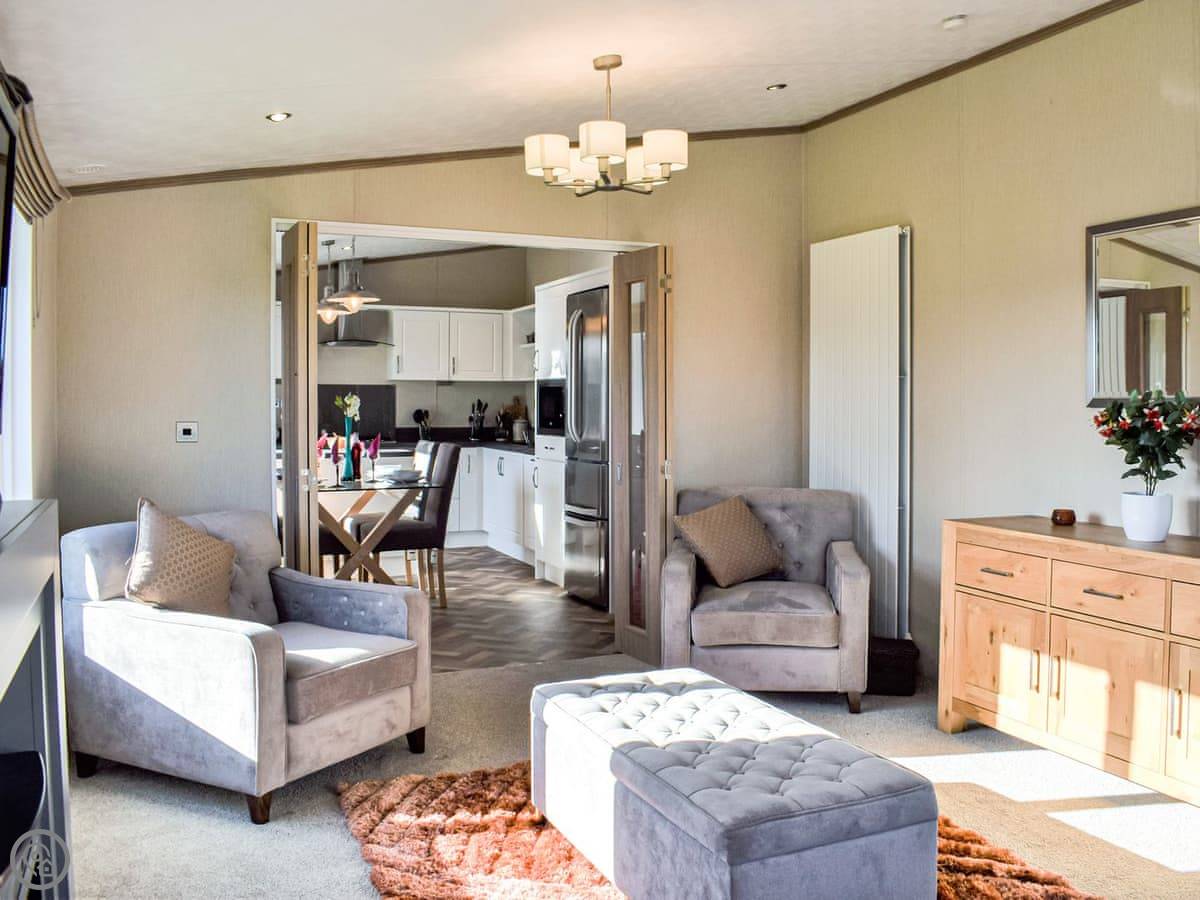 This spacious lodge can be found towards the rear of a small and peaceful park. Boosting of uninterrupted views and spacious surrounds. Ideal for a short break at any time of year. The Retreat can sleep up to six guests, with its very comfortable master bedroom, with dressing area and ensuite, the twin room, followed by the relaxing snug room with a sofa bed . There is a fully equipped, modern kitchen with family dining area. The open plan living room is bright and spacious and leads out to the decking area with garden furniture for enjoying the peace and quiet. This luxury lodge has been built throughout to a high-quality standard and decorated with plush furnishings and finishes. The lodge has a ramp access - ideal for prams and those with mobility needs.