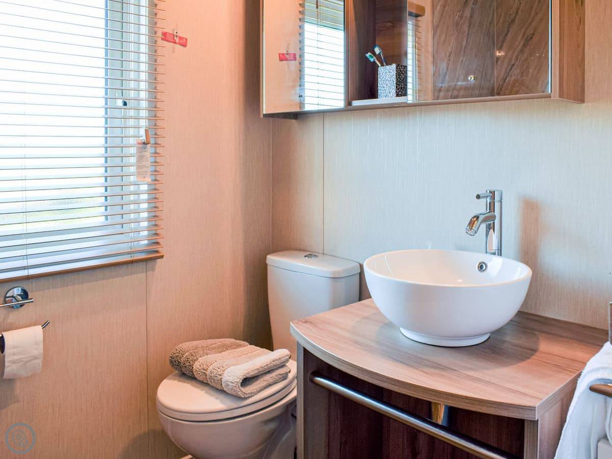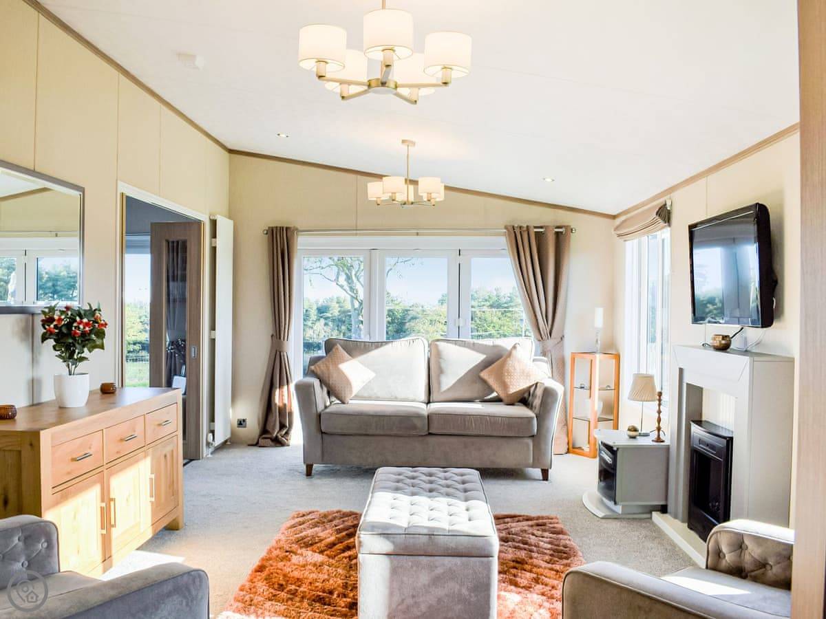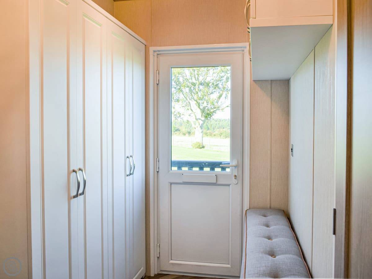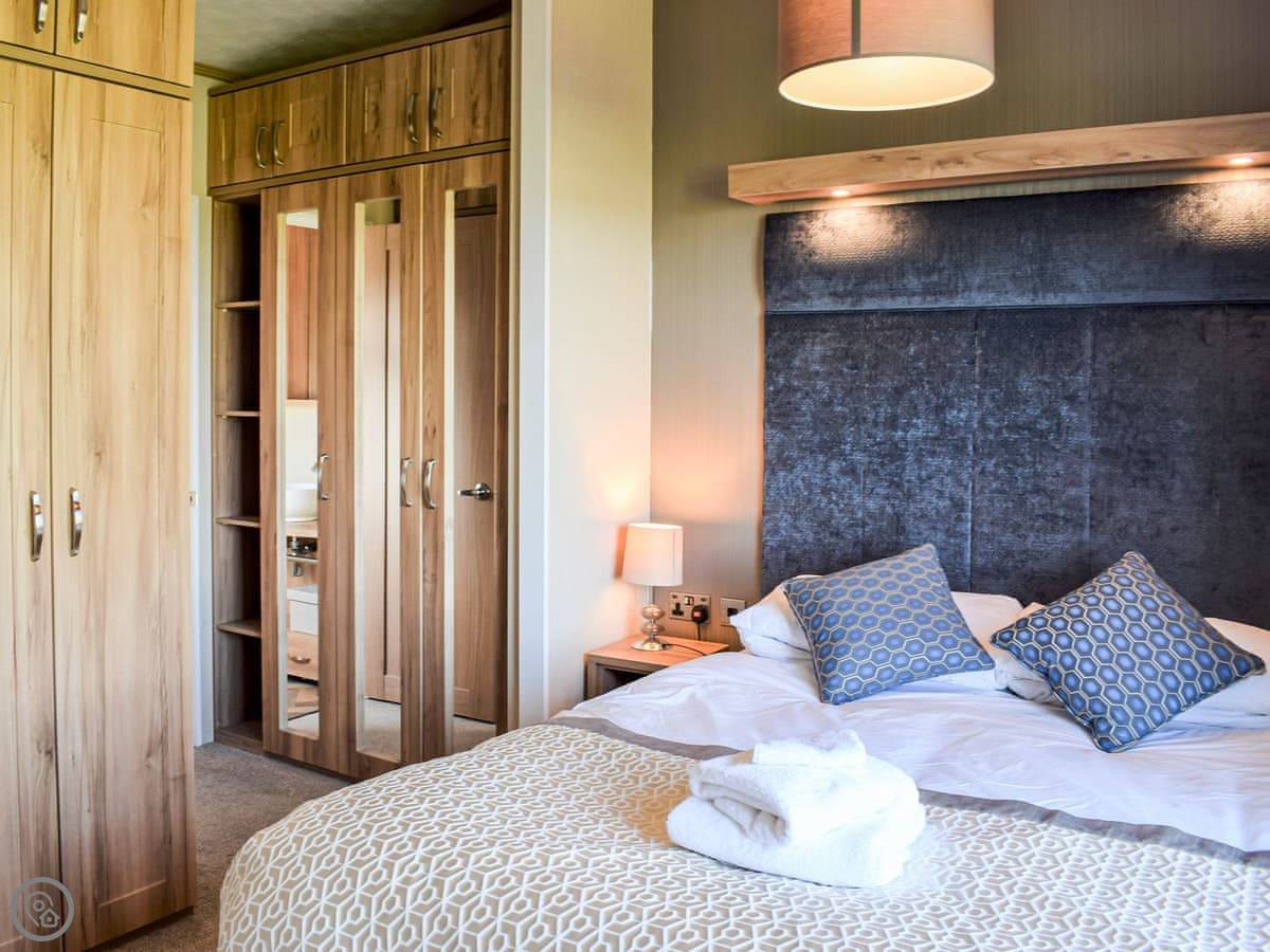 This spacious lodge can be found towards the rear of a small and peaceful park. Boosting of uninterrupted views and spacious surrounds. Ideal for a short break at any time of year. The Retreat can sleep up to six guests, with its very comfortable master bedroom, with dressing area and ensuite, the twin room, followed by the relaxing snug room with a sofa bed . There is a fully equipped, modern kitchen with family dining area. The open plan living room is bright and spacious and leads out to the decking area with garden furniture for enjoying the peace and quiet. This luxury lodge has been built throughout to a high-quality standard and decorated with plush furnishings and finishes. The lodge has a ramp access - ideal for prams and those with mobility needs.