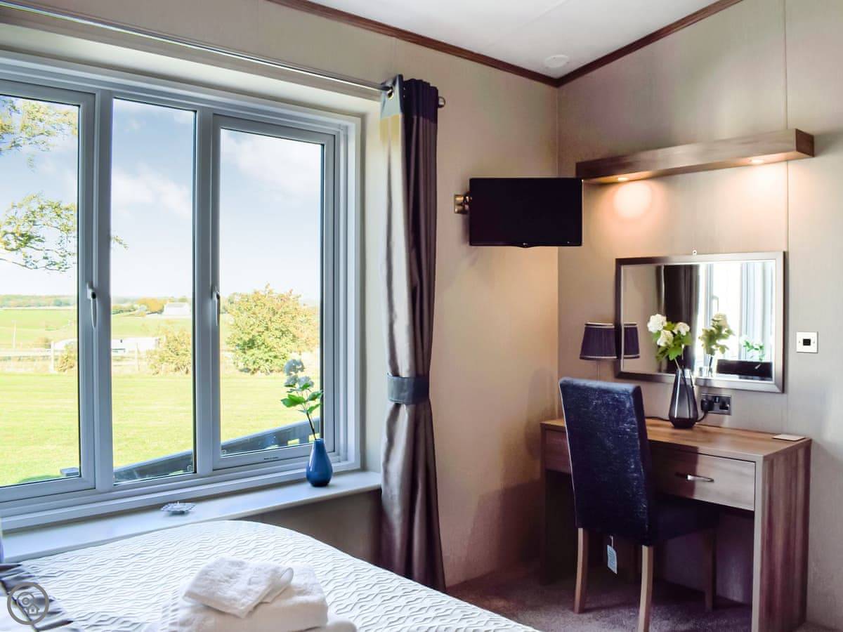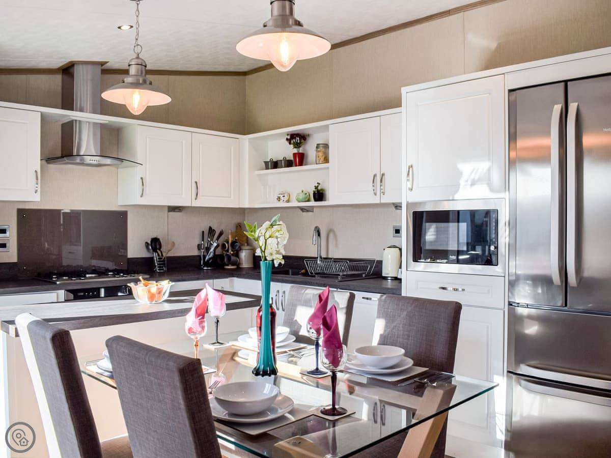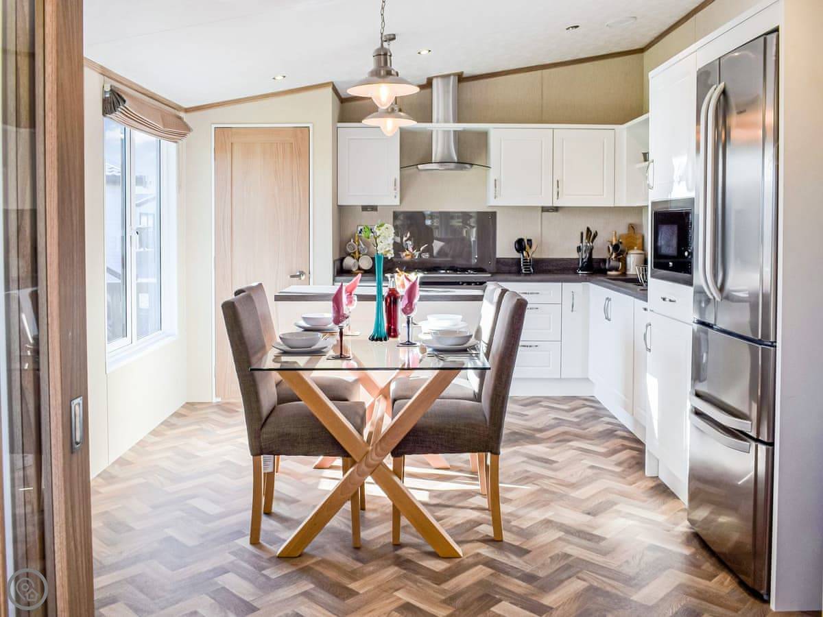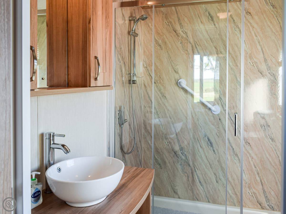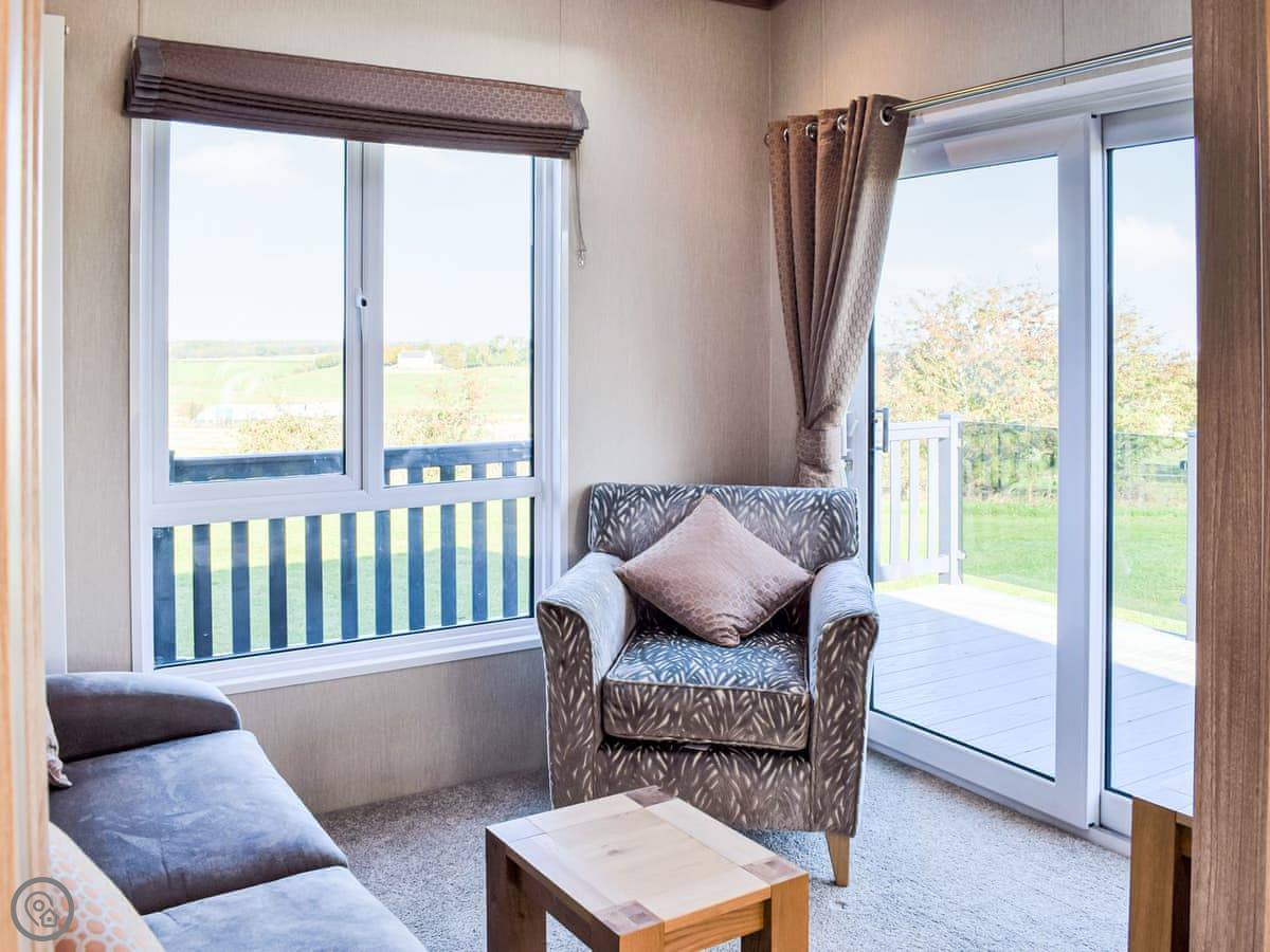 This spacious lodge can be found towards the rear of a small and peaceful park. Boosting of uninterrupted views and spacious surrounds. Ideal for a short break at any time of year. The Retreat can sleep up to six guests, with its very comfortable master bedroom, with dressing area and ensuite, the twin room, followed by the relaxing snug room with a sofa bed . There is a fully equipped, modern kitchen with family dining area. The open plan living room is bright and spacious and leads out to the decking area with garden furniture for enjoying the peace and quiet. This luxury lodge has been built throughout to a high-quality standard and decorated with plush furnishings and finishes. The lodge has a ramp access - ideal for prams and those with mobility needs.