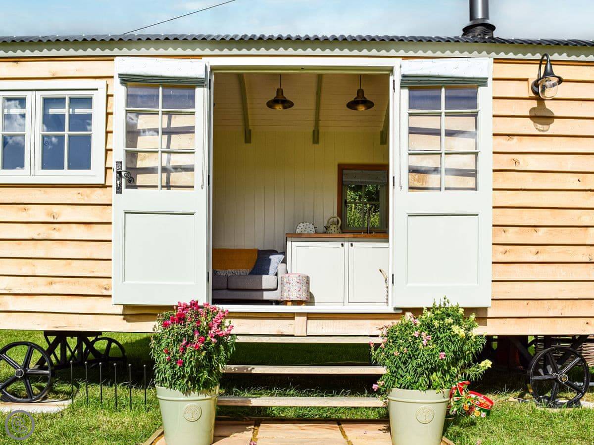 'Grace' is a shepherd's hut on our farm in Braunston. It's for two people. You'll see it on the lower part of the field, looking out over the Grand Union Canal.