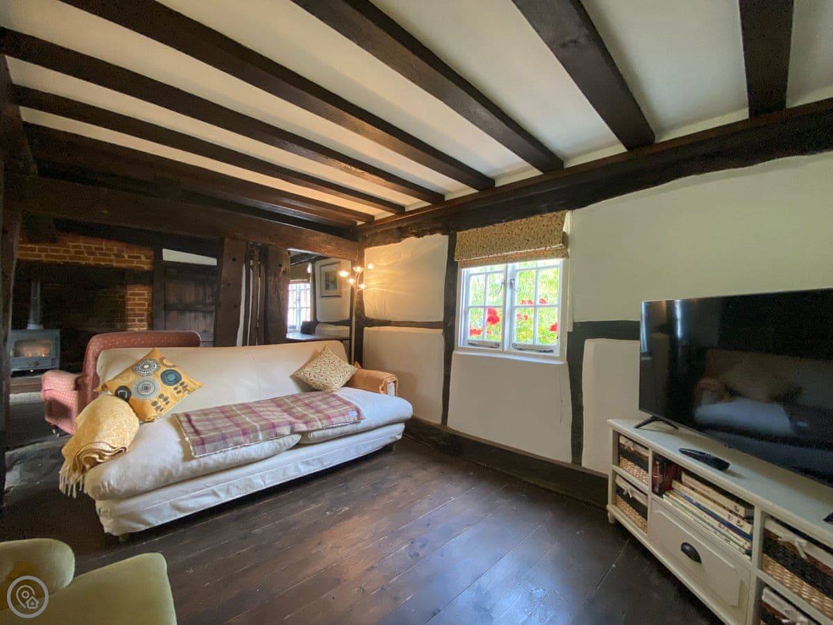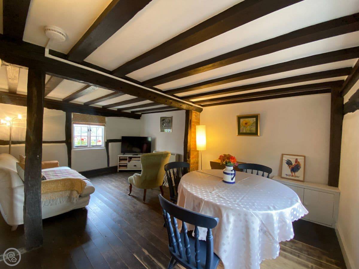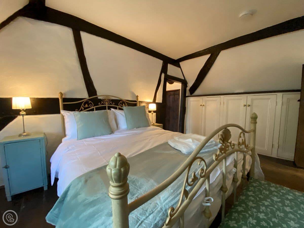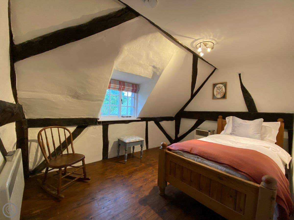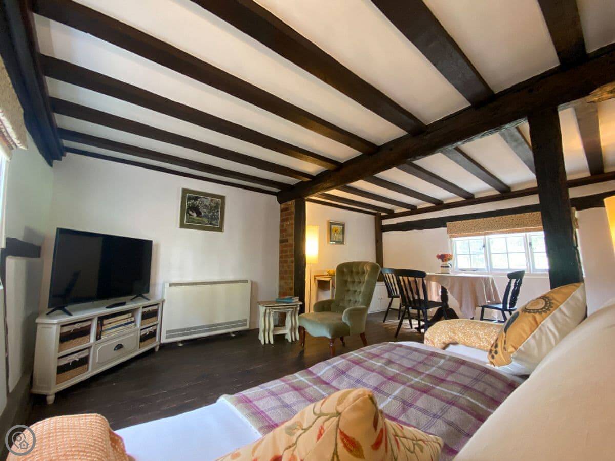 On the ground floor you will find a large living/dining room complete with Smart TV and wood burner. The kitchen is fully equipped and has an electric Aga, you can also make use of the Nespresso coffee maker. There is a winding staircase to the first floor with height restrictions at the bottom and steep steps leading to a master bedroom and second bedroom with a single bed. The master bedroom has a sloping floor.