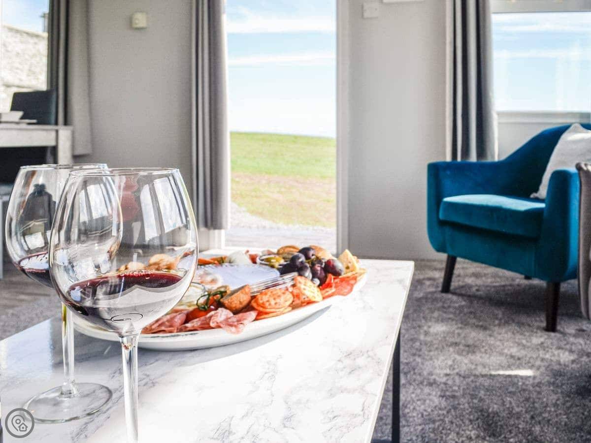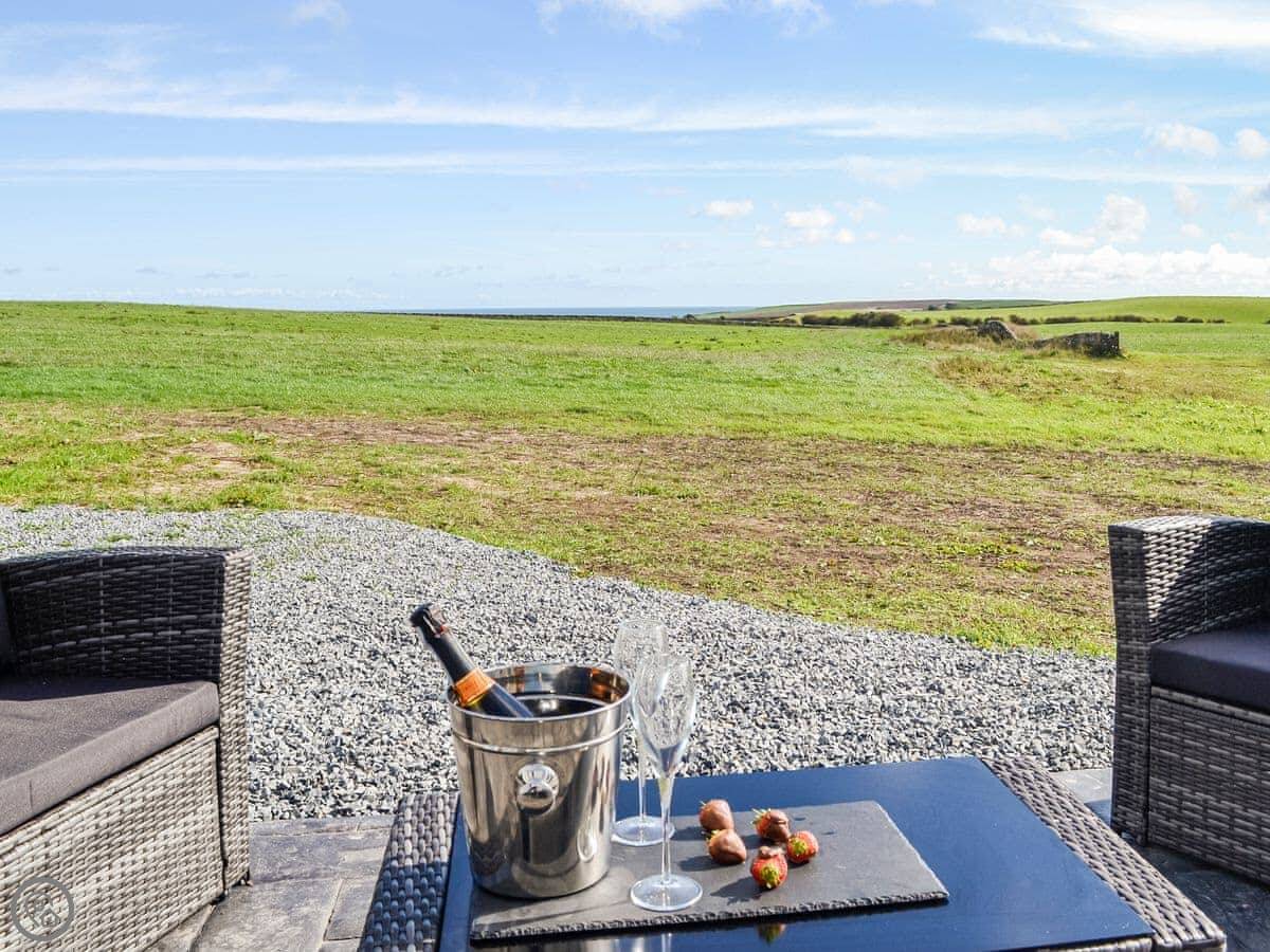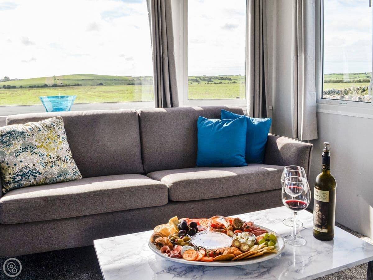 You're on a working farm, so you'll see sheep and maybe some machinery going past. The patio outside has a wood-fired hot tub. It's good at night when the skies are clear.