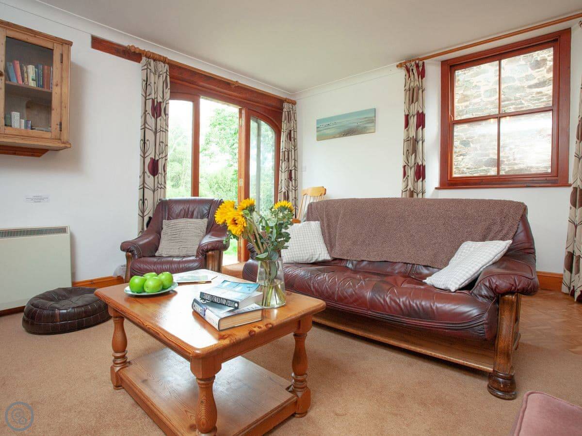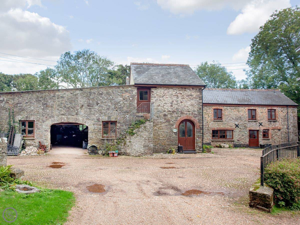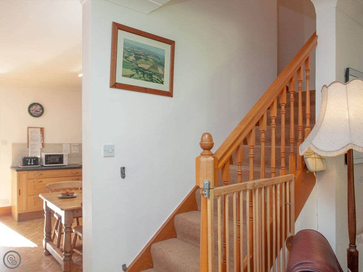 The Coach House is in South Allington. It's a converted barn, so it's got a big, open feel downstairs. There are two bedrooms and two bathrooms upstairs, and it sleeps seven. It's got a 3 Star rating, which means it's comfortable and clean, not luxurious.