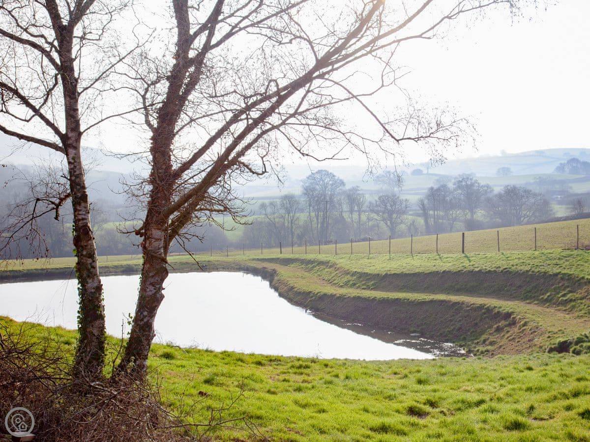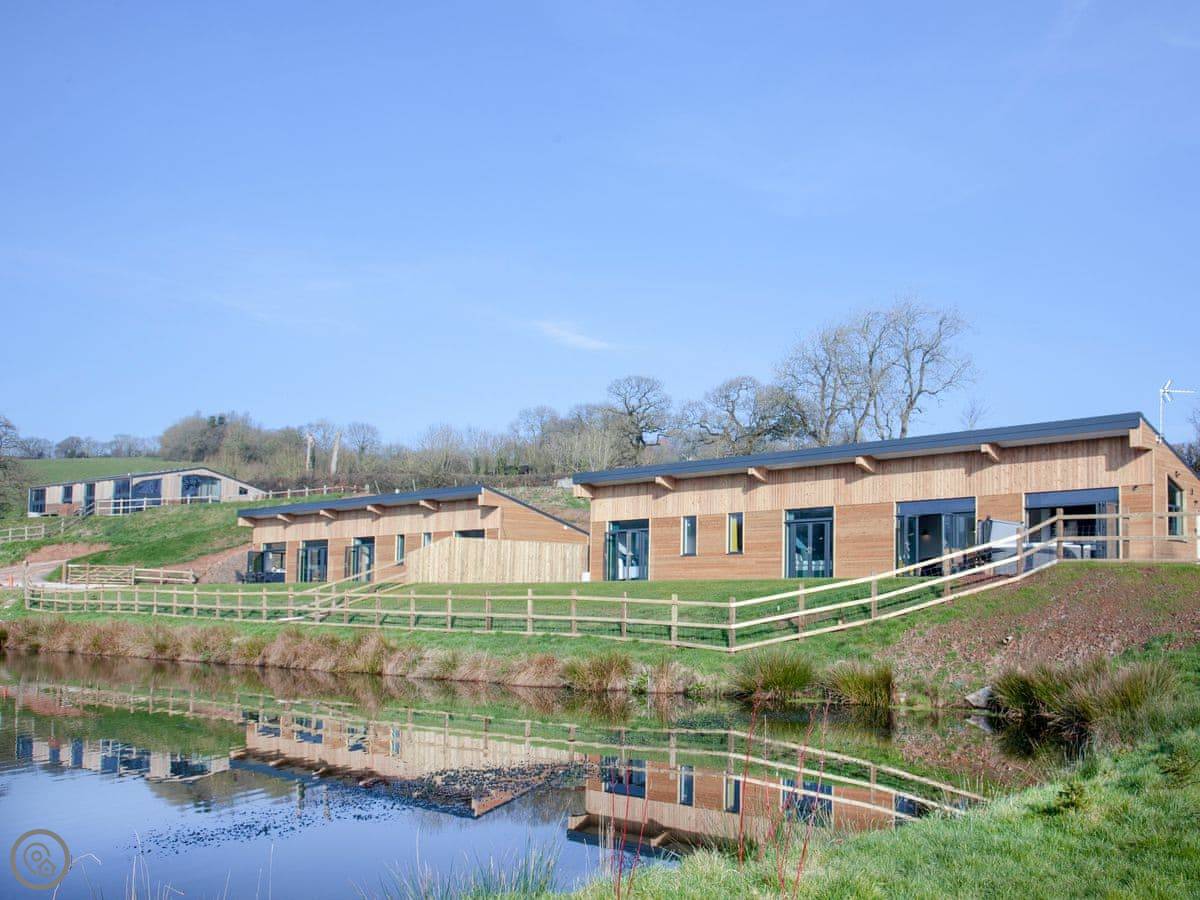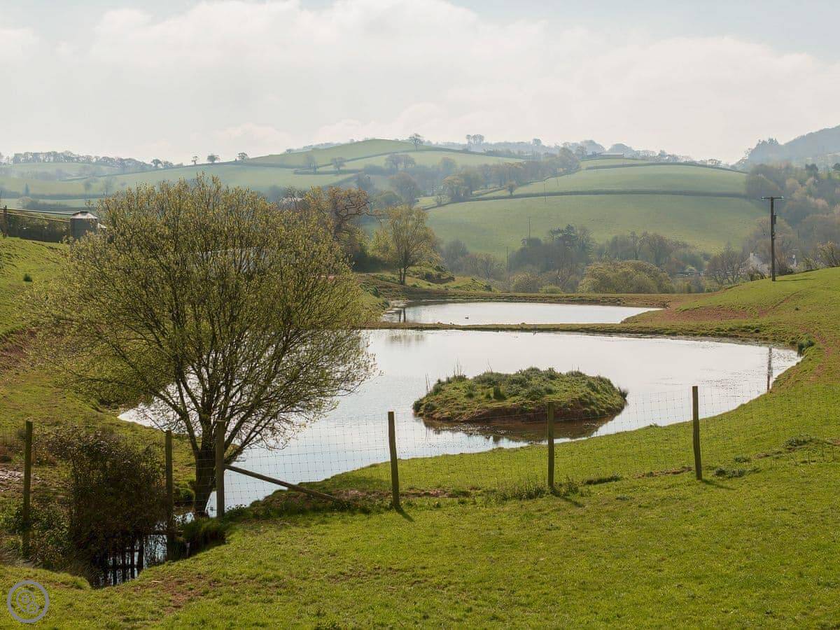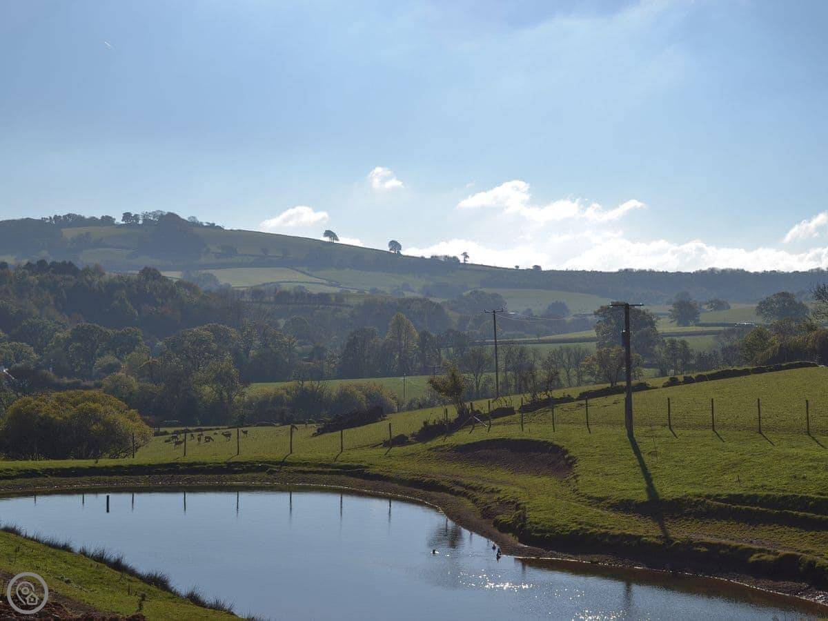 This is Kingfisher Lodge, out at East Dunster Deer Farm near Cadeleigh. It's detached, so you're on your own. It looks over a couple of ponds and the deer fields. The view is just fields and hills, really peaceful.