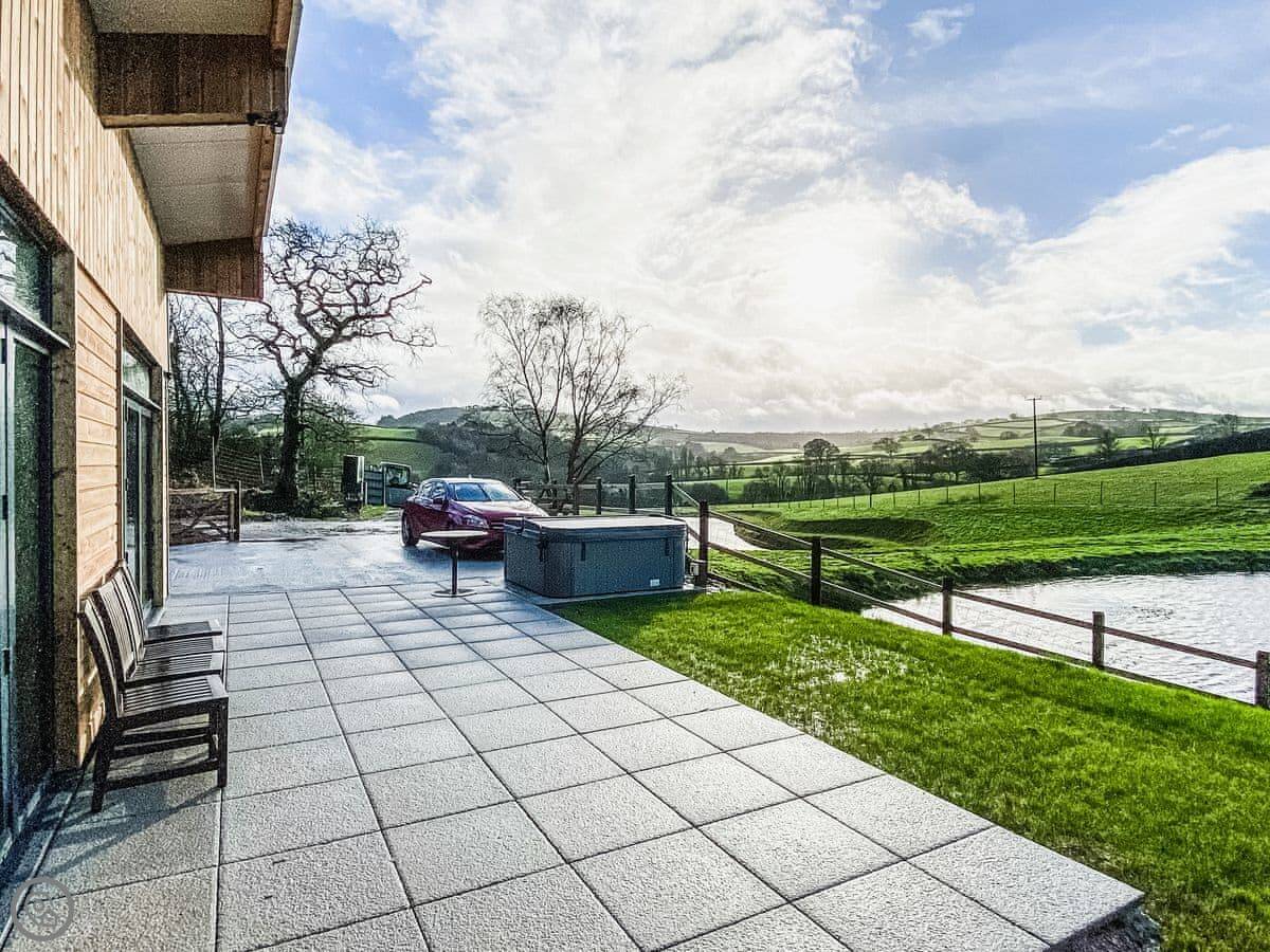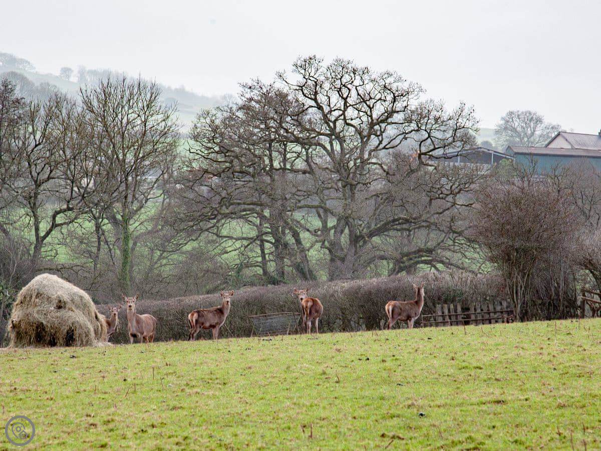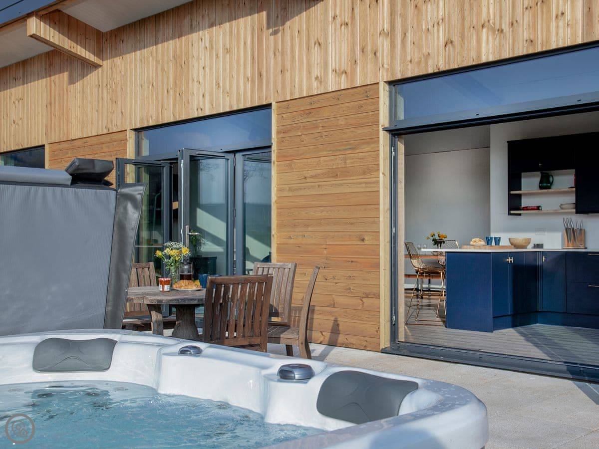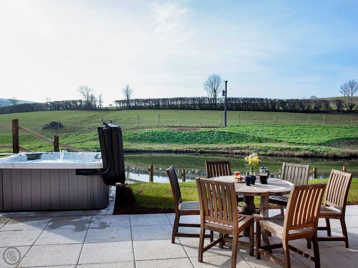 There's a private hot tub on the patio. The garden is fenced, but the ponds aren't, so just be aware if you've got small kids or dogs. You'll see the red deer from the farm, sometimes right up close. Otters in the ponds if you're lucky.