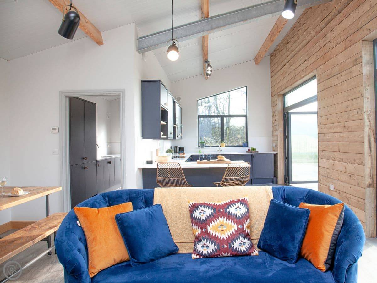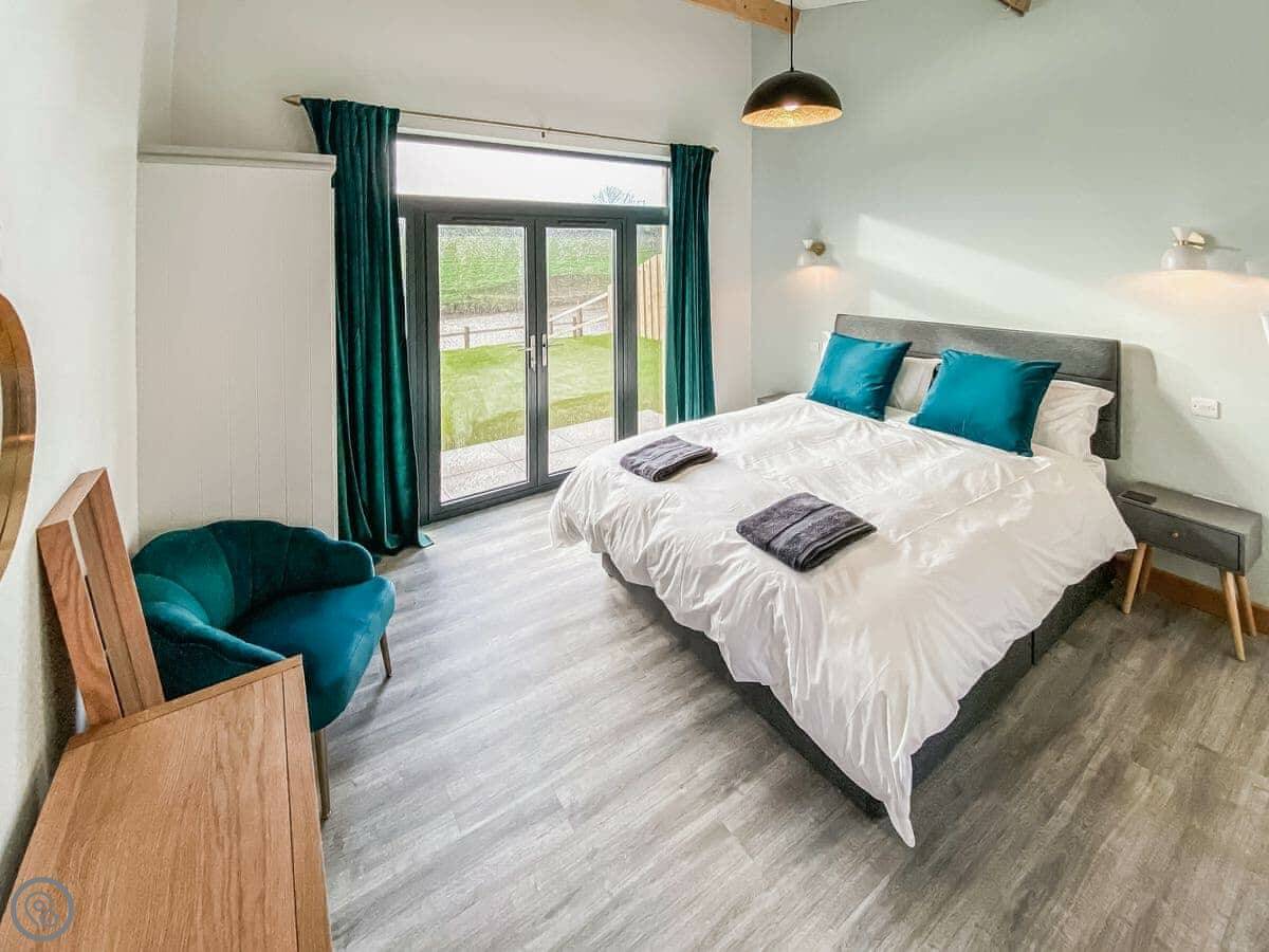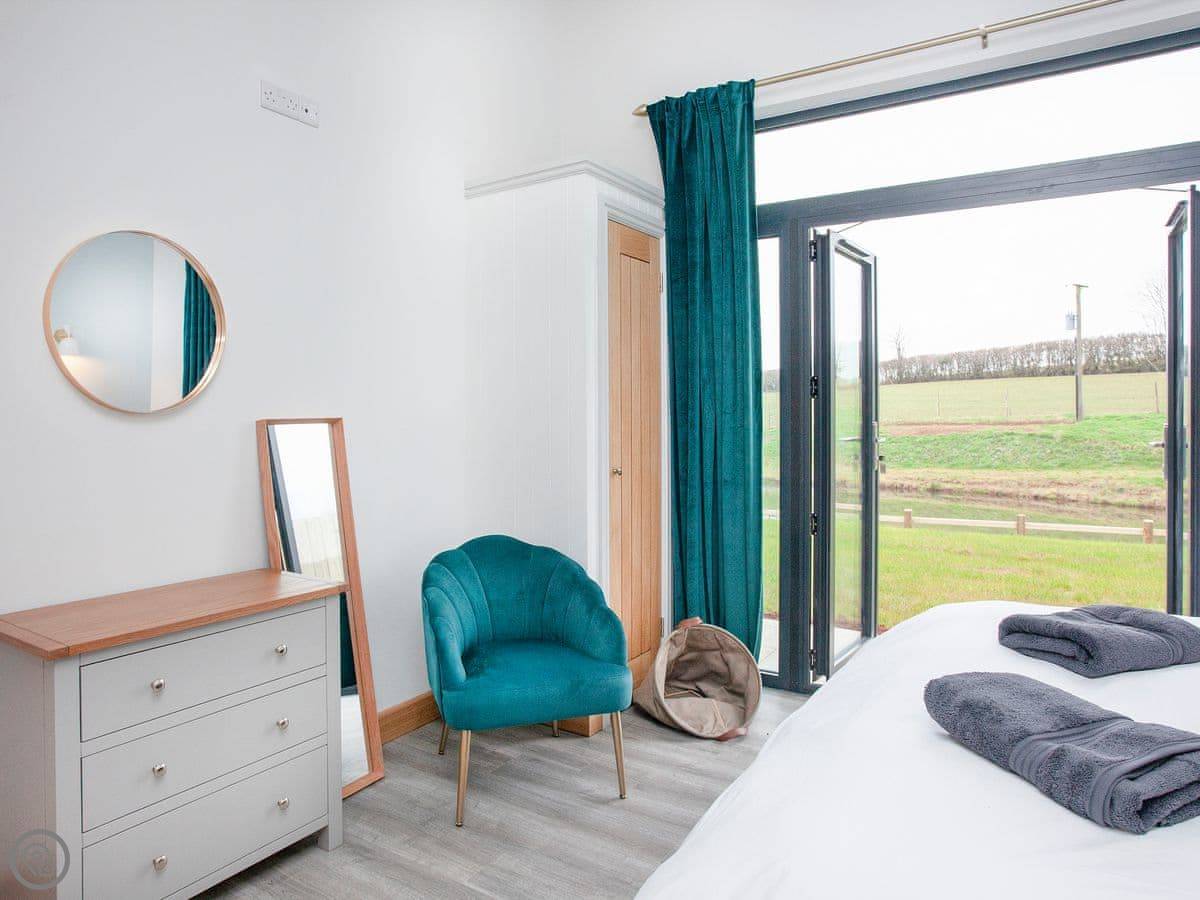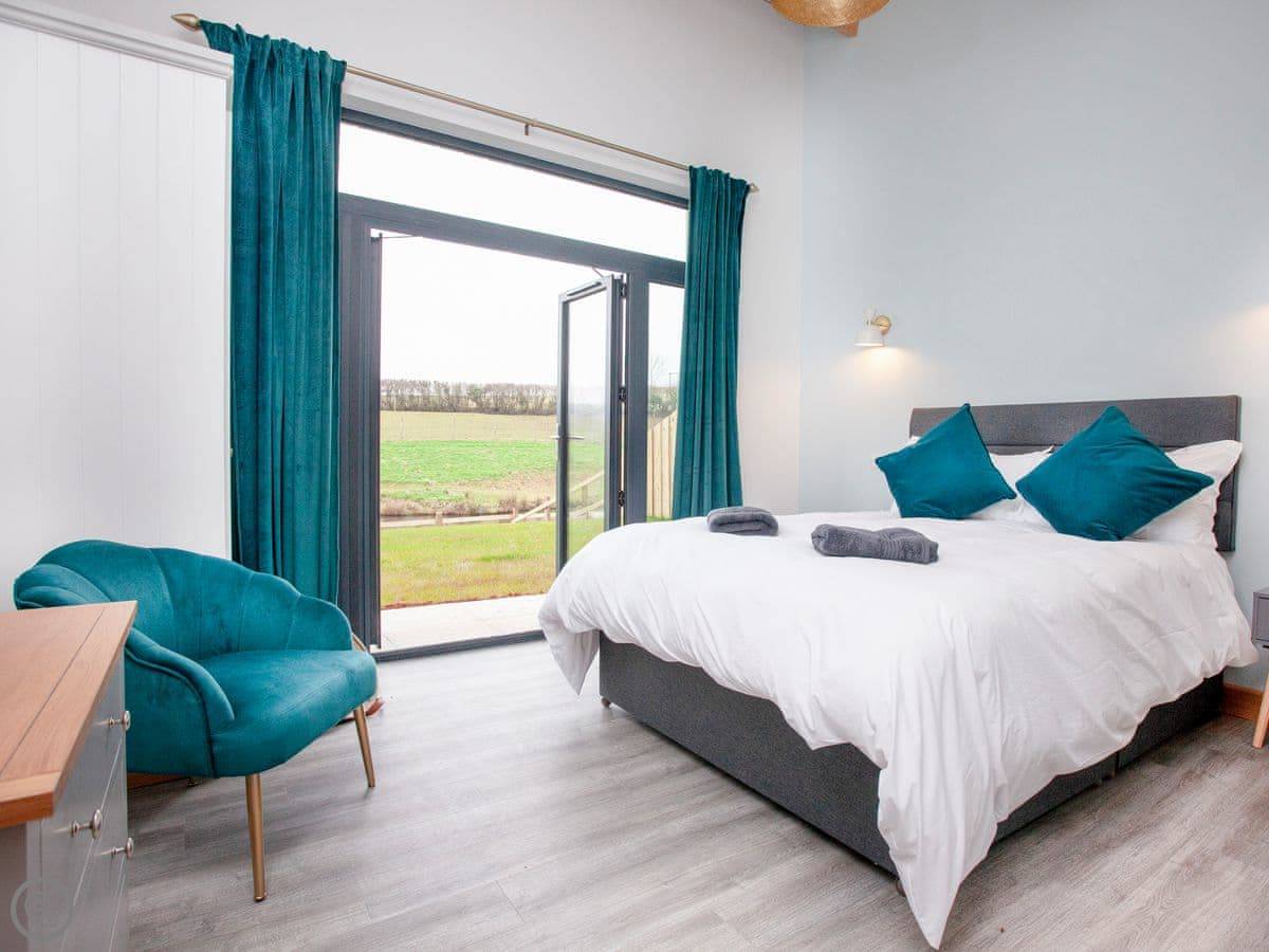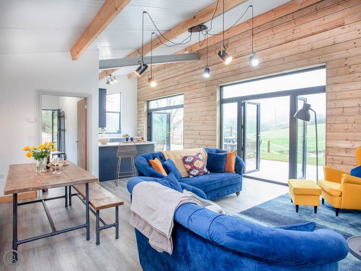 It sleeps six. Three bedrooms, two bathrooms. It's got a 5 Star rating, which means it's finished to a high standard. Underfloor heating, big bi-fold doors that open the living area right up.