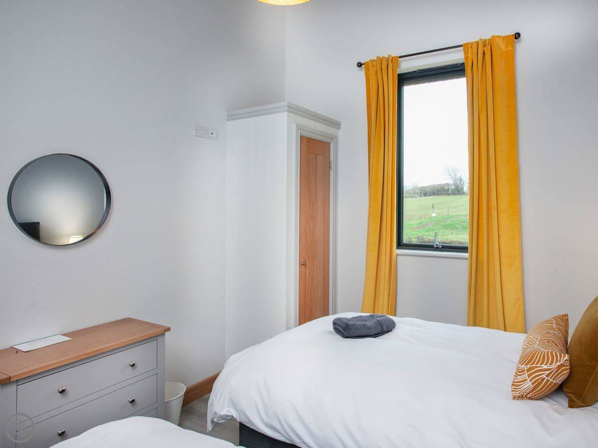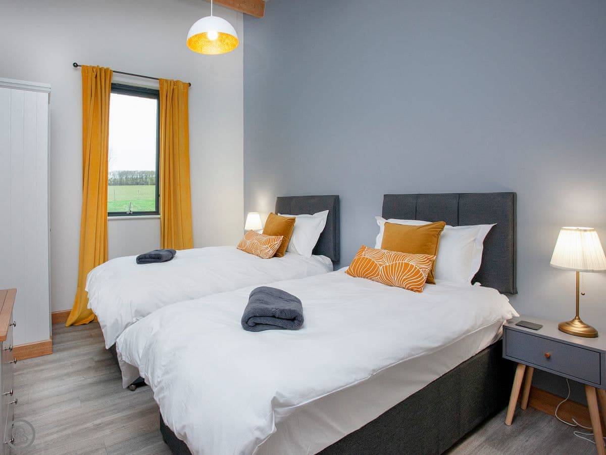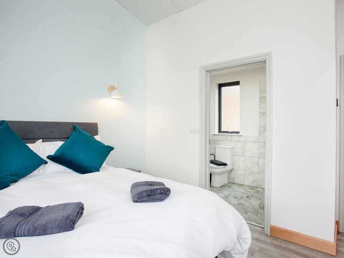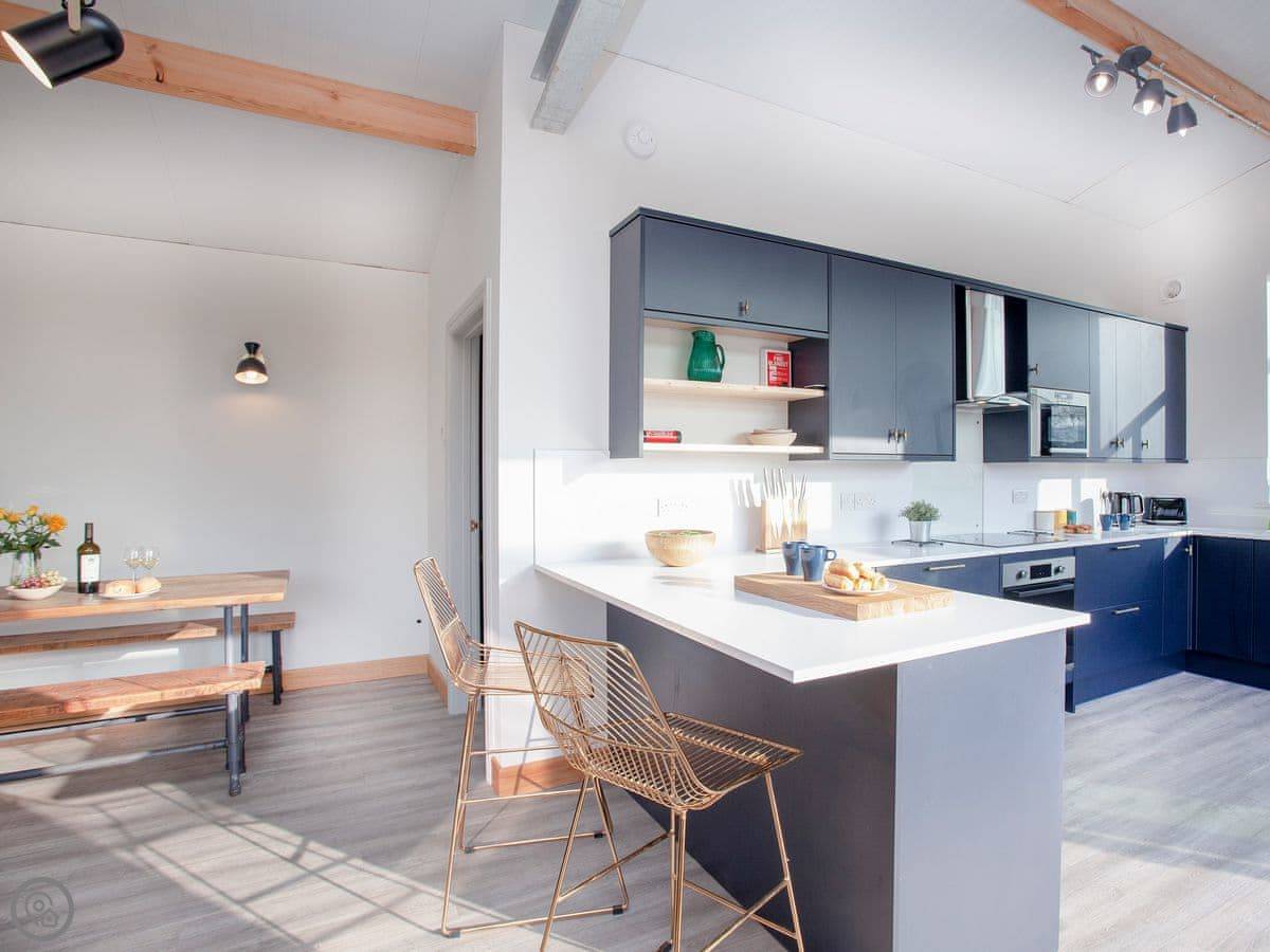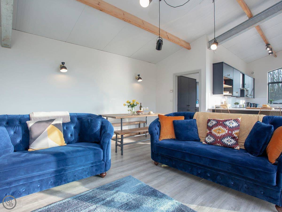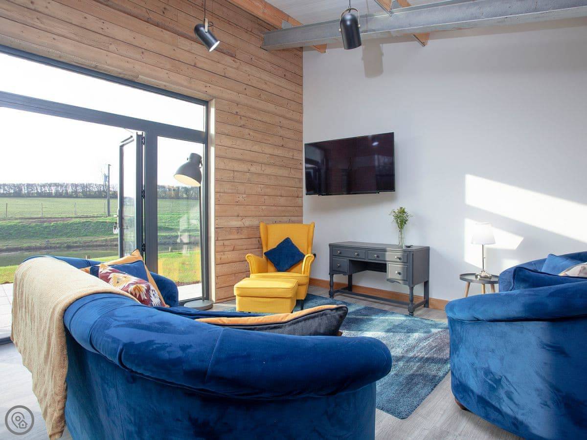 It sleeps six. Three bedrooms, two bathrooms. It's got a 5 Star rating, which means it's finished to a high standard. Underfloor heating, big bi-fold doors that open the living area right up.