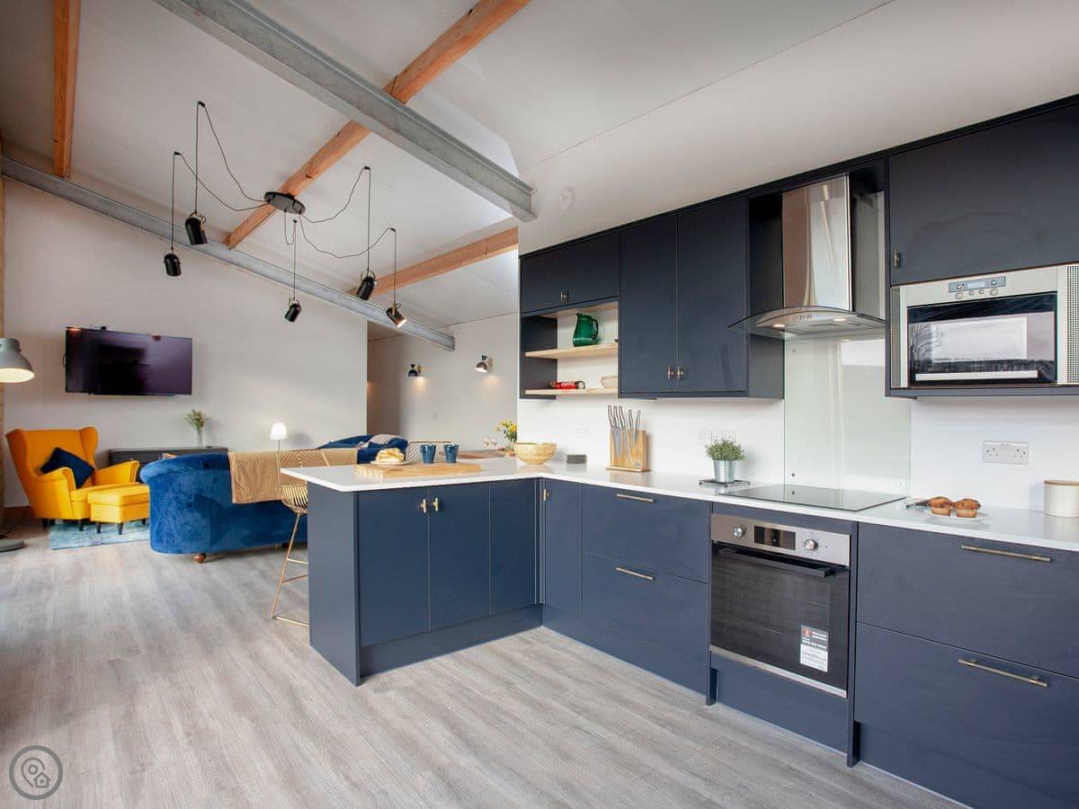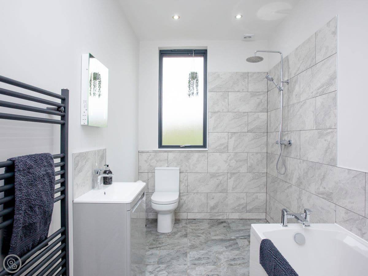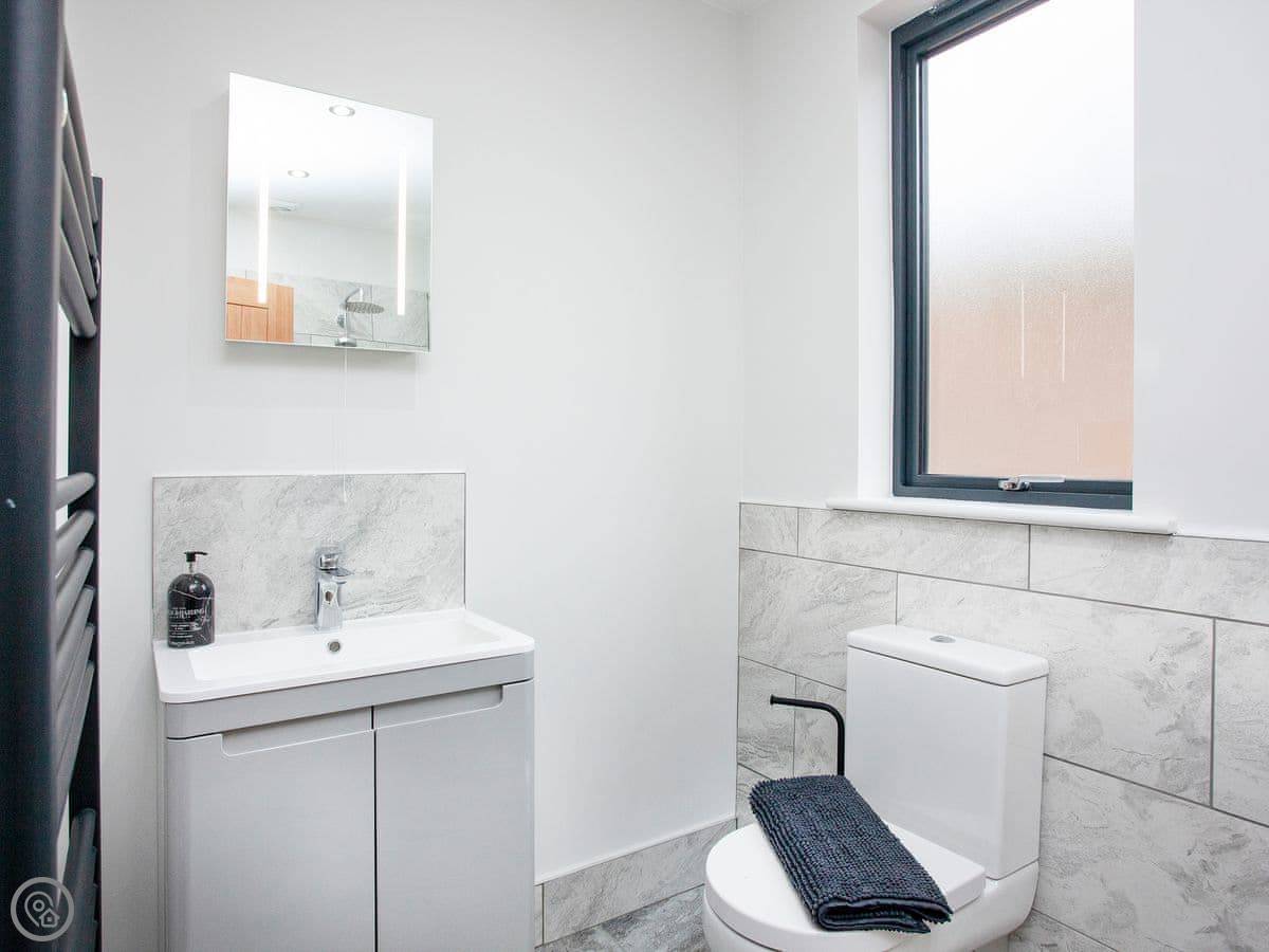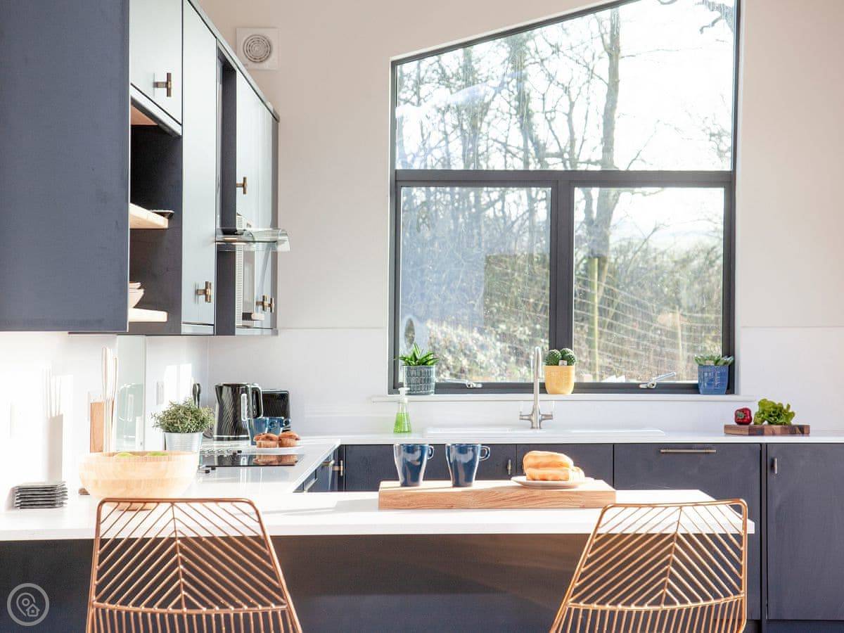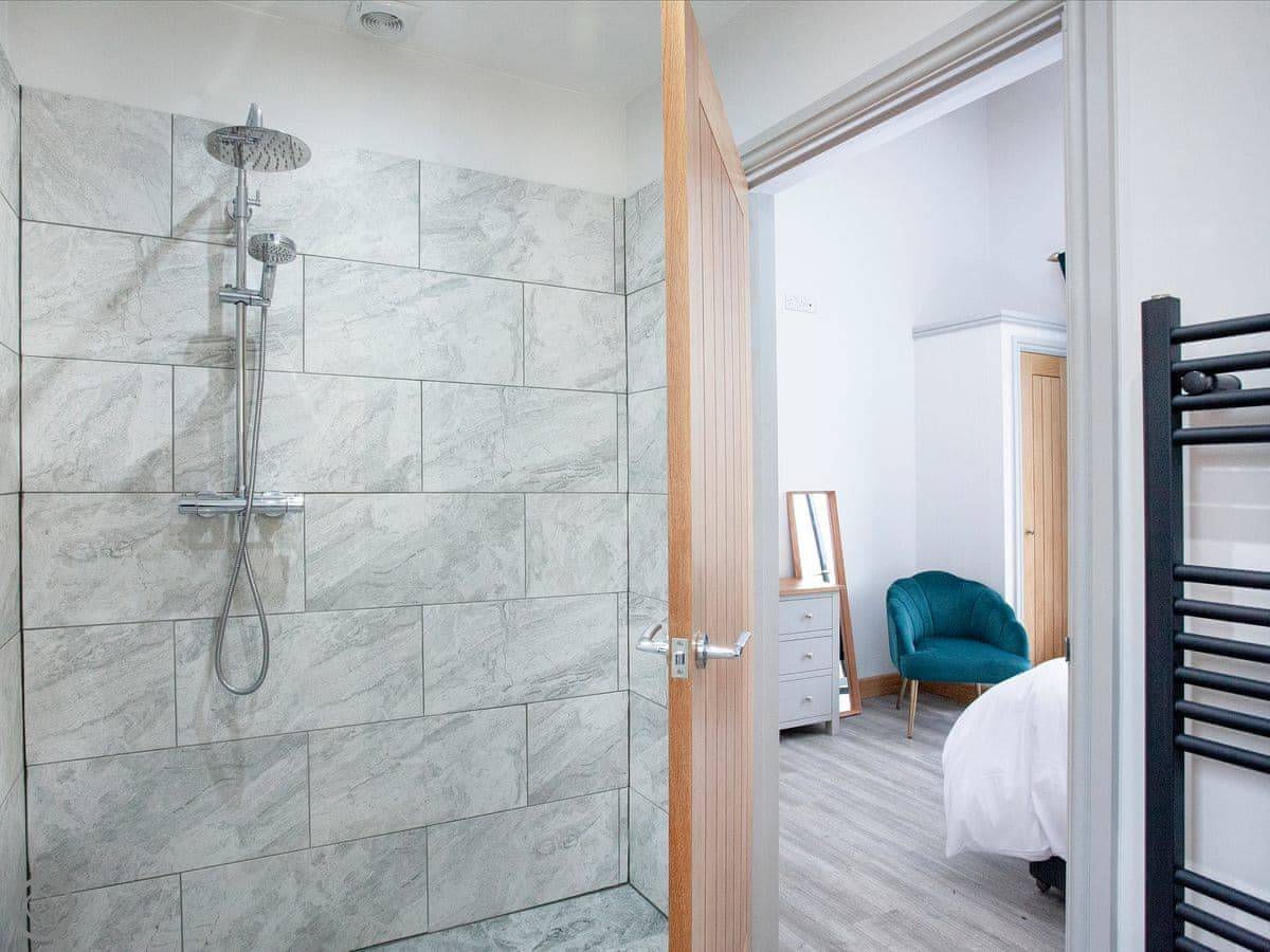 It sleeps six. Three bedrooms, two bathrooms. It's got a 5 Star rating, which means it's finished to a high standard. Underfloor heating, big bi-fold doors that open the living area right up.