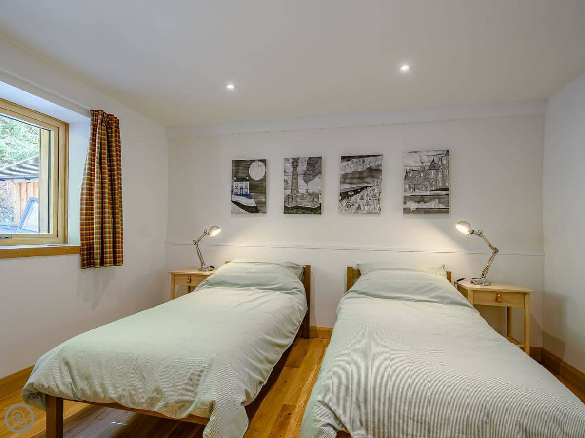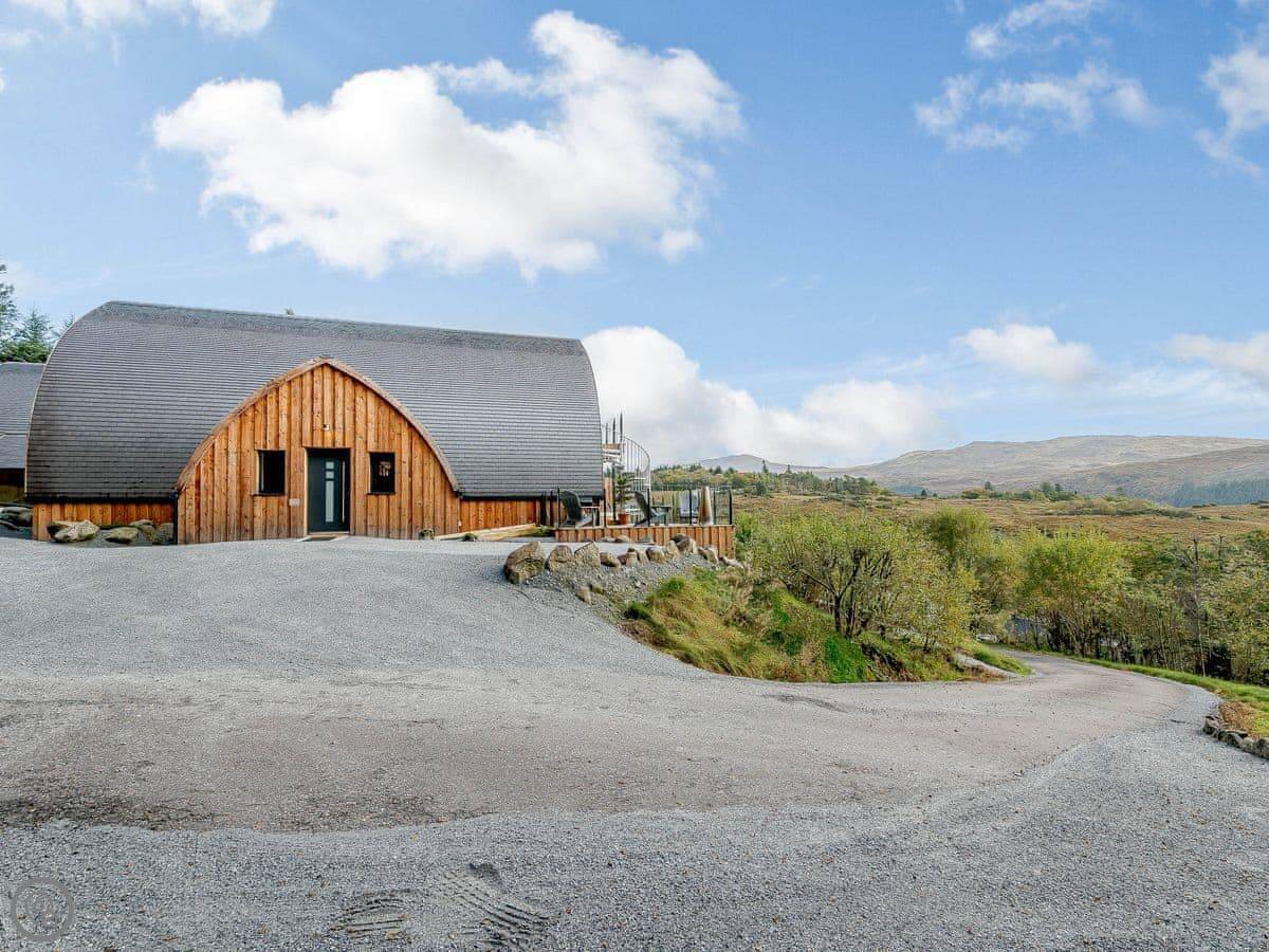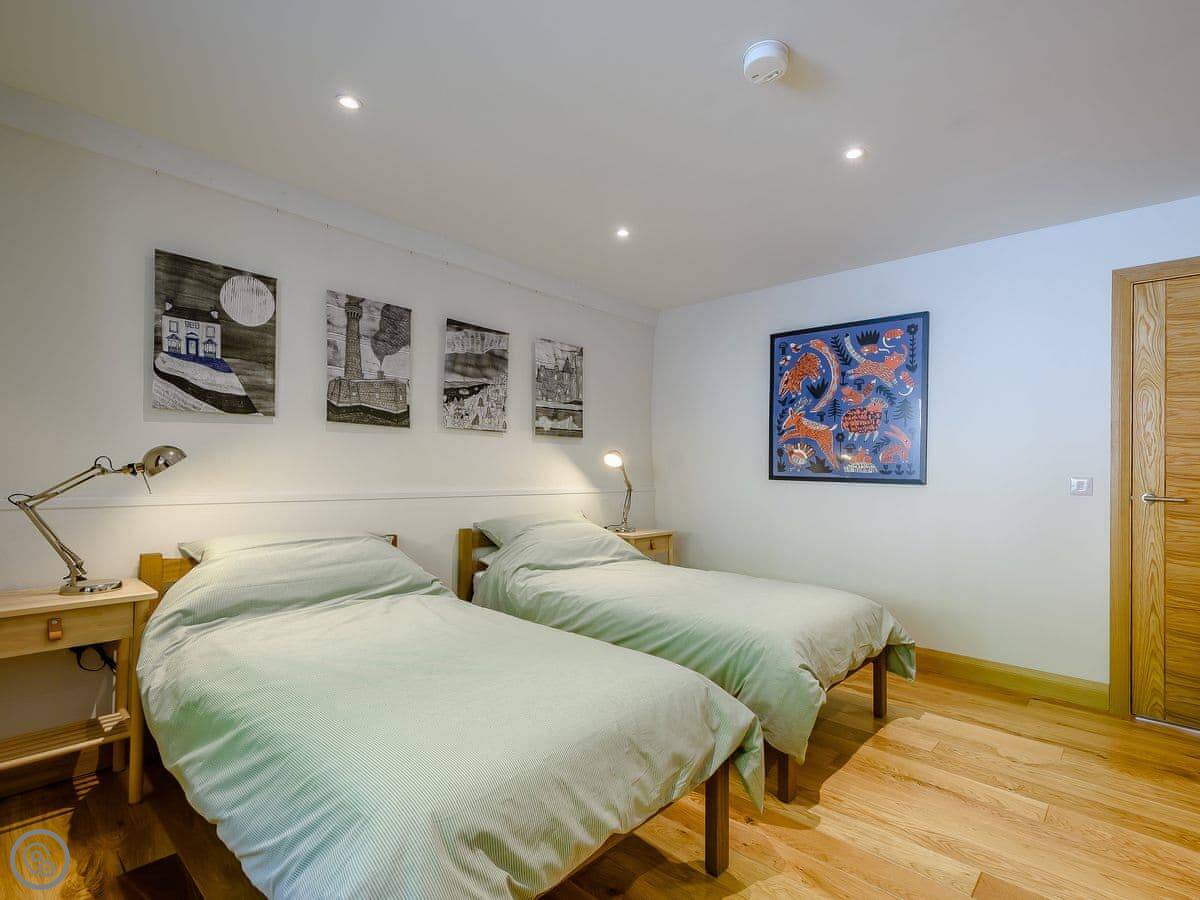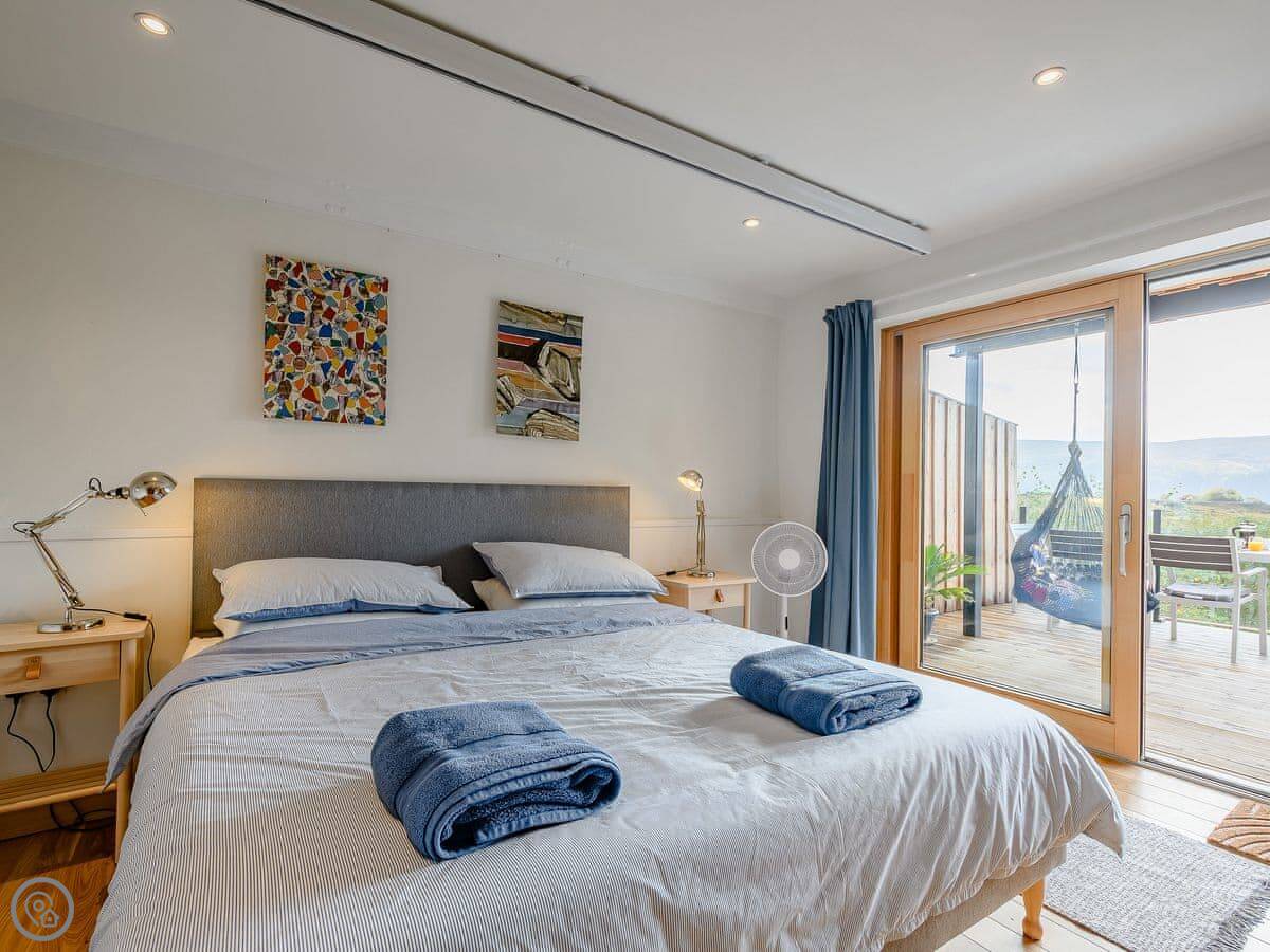It sleeps four. Two bedrooms, both en-suite. It's got a 5 Star rating. It was designed to be fully accessible, which is quite rare up here. There's a wheelchair lift between floors, wide doorways, and a hoist in the main bedroom. The kitchen worktops are lower. If you don't need that stuff, it's just a very comfortable, well-designed house.