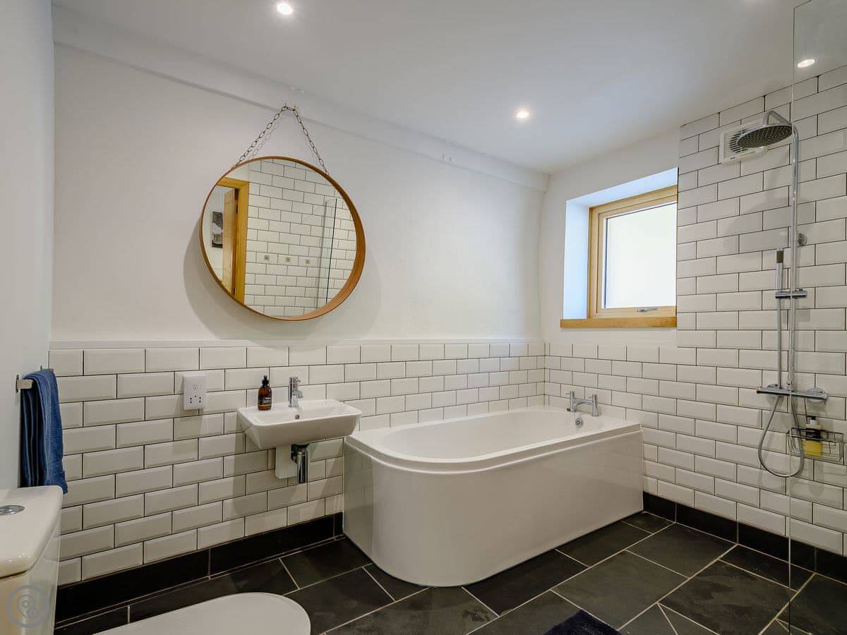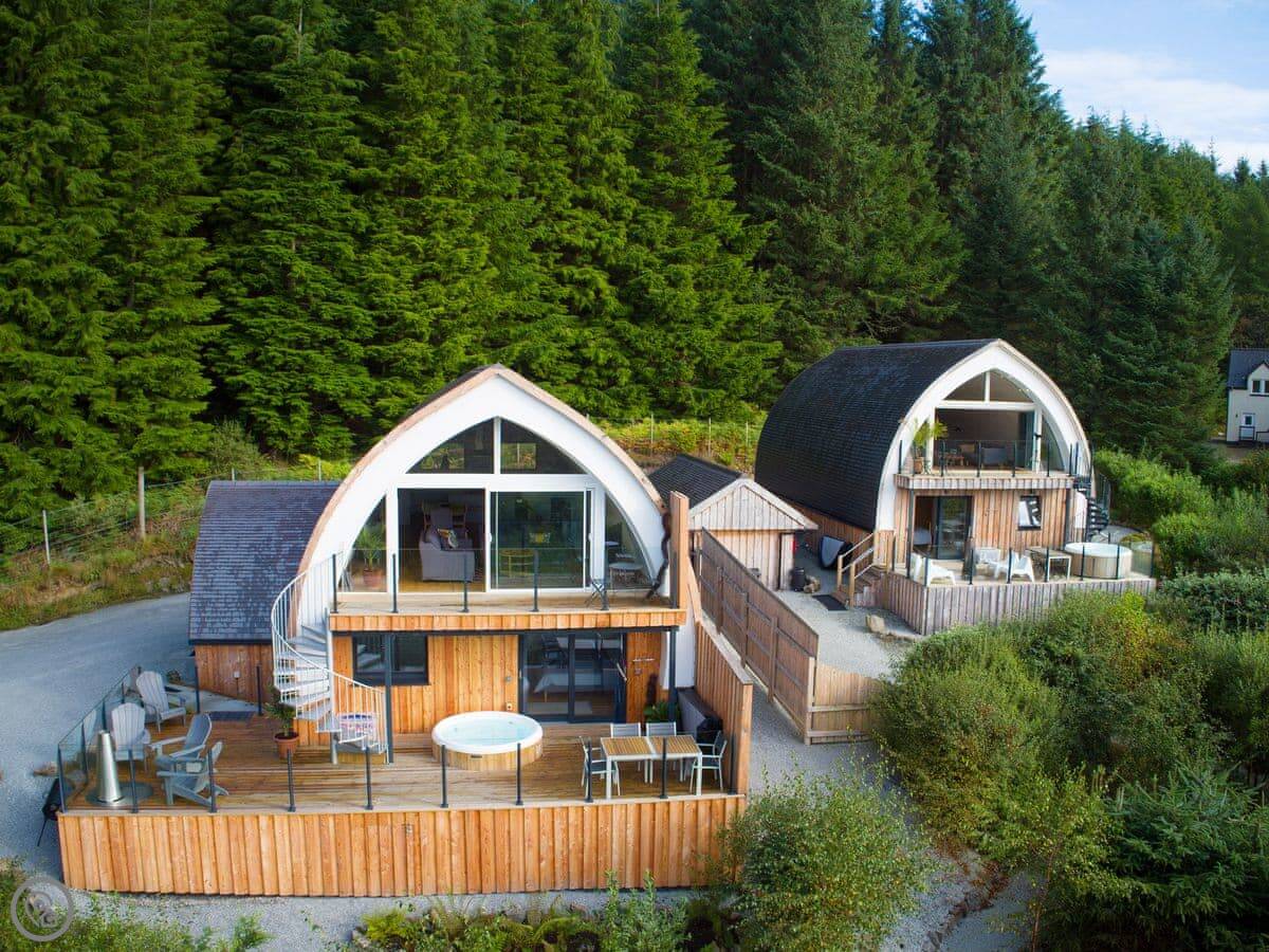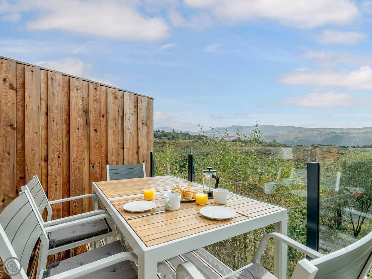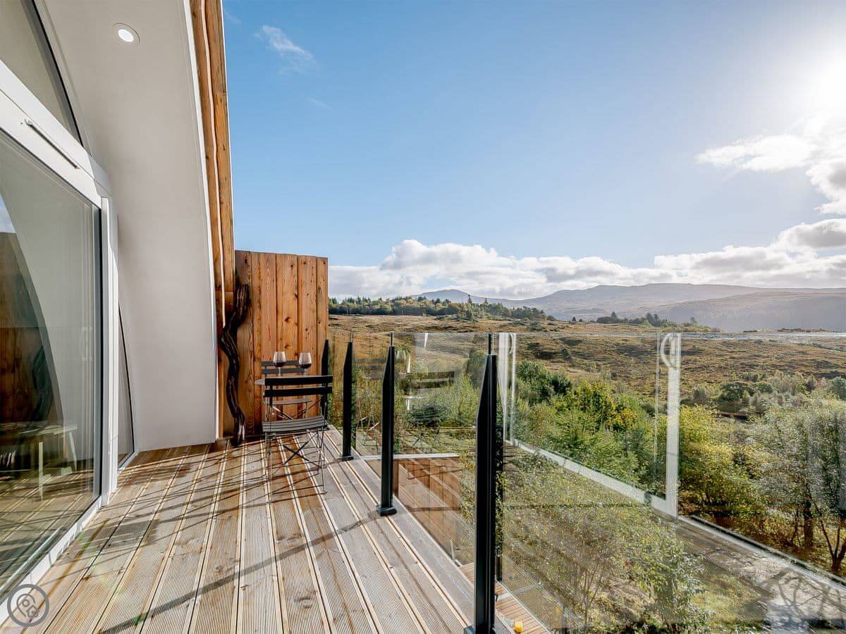 It sleeps four. Two bedrooms, both en-suite. It's got a 5 Star rating. It was designed to be fully accessible, which is quite rare up here. There's a wheelchair lift between floors, wide doorways, and a hoist in the main bedroom. The kitchen worktops are lower. If you don't need that stuff, it's just a very comfortable, well-designed house.