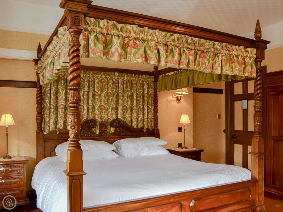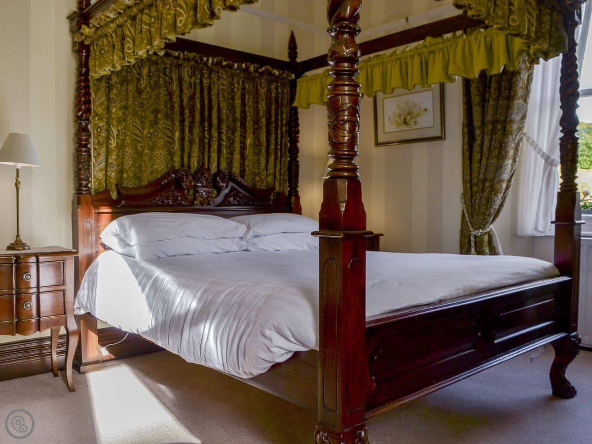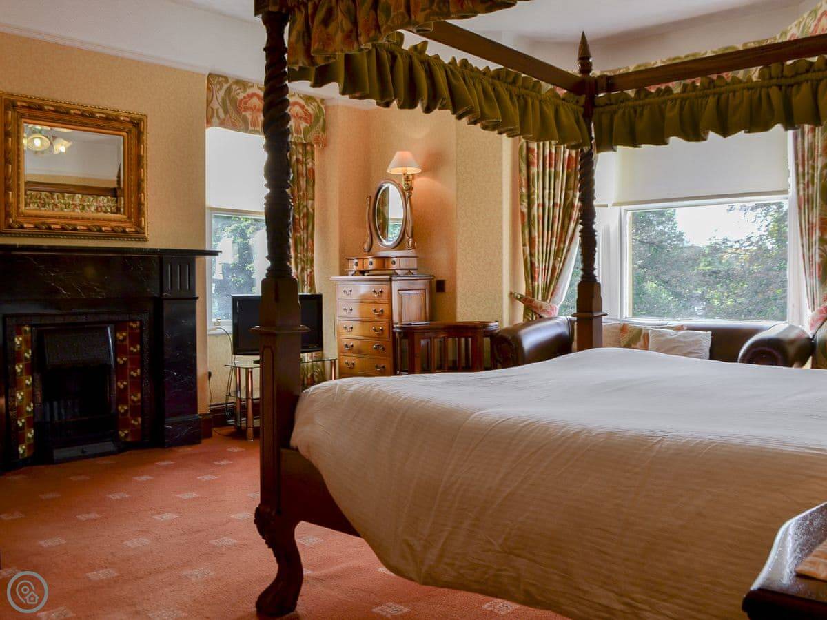It sleeps twelve, in six bedrooms. Every bedroom has its own bathroom, which is useful with that many people. There's a mix of double beds and four-posters. Five bedrooms are upstairs, one is on the ground floor.