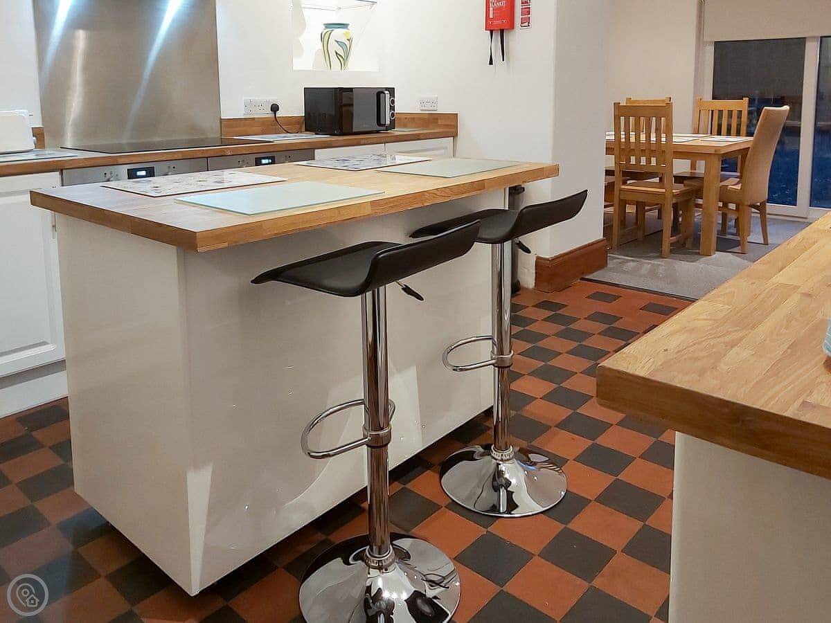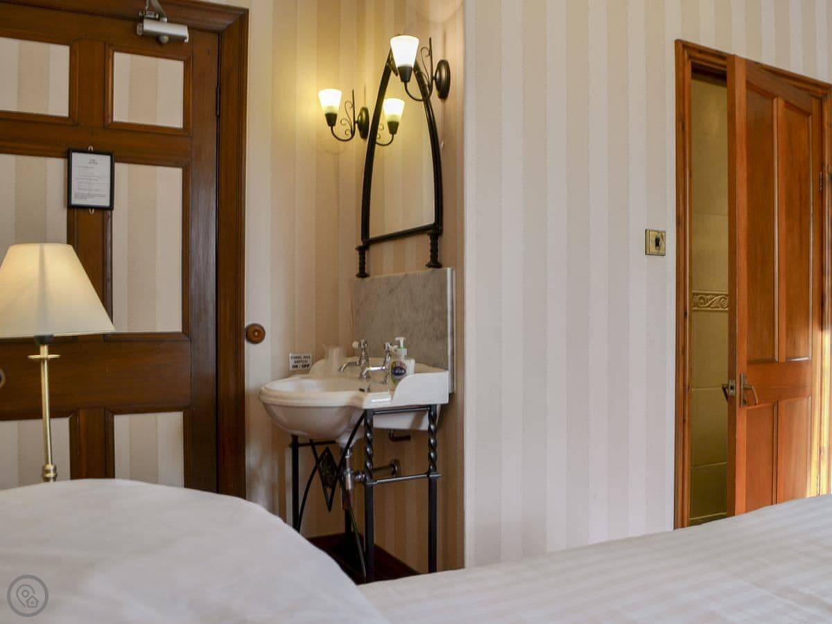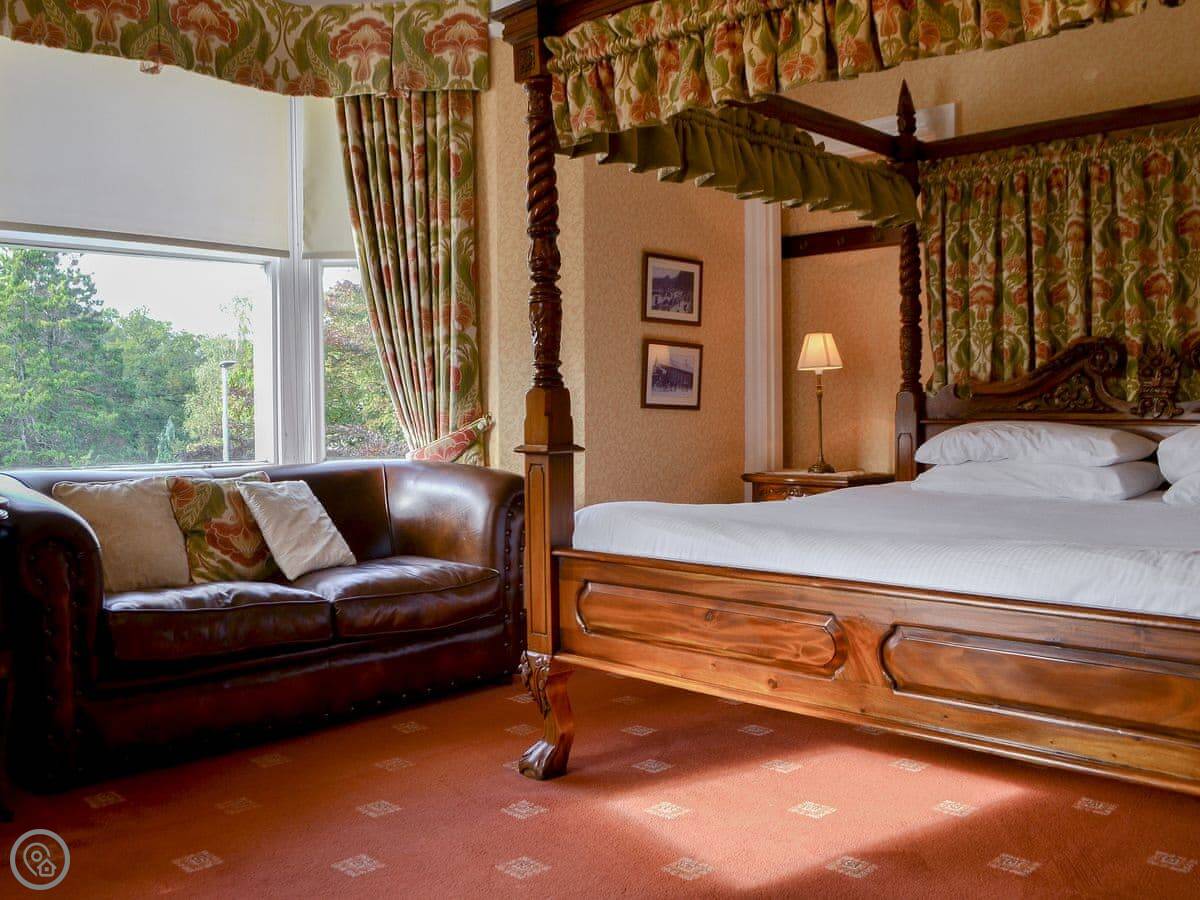 It sleeps twelve, in six bedrooms. Every bedroom has its own bathroom, which is useful with that many people. There's a mix of double beds and four-posters. Five bedrooms are upstairs, one is on the ground floor.