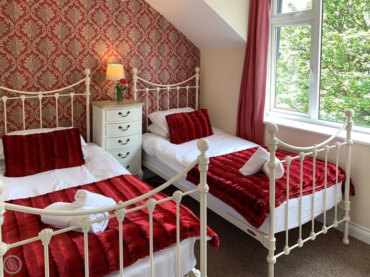 Ravines is in Scarborough, a few minutes walk from the North Bay beach. It's actually two big houses joined together. You can book them separately, but most people book them as one for large groups. It sleeps twenty-four, twelve in each house. That way you're all together but you've got your own kitchens and living rooms.