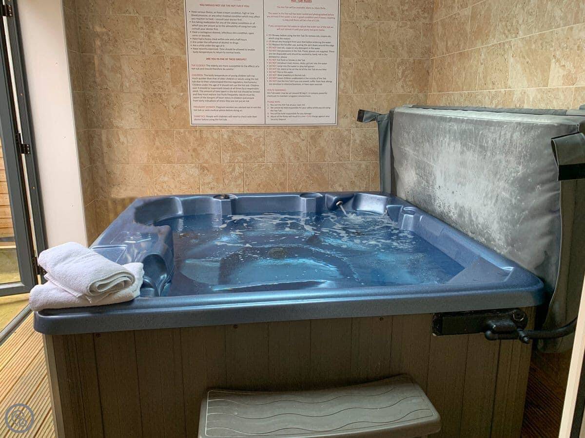 There are twelve bedrooms, all with their own bathrooms. Each bedroom has a TV. The rating is 4 Star. It's comfortable and well-equipped. Outside, each house has its own enclosed courtyard with a hot tub.