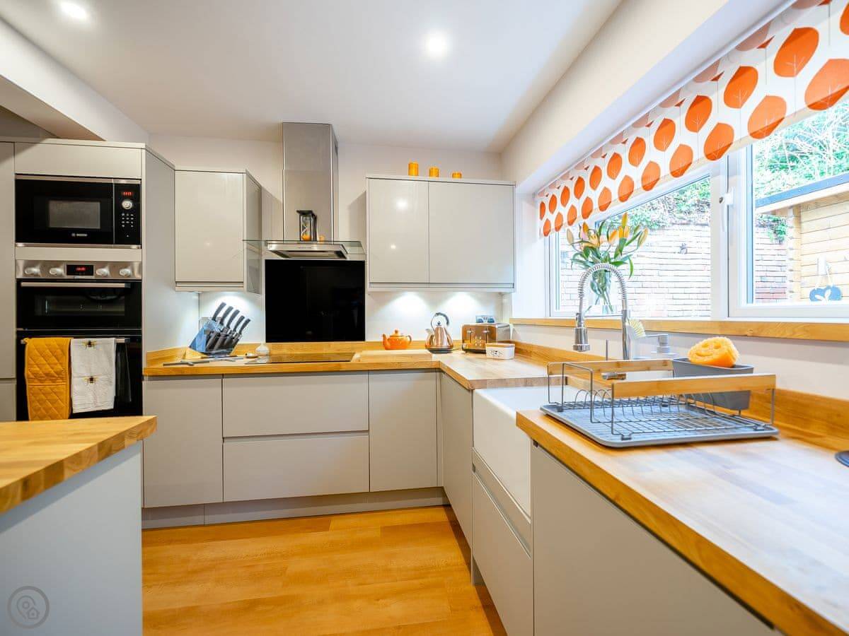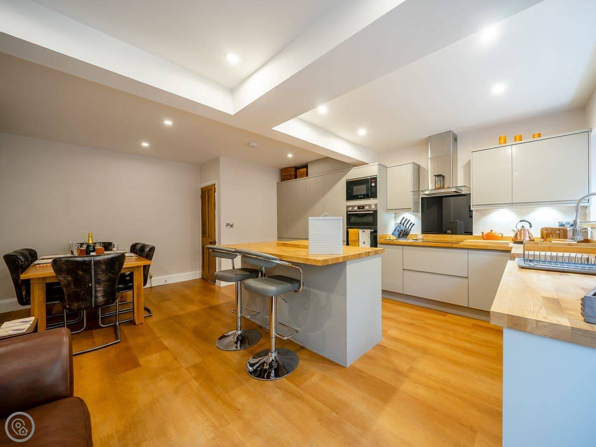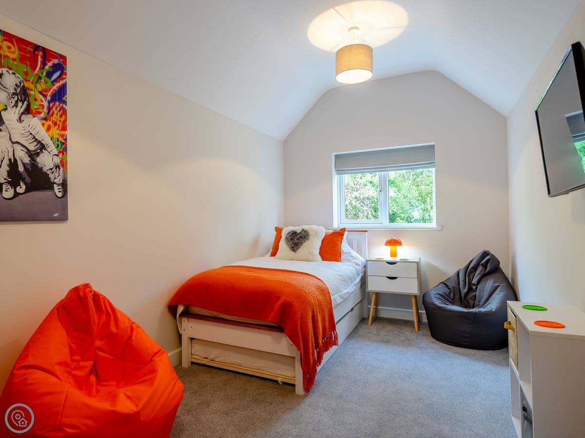 You've got a courtyard garden out the back. Inside, there's a kitchen diner that opens onto it, and a separate living room with a wood burner. TVs in the living room and a couple of the bedrooms. WiFi is included.