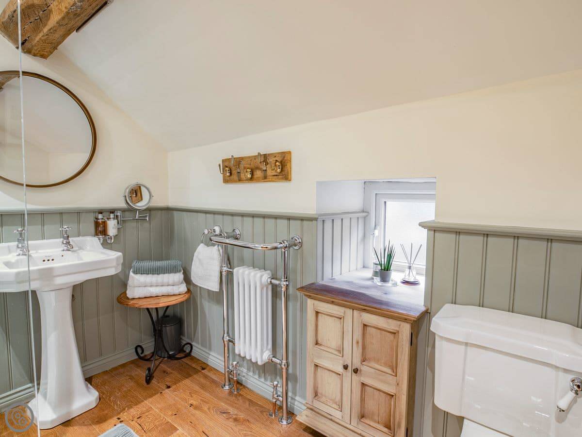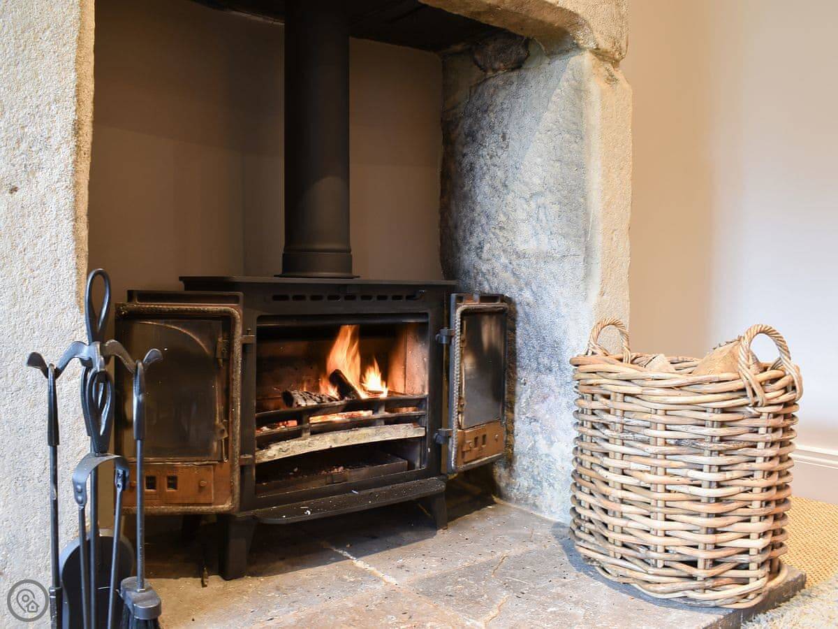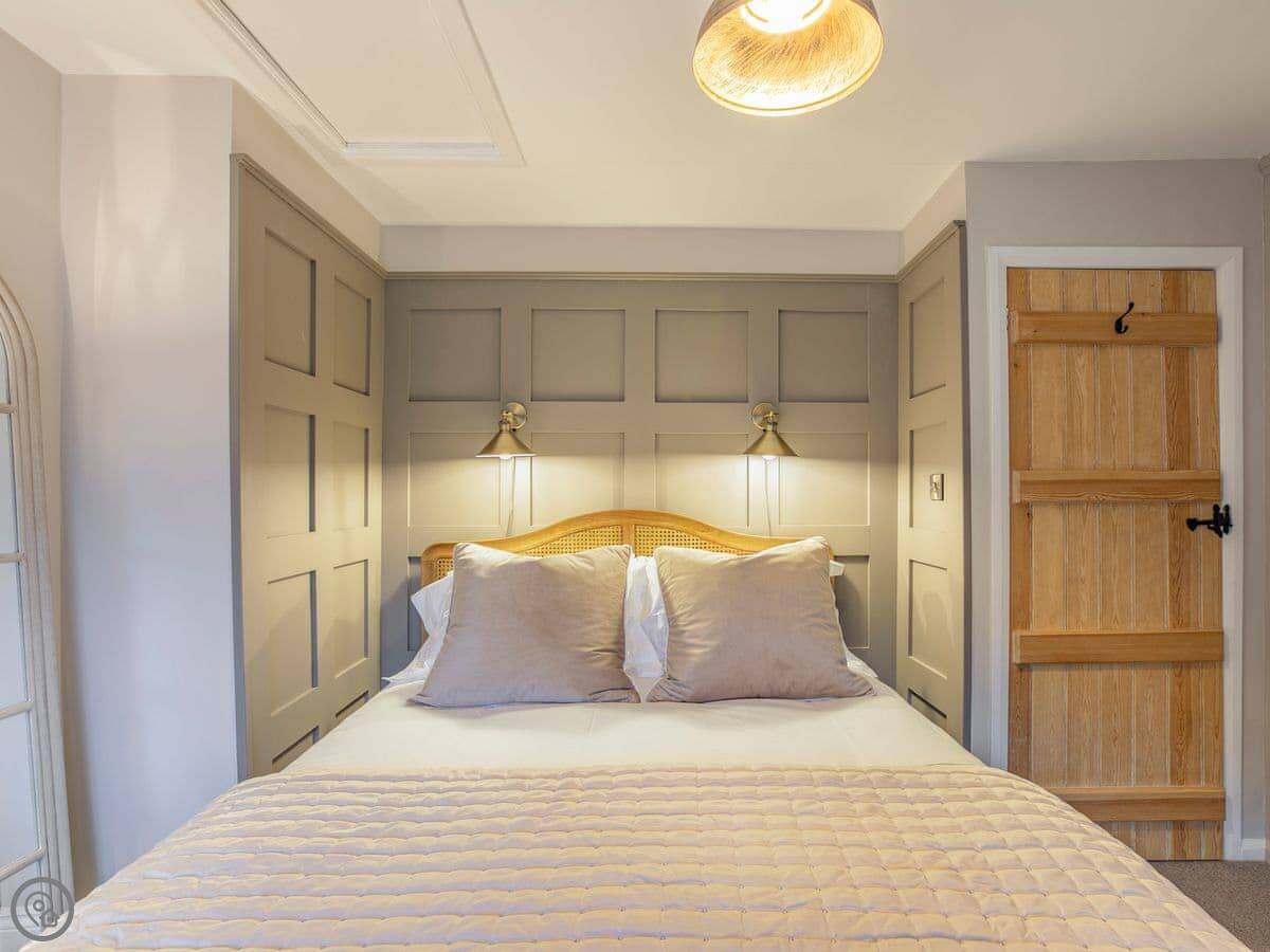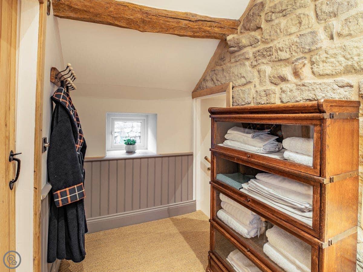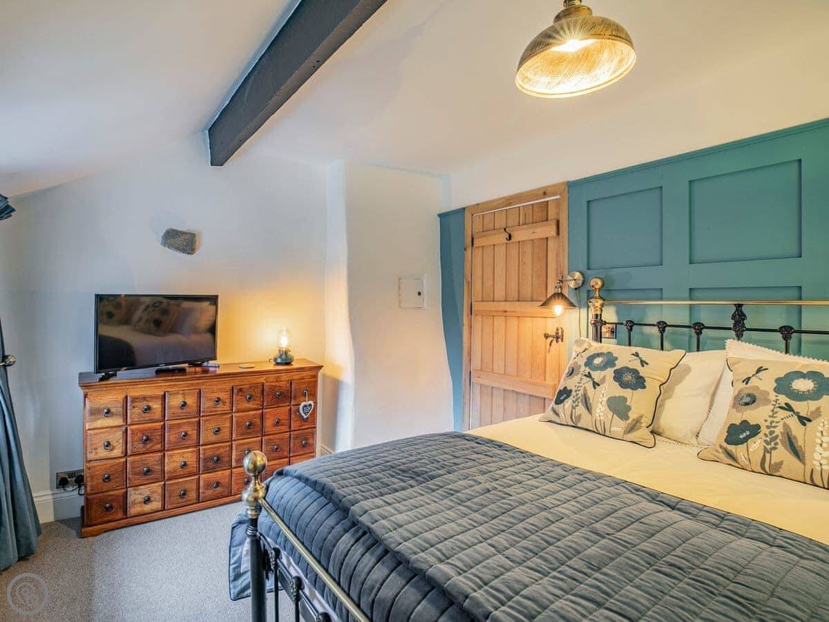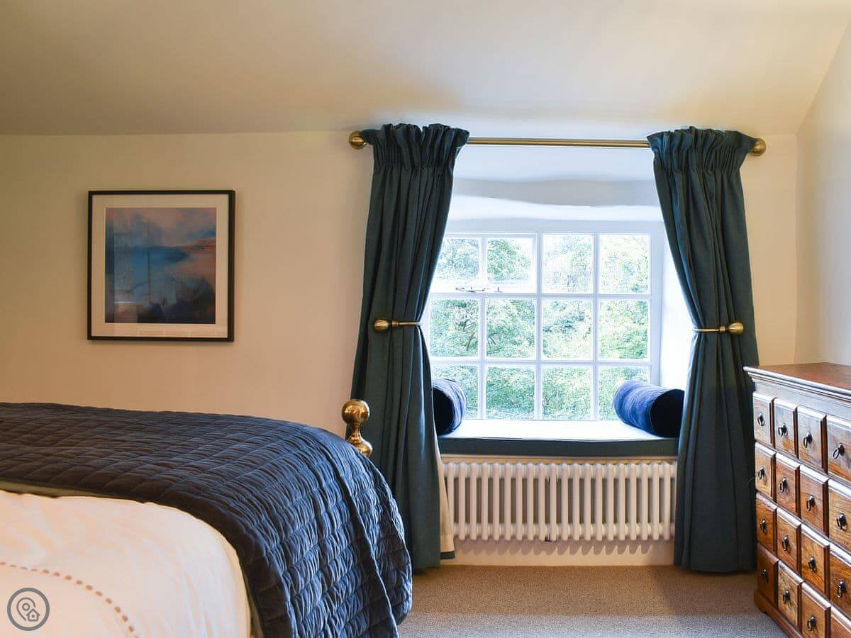 It sleeps five. Three bedrooms, one bathroom. It's got a 5 Star rating, which covers things like the wood burner and the finishes. The stairs are steep. They're open-sided and the steps aren't all the same size. Some of the doorways are low, you'll need to duck.