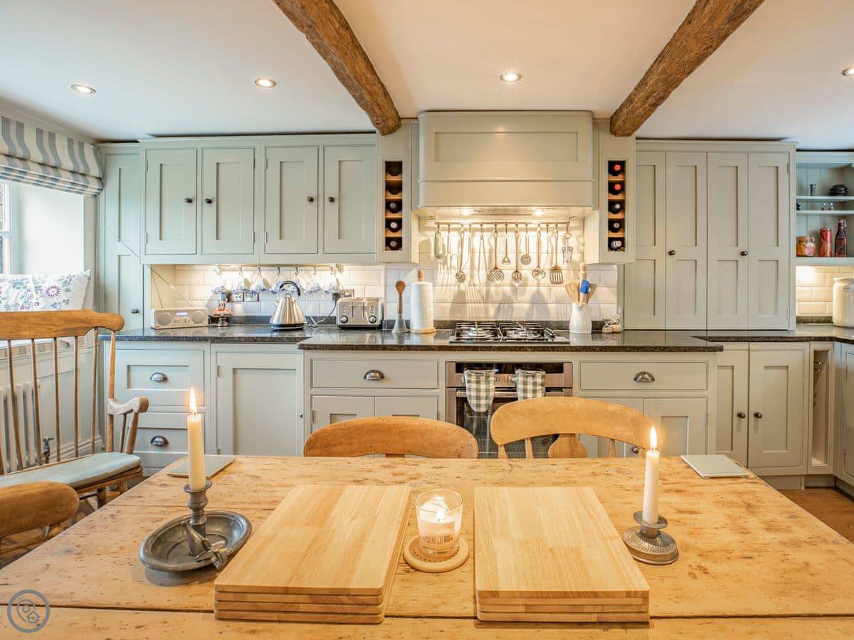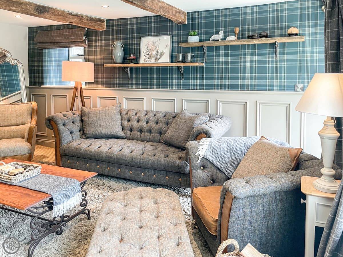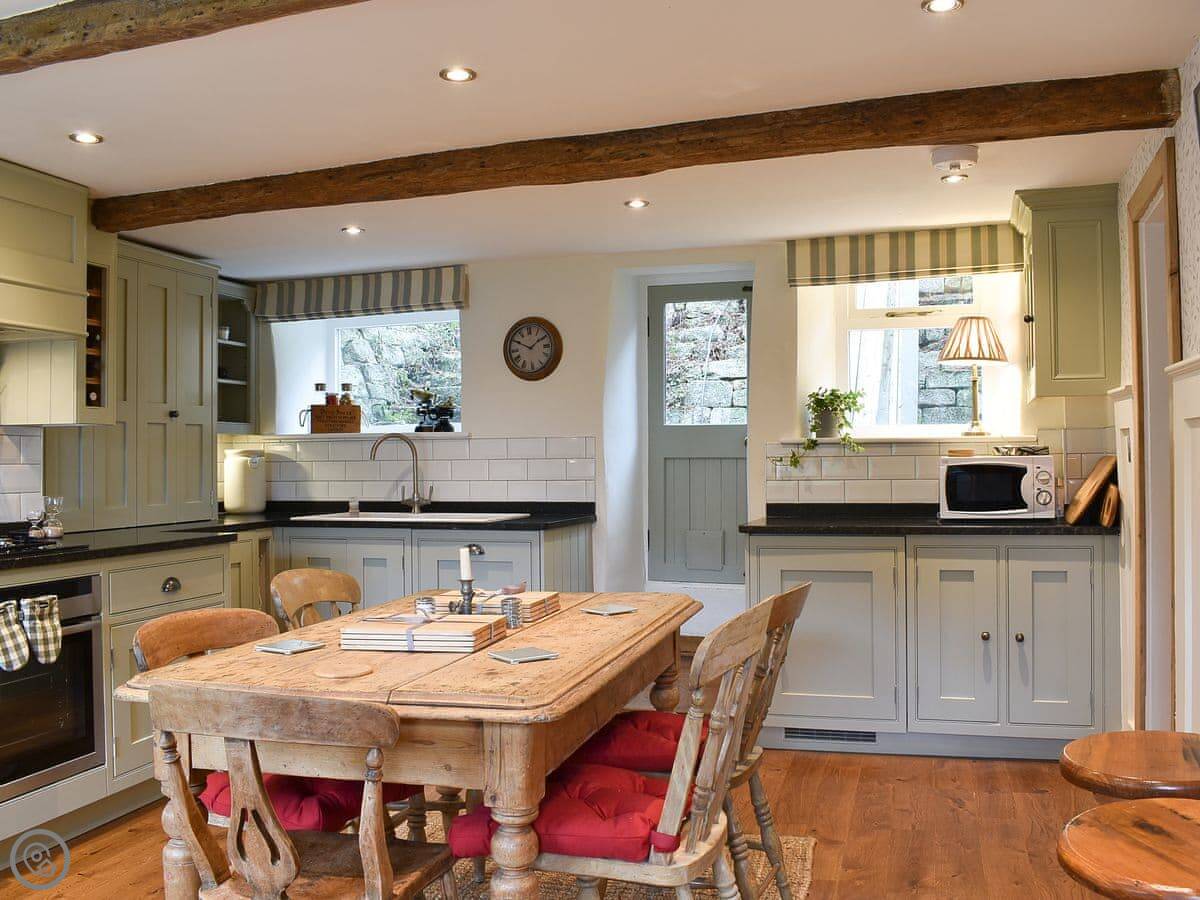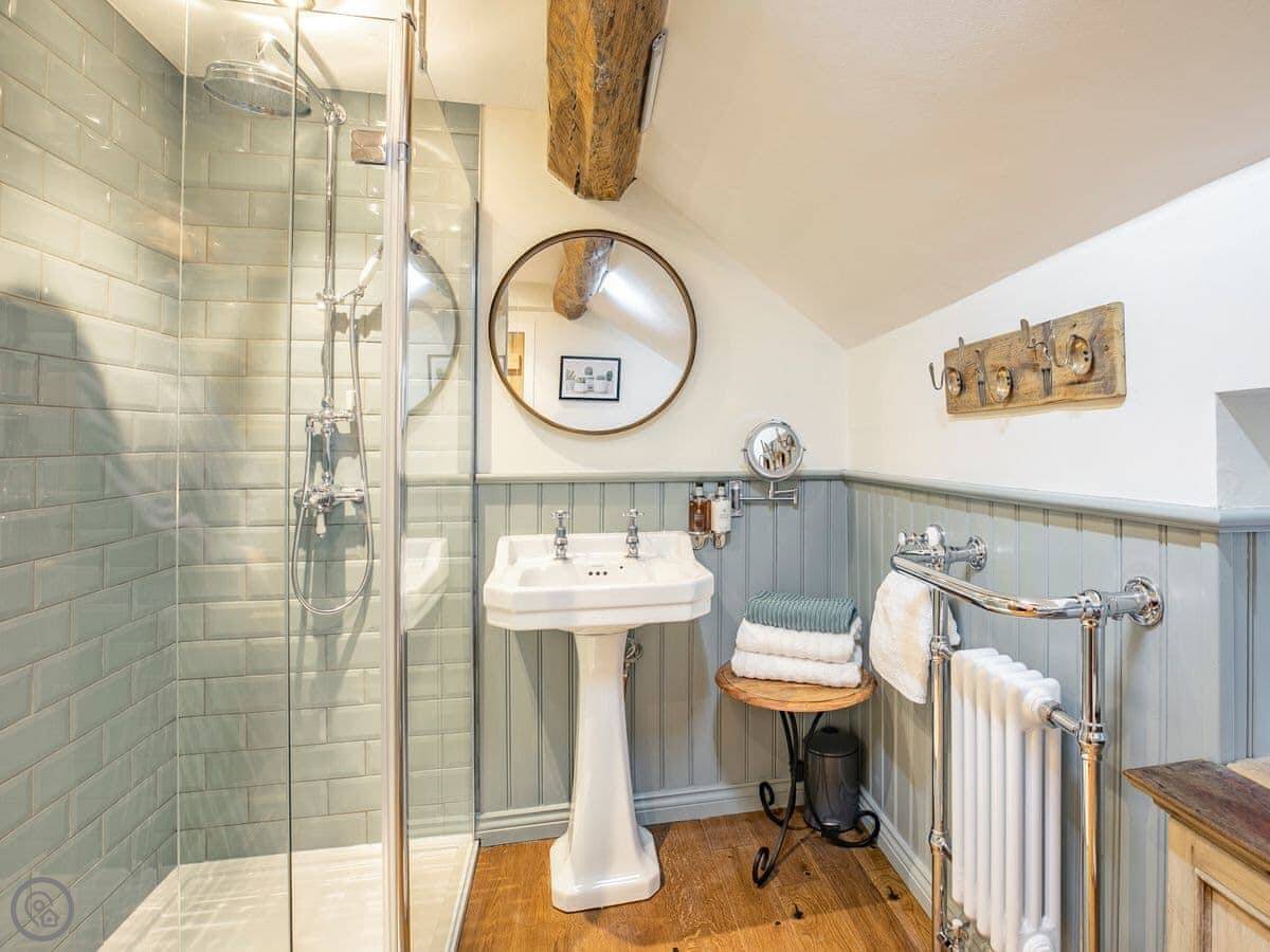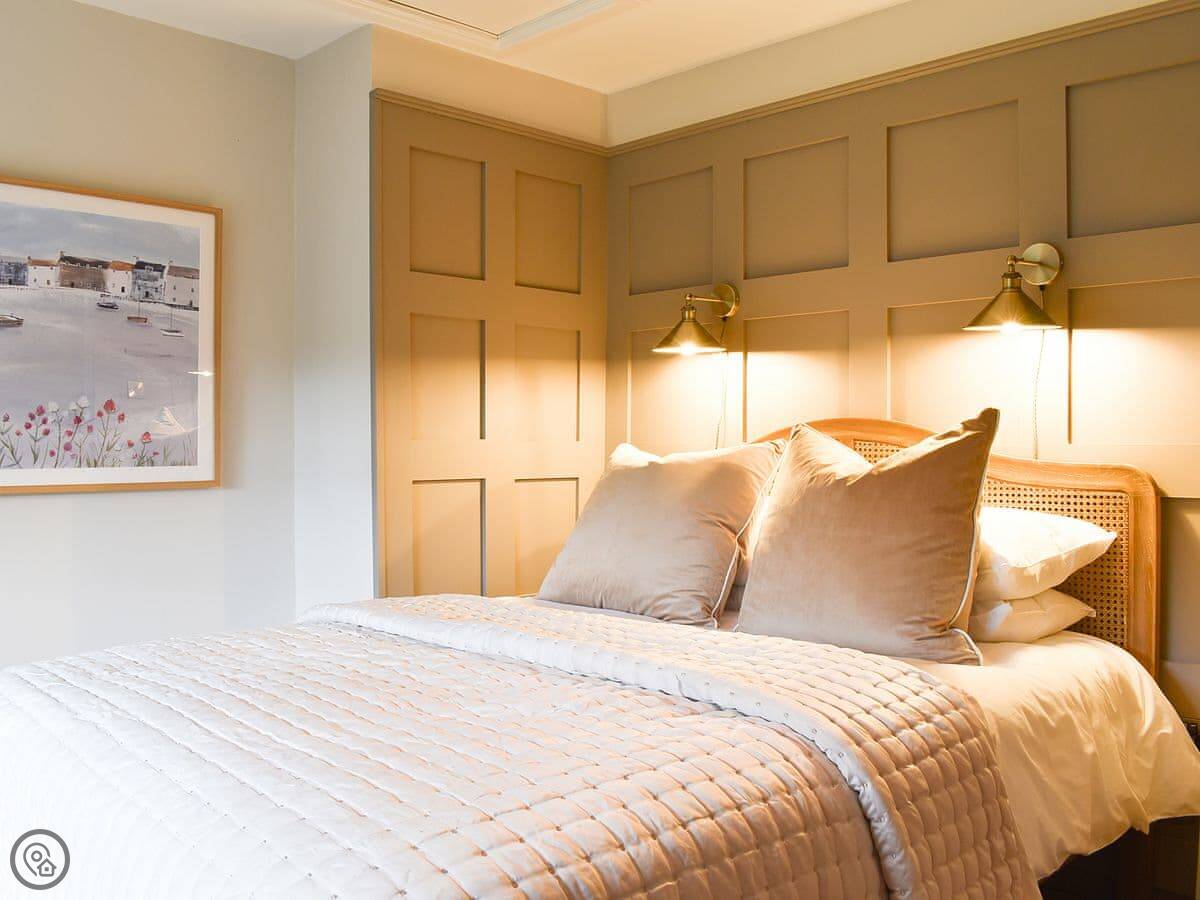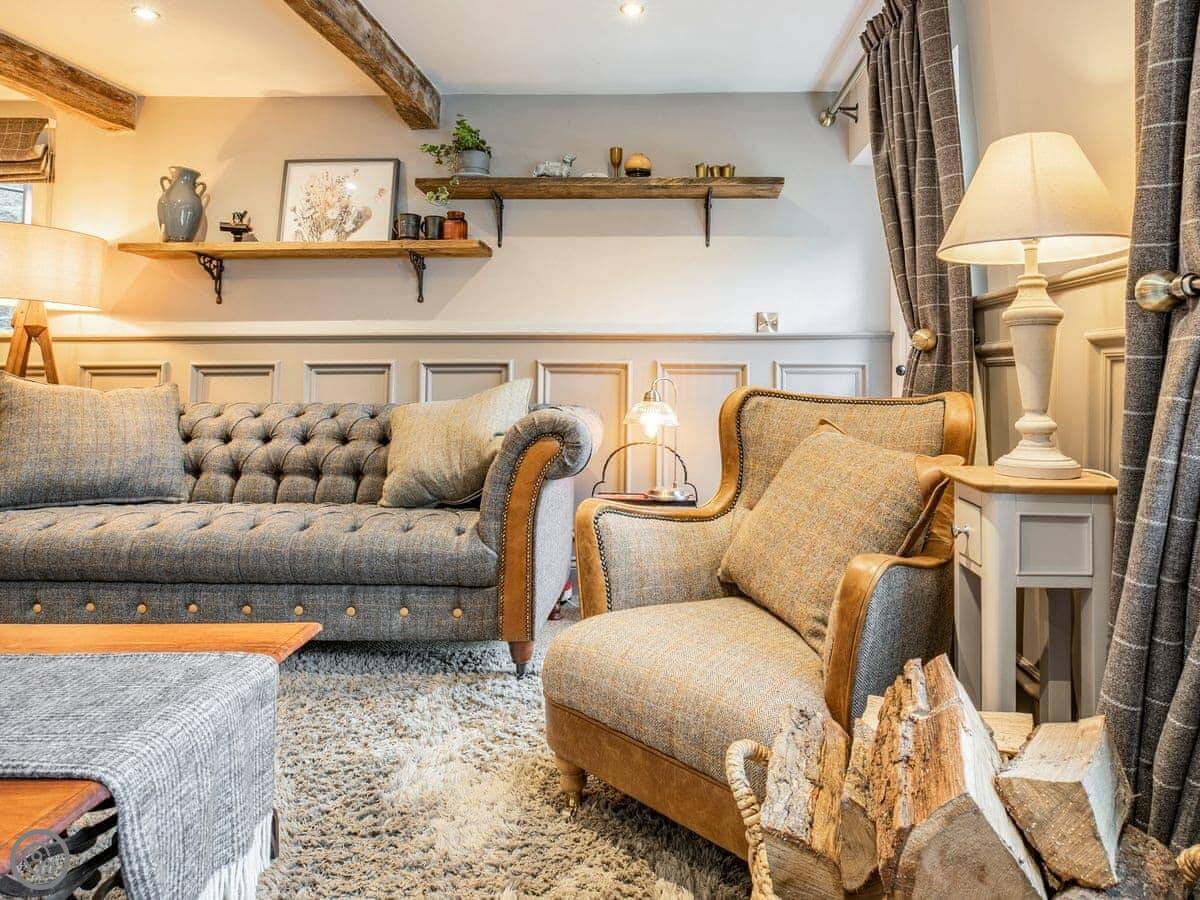 It sleeps five. Three bedrooms, one bathroom. It's got a 5 Star rating, which covers things like the wood burner and the finishes. The stairs are steep. They're open-sided and the steps aren't all the same size. Some of the doorways are low, you'll need to duck.