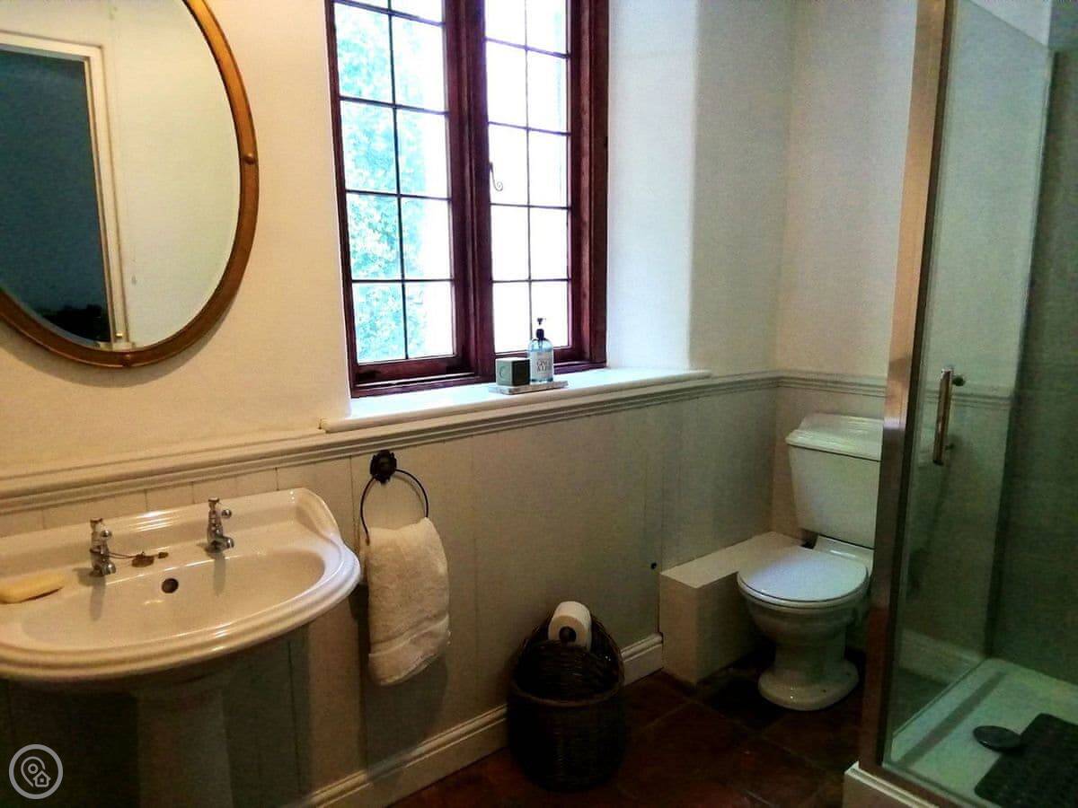 Relax at the end of a fun-filled day in the living room which has a woodburning stove and a smart TV with Netflix and Amazon Prime which can entertain as you unwind on the comfortable seating. A more formal sitting room boasts a stunning Belgian black slate fireplace and offers an elegant spot to find a quiet moment, while down the hall is the lovely dining room, complete with furnishings hundreds of years old, with windows overlooking the patio. A shower room and a cloakroom complete the ground floor, while the first floor can be reached via the main staircase or the quaint servants’ staircase, the latter leading to a children’s play area. The hand-crafted oak staircase brings you to seven beautifully fitted bedrooms, comprising of four double bedrooms, a twin room, a single and an opulent super-king-size bedroom, served by two bathrooms both boasting freestanding baths with original fixtures, with one also home to a walk-in shower.