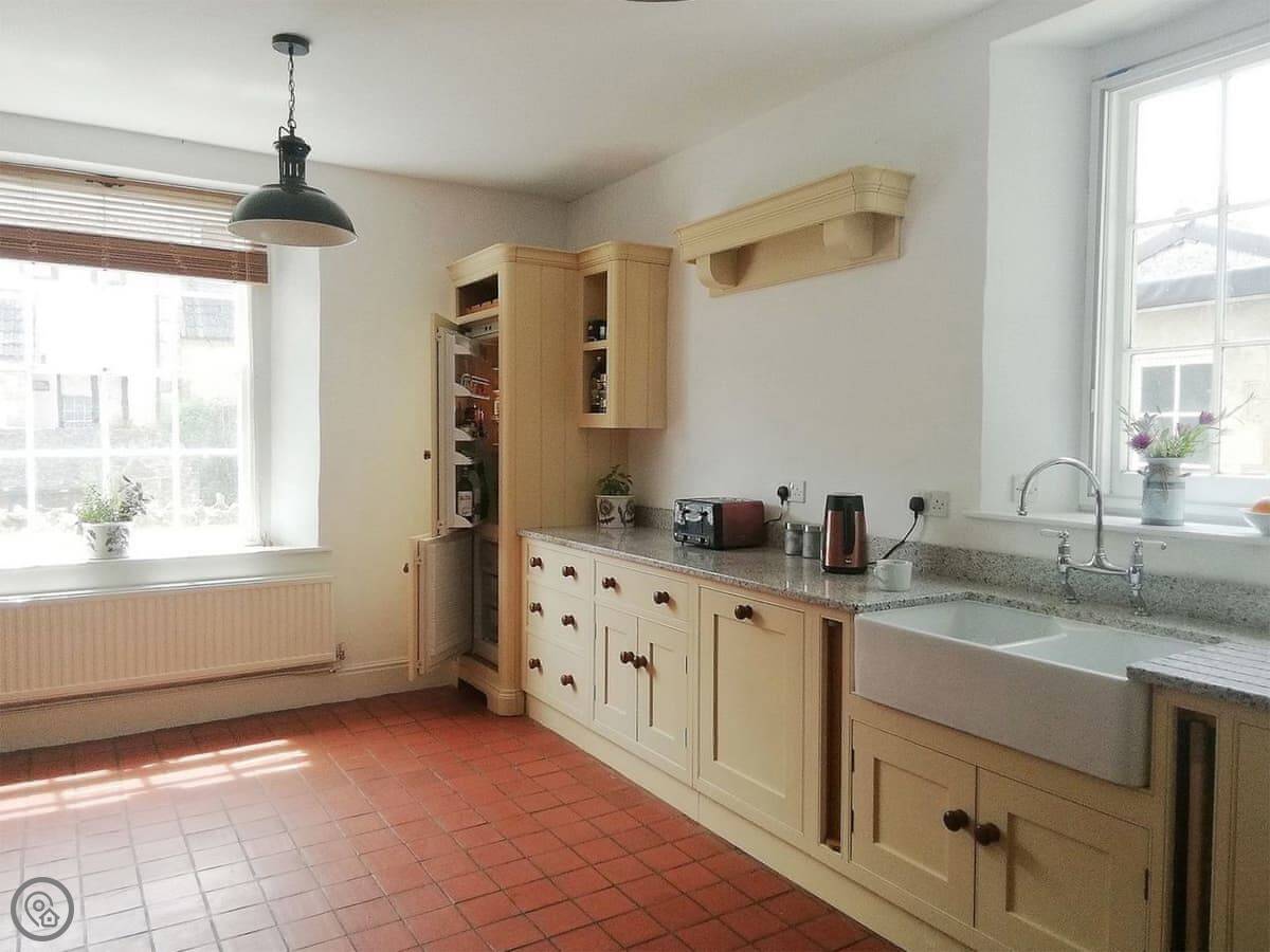A stunning, historic and Grade II listed farmhouse, Rock Farm has been beautifully decorated to a wonderful standard, located in the heart of the quaint fishing village of Beer in Devon. Ideal for a unique family getaway to Devon’s Jurassic Coast, the holiday home boasts a beautiful enclosed garden, six bedrooms and spacious living areas, with carefully preserved original features throughout. Enter the property, stepping onto the original slate floor echoing over 200 years of history, before finding the more recently fitted kitchen to the right, complete with granite worktops, a double Belfast sink, microwave, fridge-freezer, dishwasher and a Mercury duel fuel range, alongside an original feature bread oven. Discover a utility room across the hall, hosting a washing machine and an additional fridge and freezer and the original slush gully from when it was a working farm over 150 years ago.