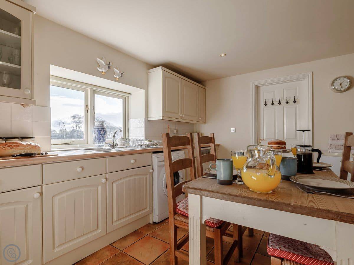 The Cottage is a beautiful, detached property with all the essentials to ensure a fantastic stay. Enter into the kitchen which has a warm, cottage-like feel to it, equipped with everything you need and a dining table to seat 4. On arrival a welcome pack is provided with tea, coffee, wine and a homemade cake. Also on the ground floor are two bedrooms, the first with bunk beds and the second a kingsize bed. The family bathroom is also located on ground floor level. Upstairs is the living room with a Smart TV. Outside is a private lawn and courtyard area with outdoor furniture and wonderful views over the fields, there is also private parking available.