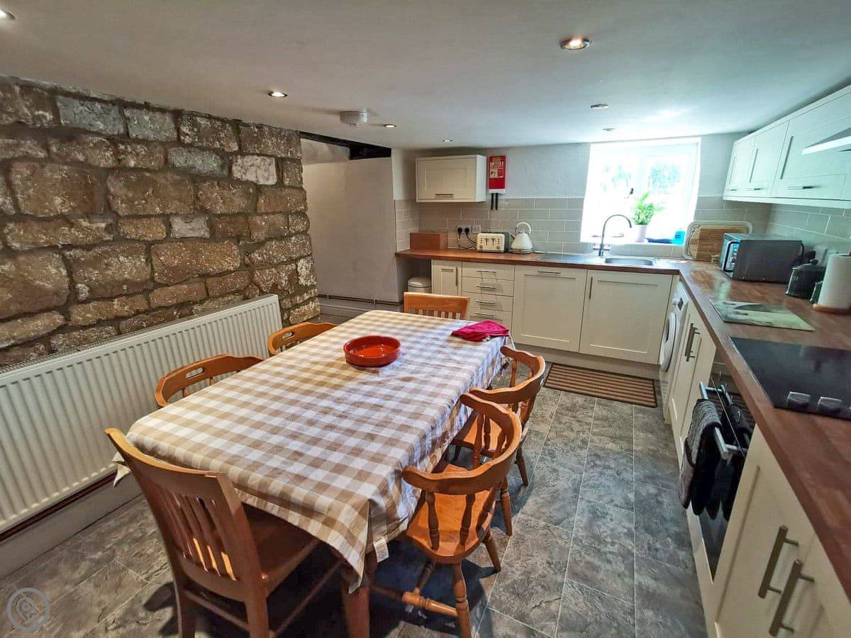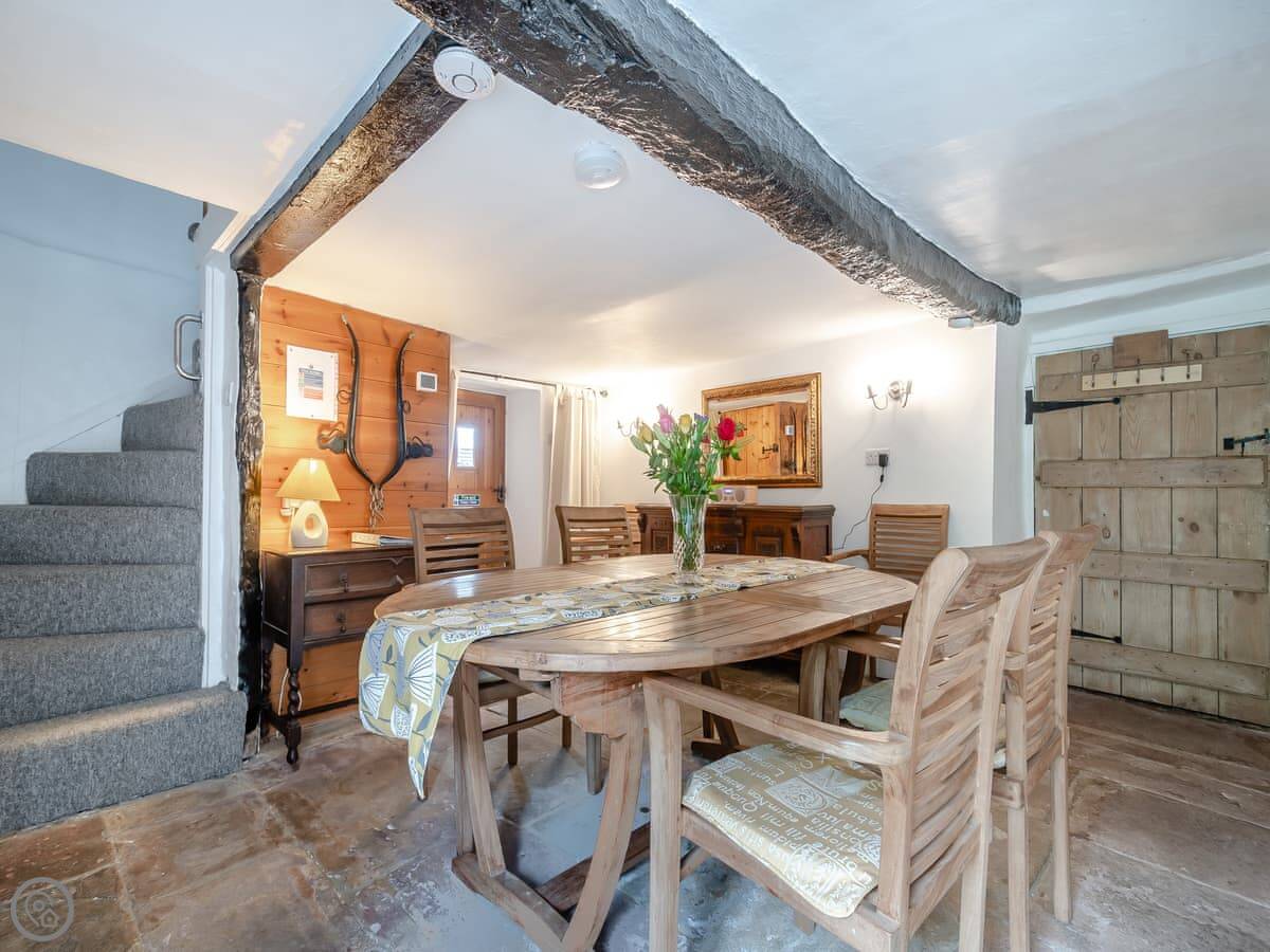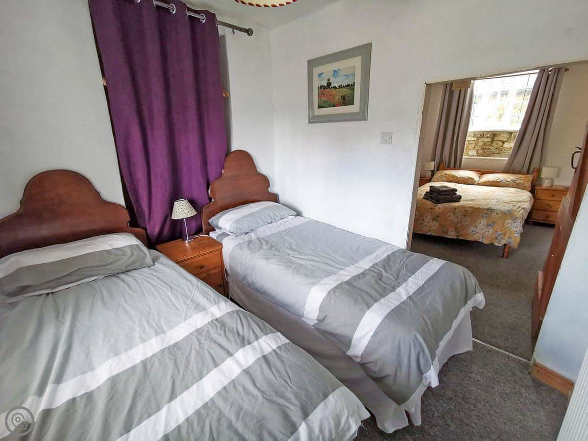 The annexe sleeps six. Three bedrooms, one bathroom. We had it all refreshed a few years ago, new kitchen and bathroom, proper central heating. It's a 3 Star place. Comfortable and clean, but it's an old building. The ceilings are low with beams, mind your head. The stairs are cottage stairs, so they're steep and a bit narrow.