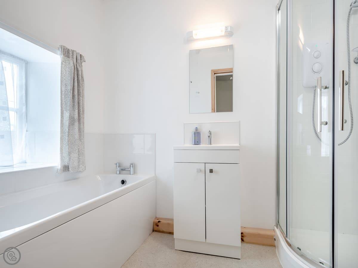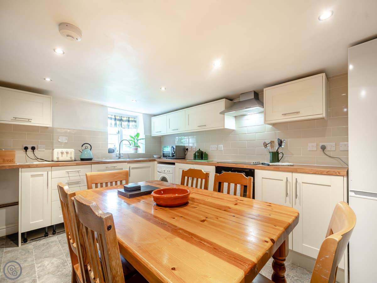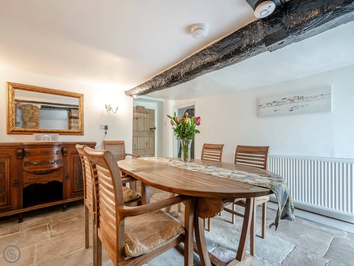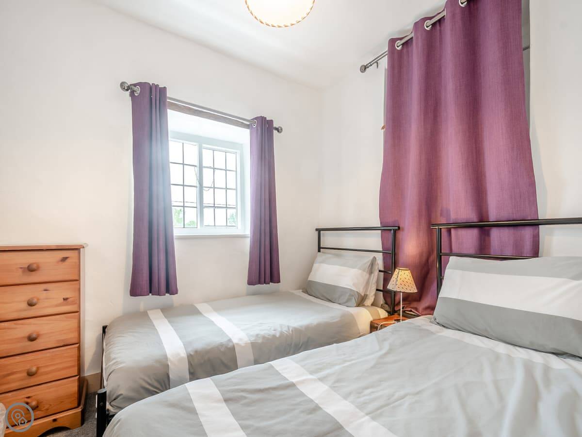 The annexe sleeps six. Three bedrooms, one bathroom. We had it all refreshed a few years ago, new kitchen and bathroom, proper central heating. It's a 3 Star place. Comfortable and clean, but it's an old building. The ceilings are low with beams, mind your head. The stairs are cottage stairs, so they're steep and a bit narrow.