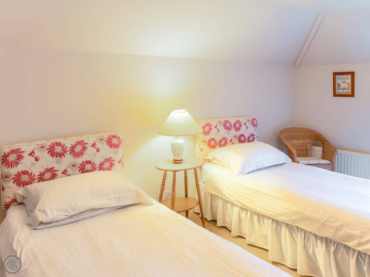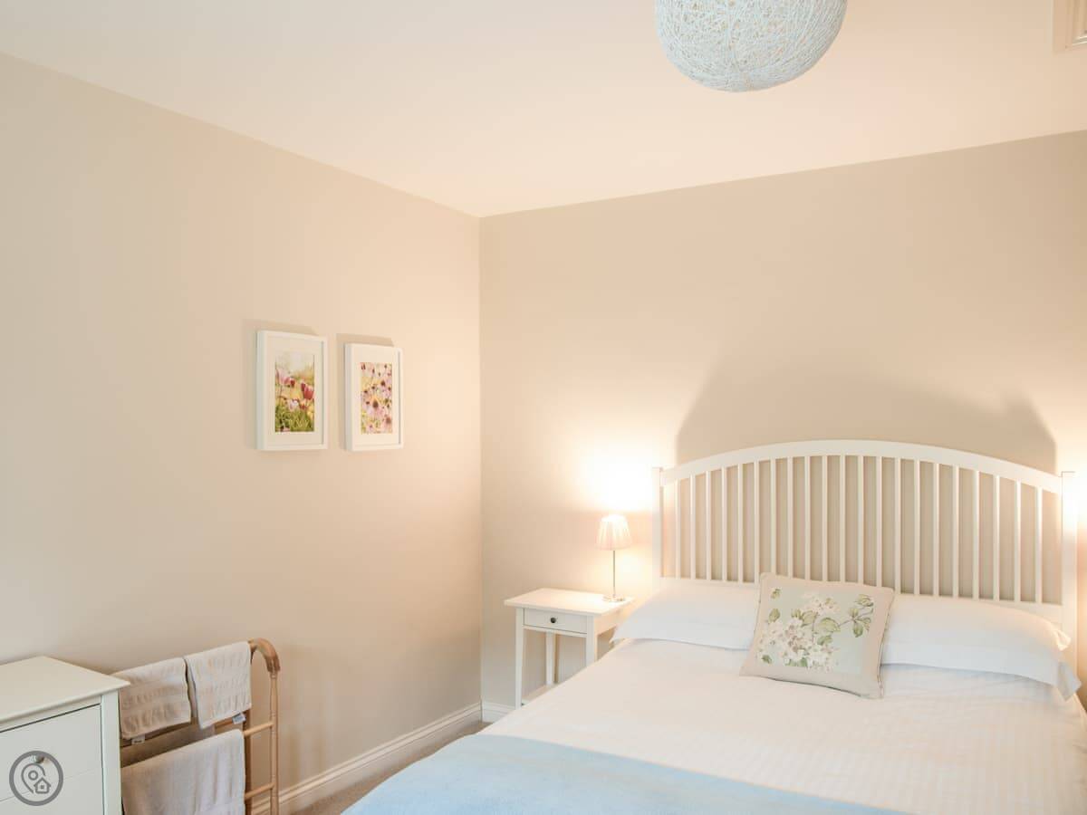 It sleeps four. Two bedrooms, both with their own bathroom, which is handy. It's got a 3 Star rating, so it's comfortable and clean without being over the top. There's a woodburning stove for the colder nights.