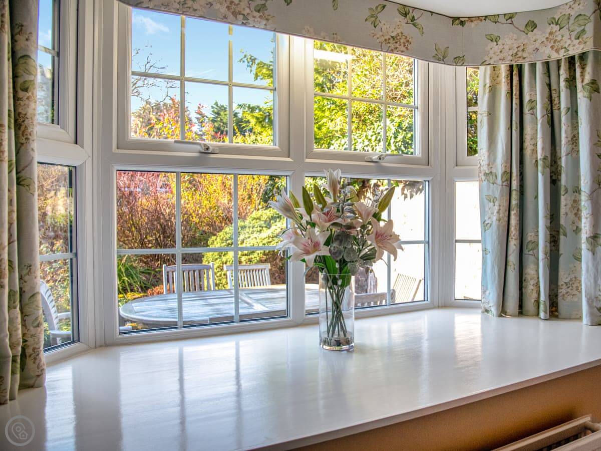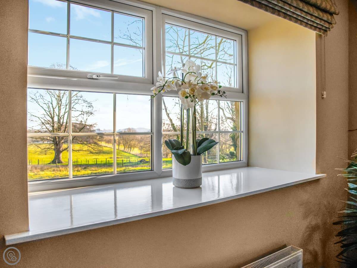 The views are the main thing. It looks out over fields, and you can see the sea from here. The village is a two minute walk. There's a shop, a farm shop, and a couple of pubs. You don't need to drive if you don't want to.
