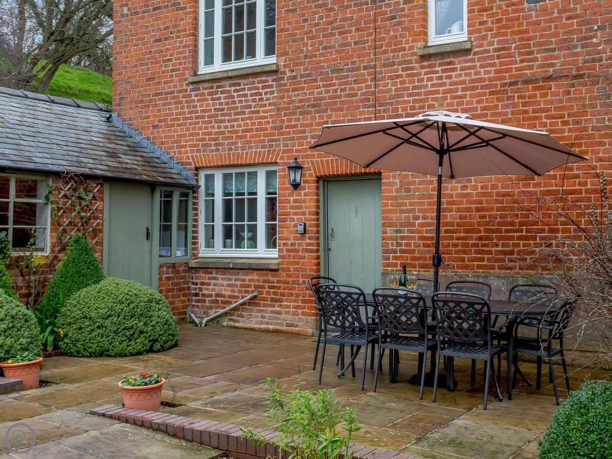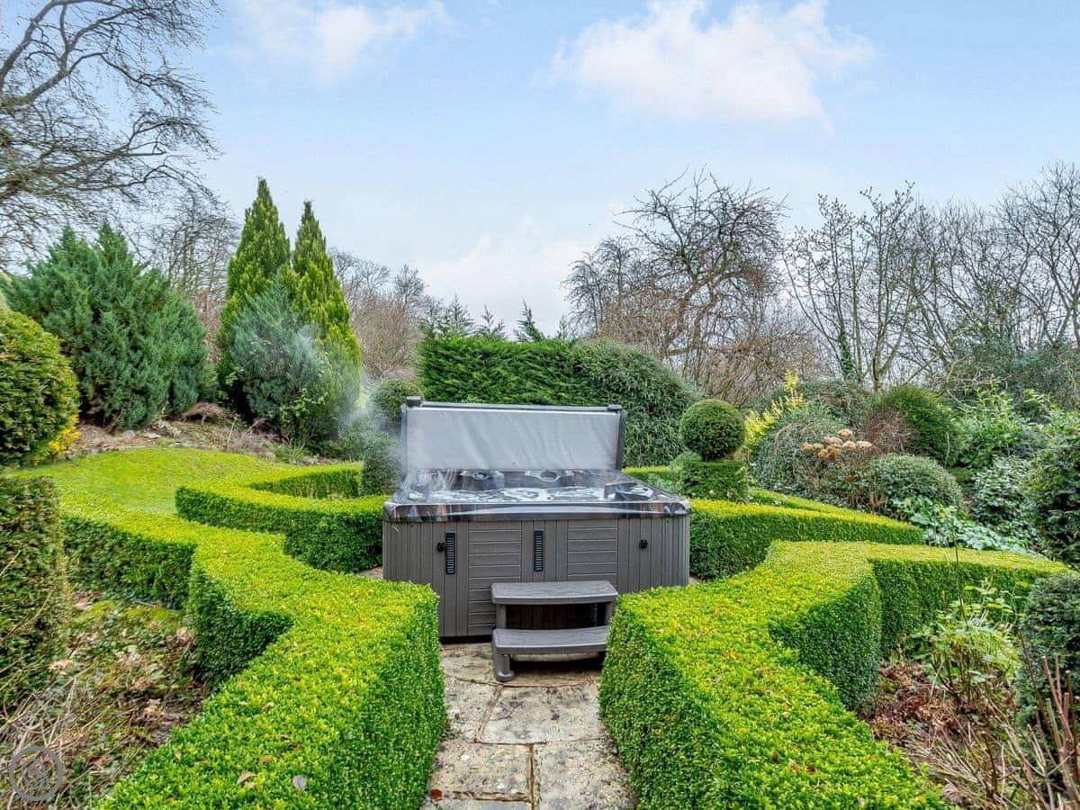 You can take two dogs. The garden is enclosed, mostly. There's an orchard you can walk around. The hot tub is there, on the patio.