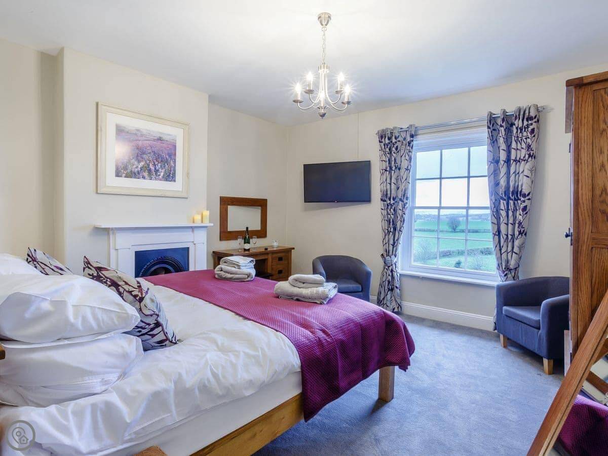 Old Upper Gwestydd is near Cefn Mawr, between Newtown and Welshpool. It's a detached stone house, up a farm track. You're on your own up there, just fields and the orchard next door. The views are good, just fields and hills.