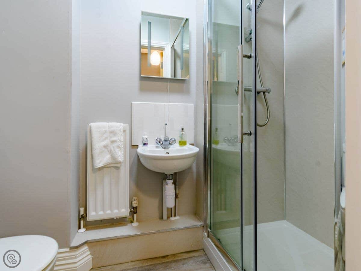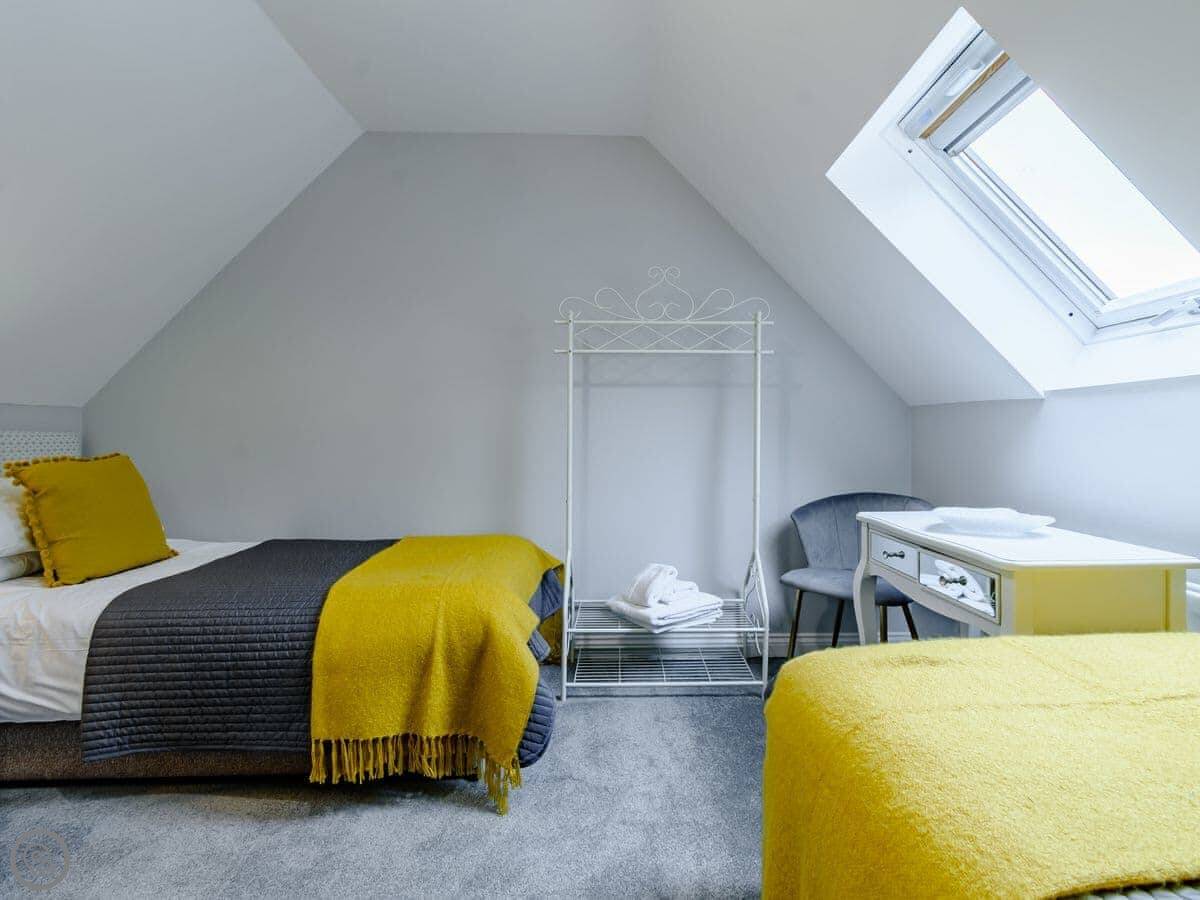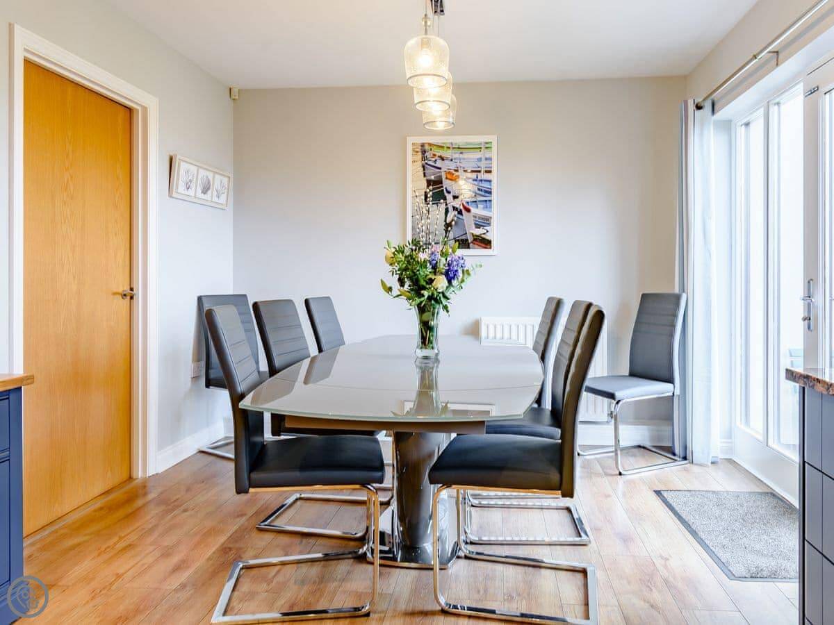 It sleeps eight. Four bedrooms, three bathrooms. One bedroom and a bathroom are on the ground floor, which is handy if stairs are a problem for anyone. It's got a 5 Star rating, so it's well finished and everything works.