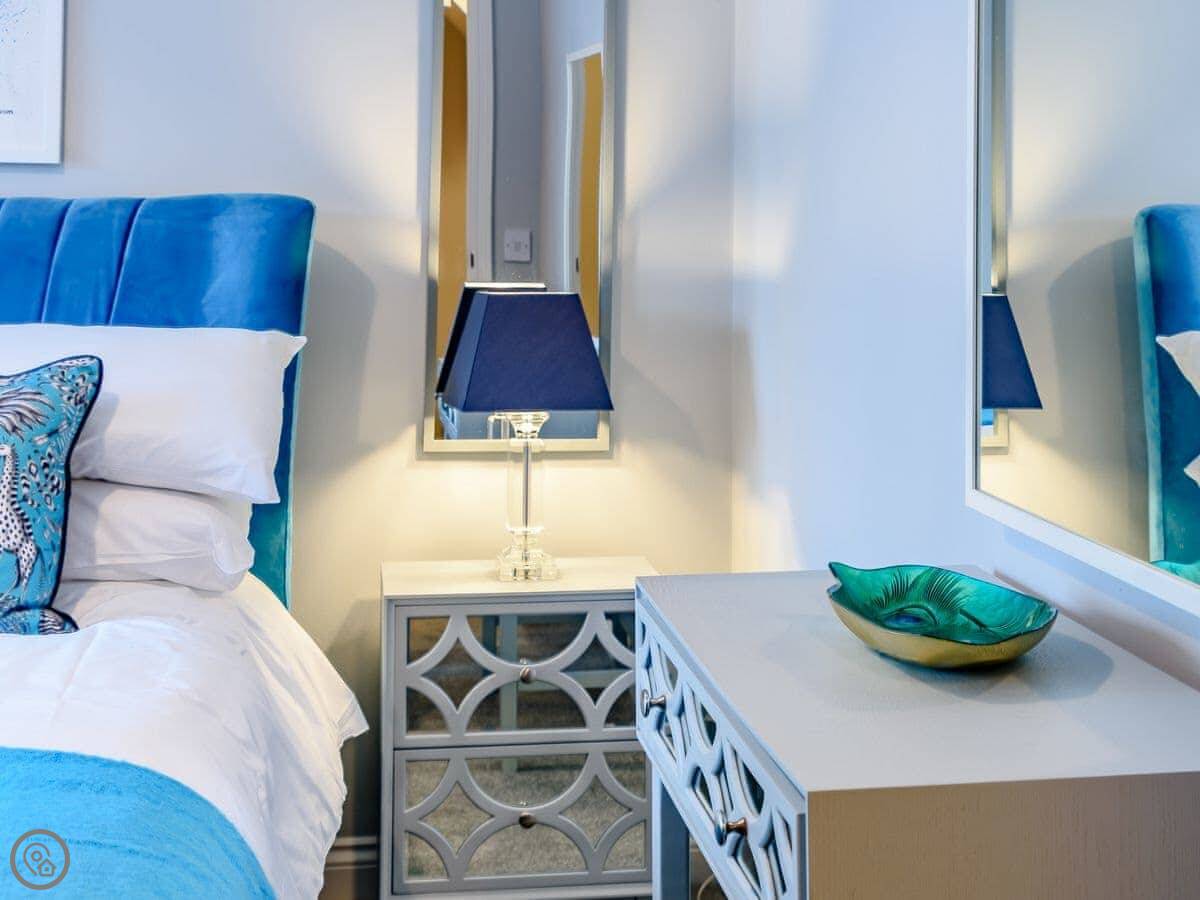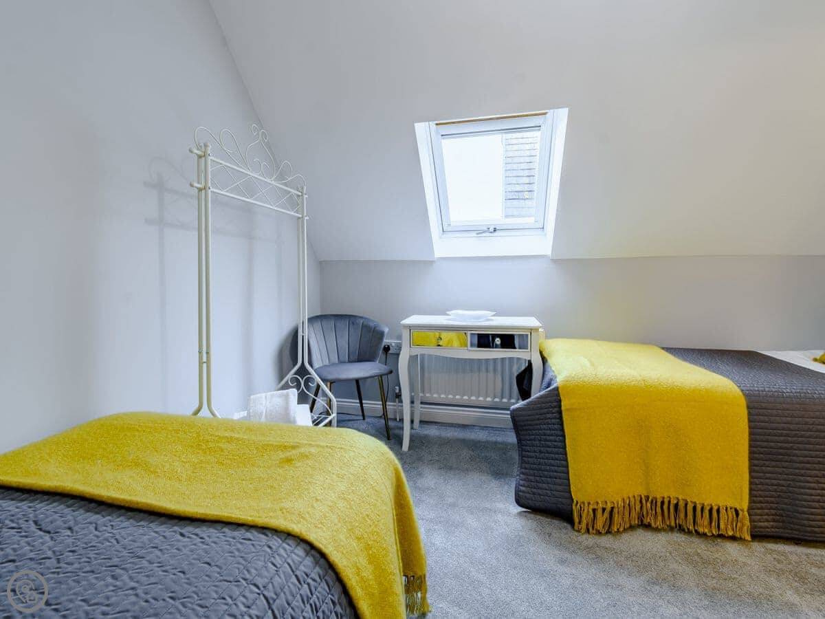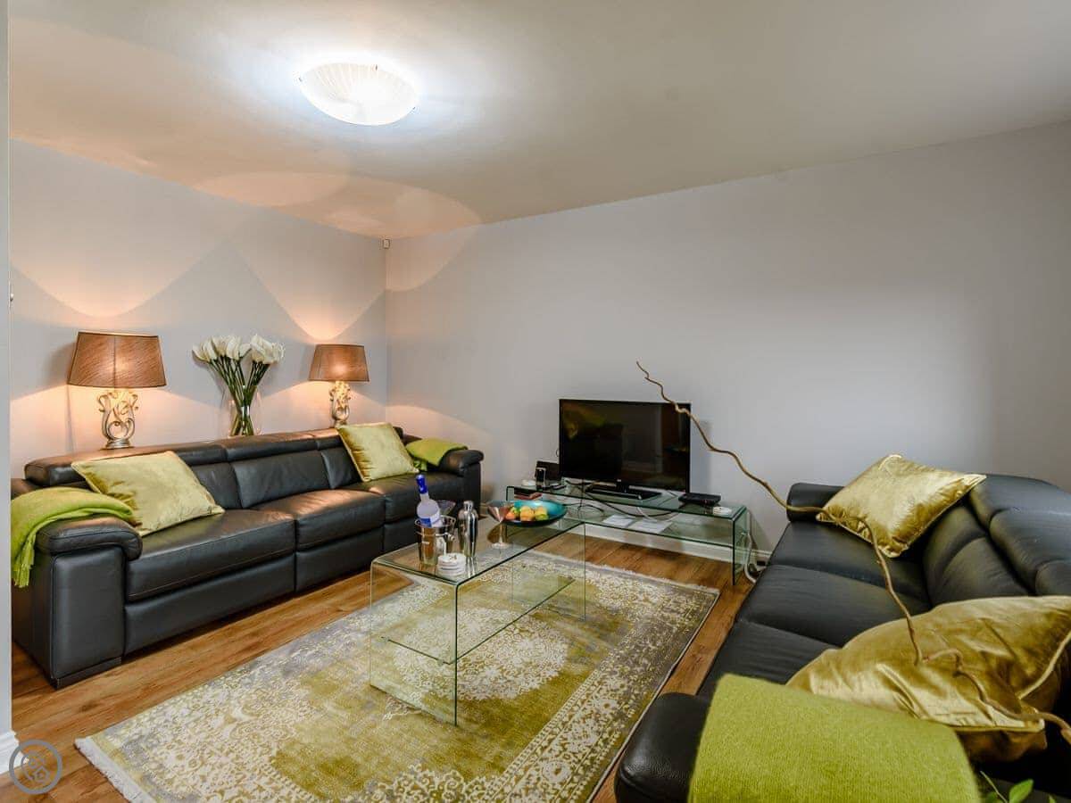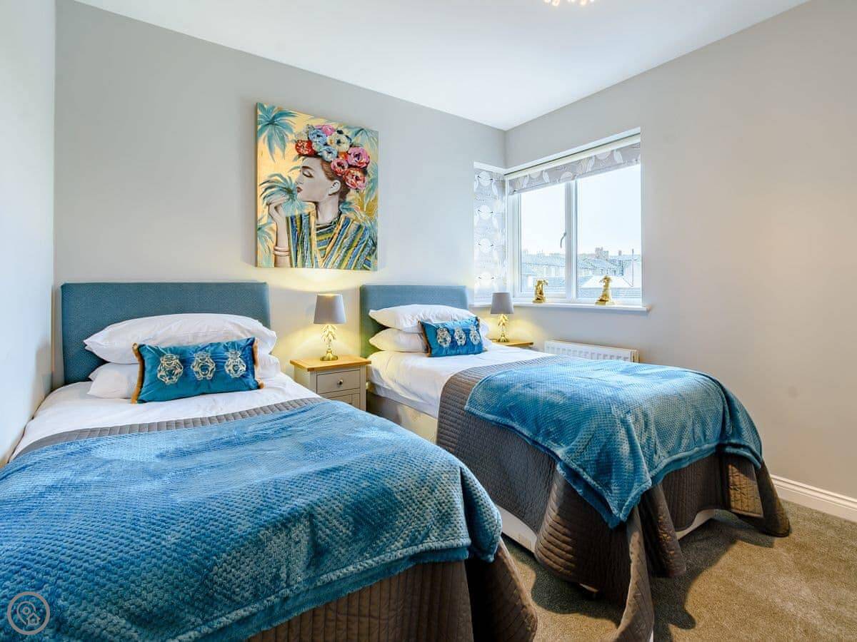 It sleeps eight. Four bedrooms, three bathrooms. One bedroom and a bathroom are on the ground floor, which is handy if stairs are a problem for anyone. It's got a 5 Star rating, so it's well finished and everything works.