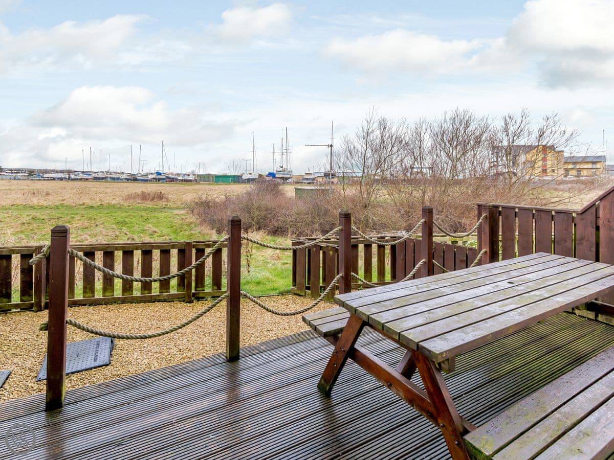 Marina View is in Amble, right on the edge of town. It's a townhouse, one of a terrace. The main thing is the view out over the harbour towards Warkworth Castle. You can see it from the upstairs living room and the deck.