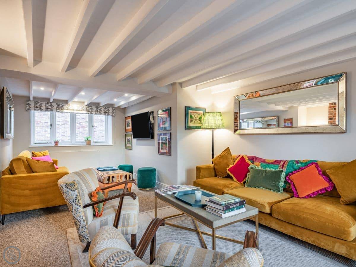 The place has been renovated by an interior designer. There are period features and some bright colours about. It's got a wood burner in the living room. The garden is a large courtyard, good for sitting out.