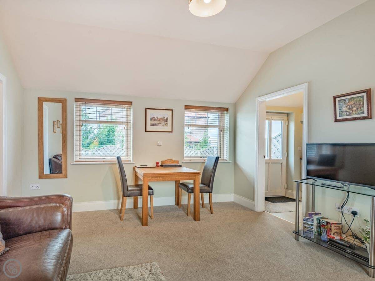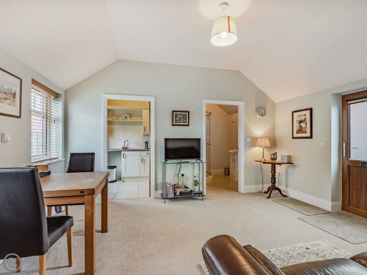 Location wise, it's quiet here. The nearest pub is in Thimbleby, about three miles away. For shops, you'd go to Woodhall Spa or Horncastle, both a short drive. Horncastle has antique shops, and Woodhall Spa has the Kinema in the Woods, which is a cinema in a pine forest. It's worth a visit.