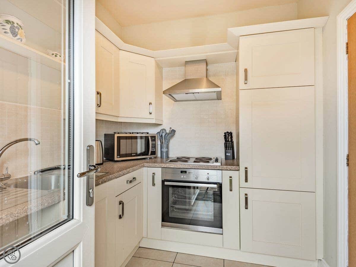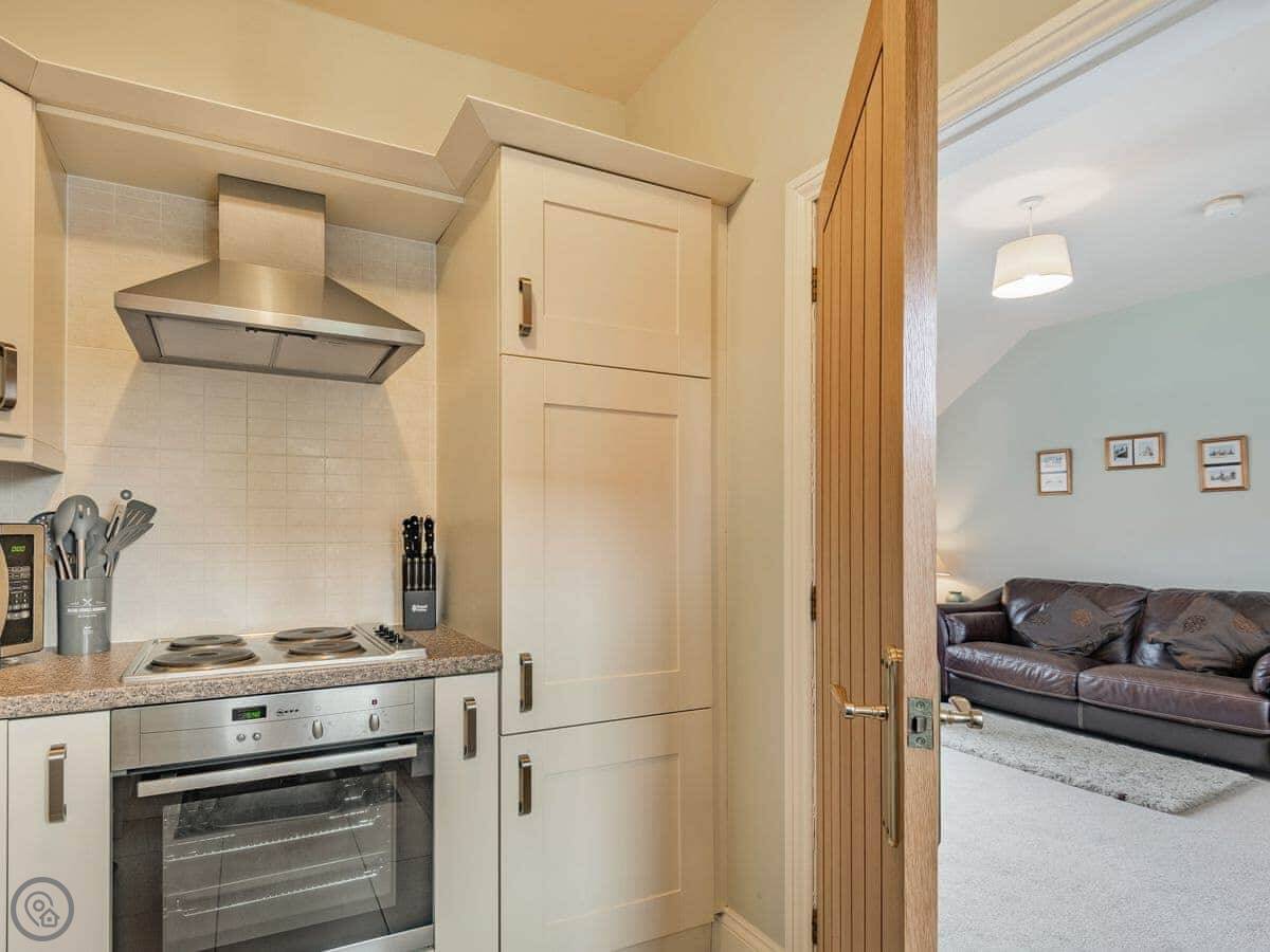 The barn is open plan downstairs. The patio area is enclosed, so it's secure if you bring a dog. You can park right outside.