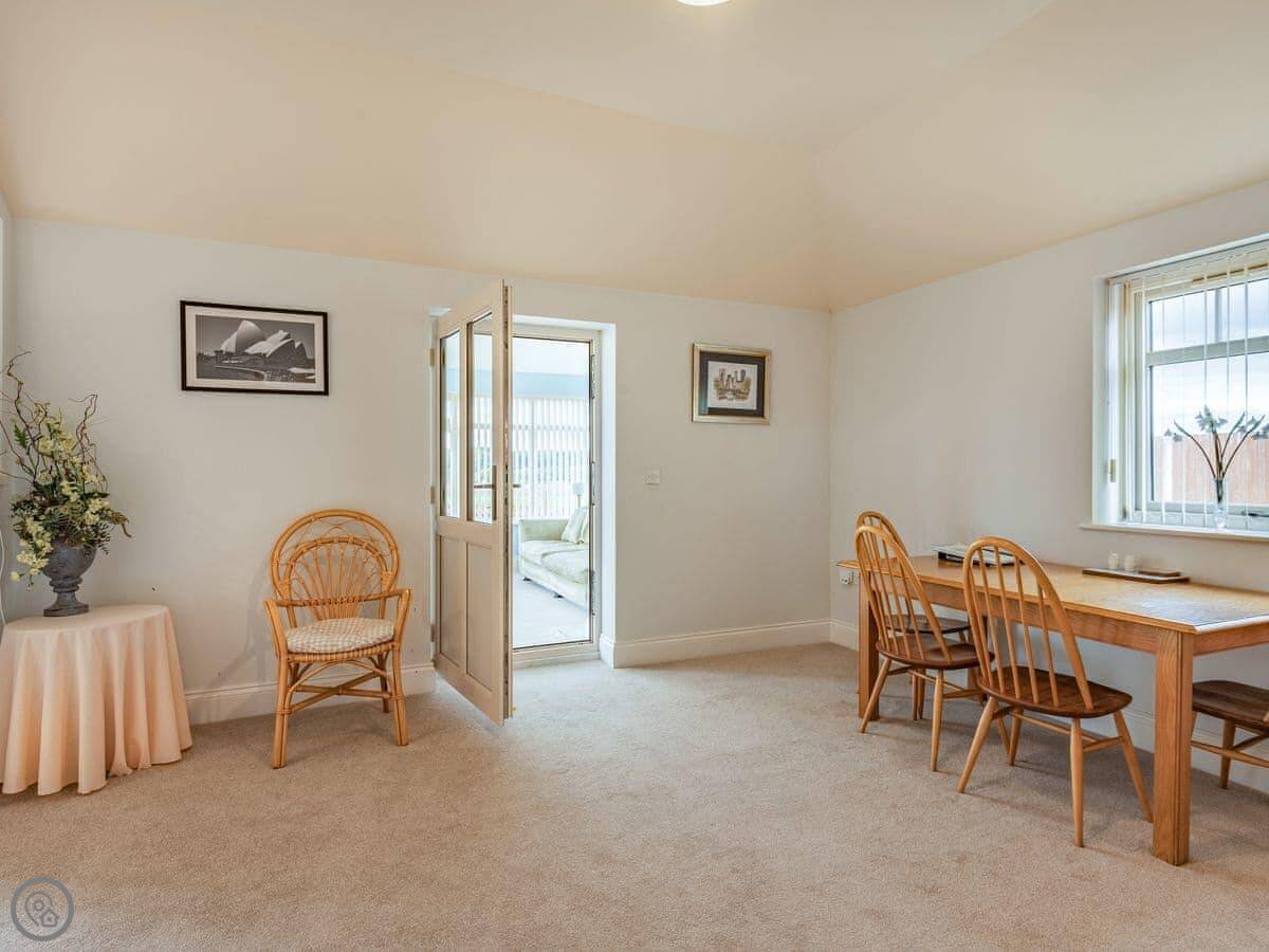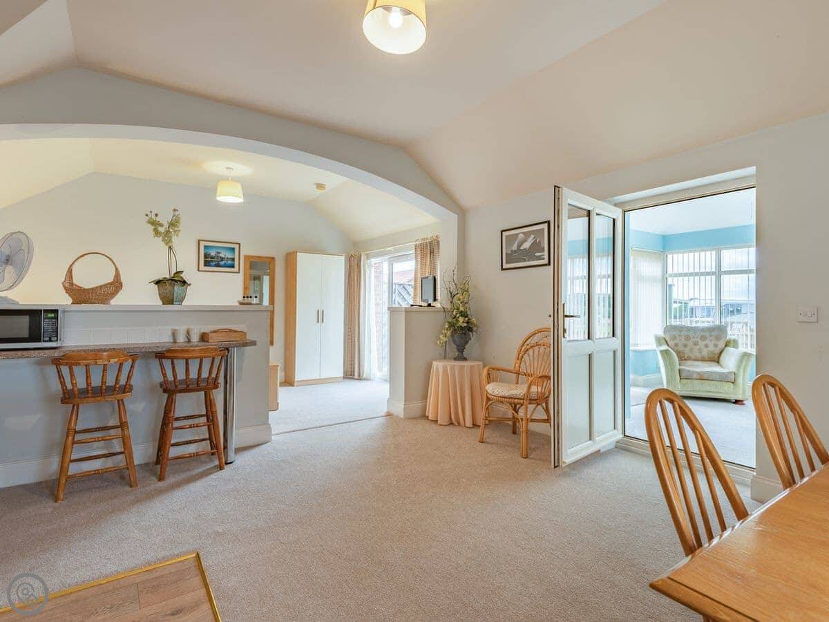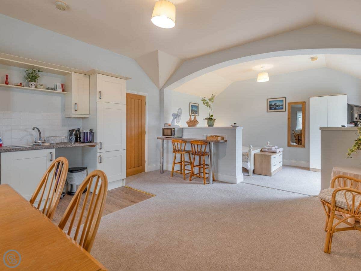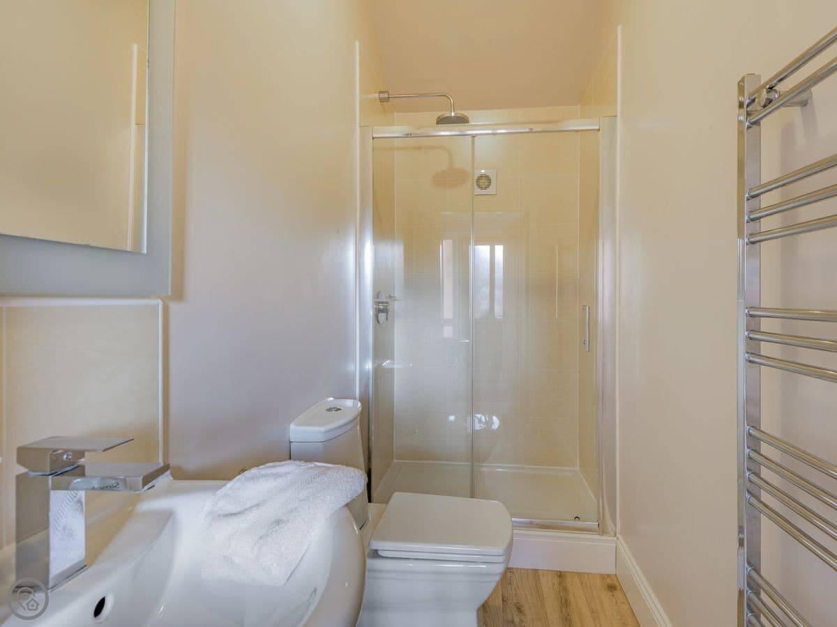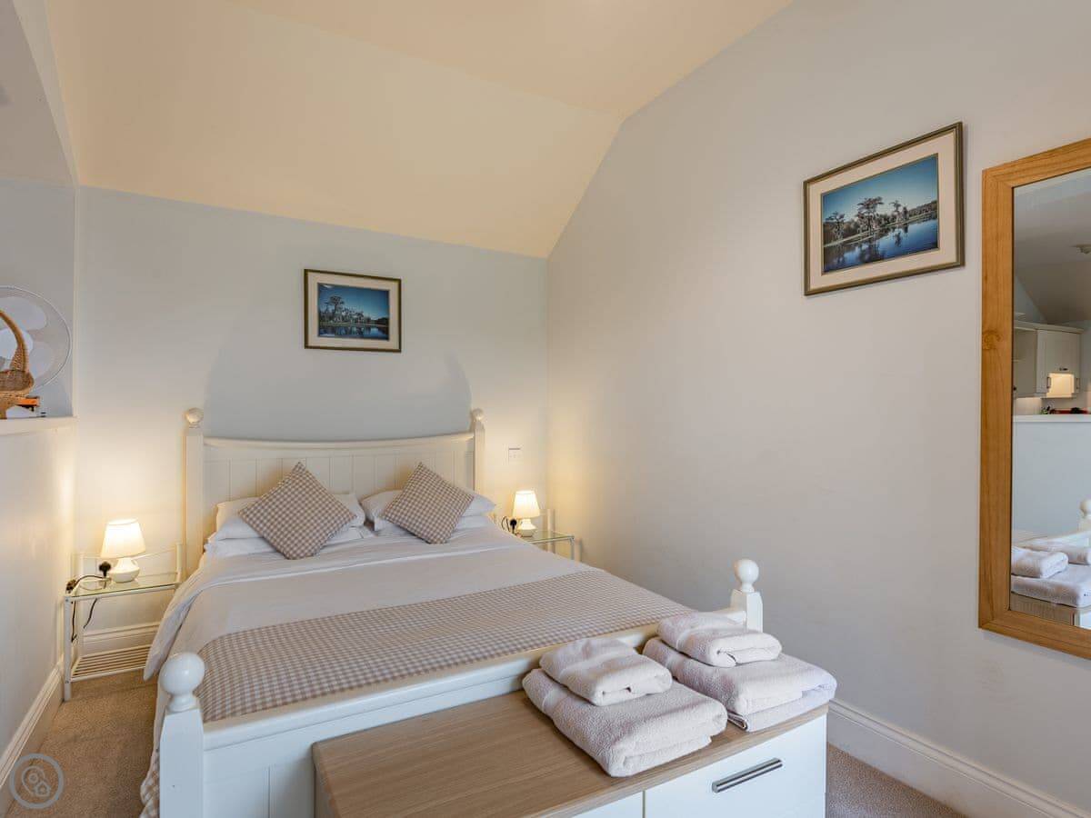 Inside, it's one bedroom with an en-suite shower room. Everything's on one level, so no stairs. We include the bedding and towels. There's WiFi. You can bring one dog.