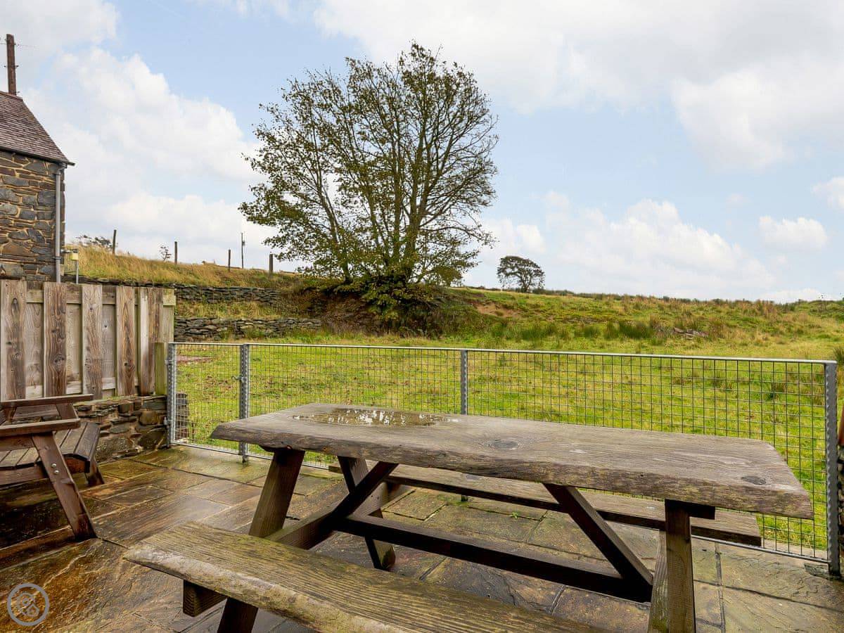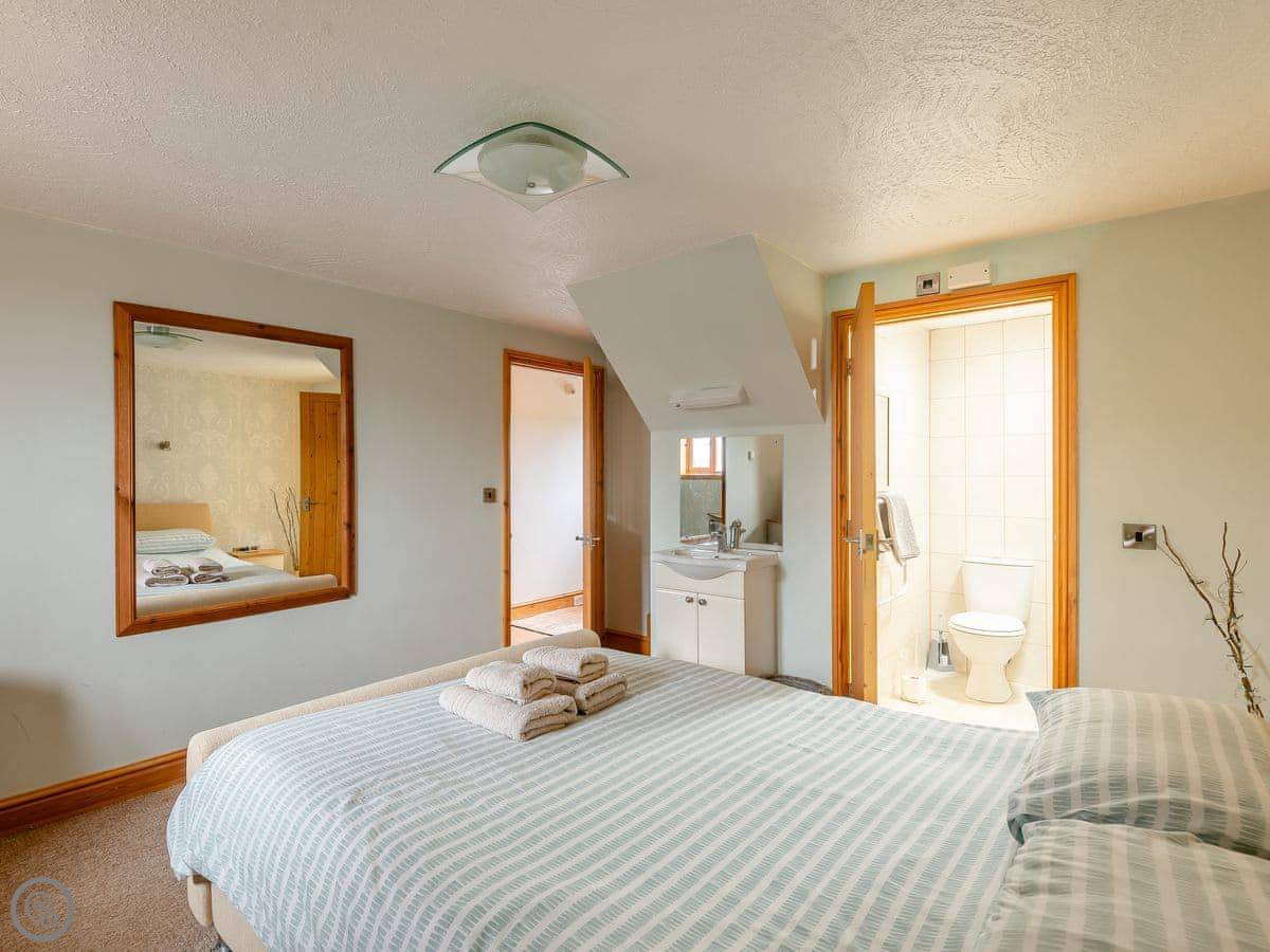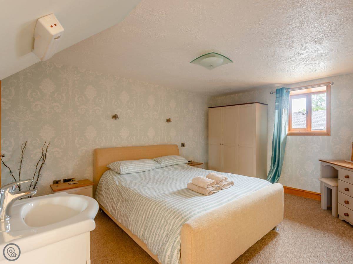 Robin's Nest is a converted farm building here at Penrhyn Farm. It's in the middle of nowhere, really. Llanfihangel y Creuddyn. It's a one bedroom place but sleeps four, because the sofa upstairs is a double sofa bed.
