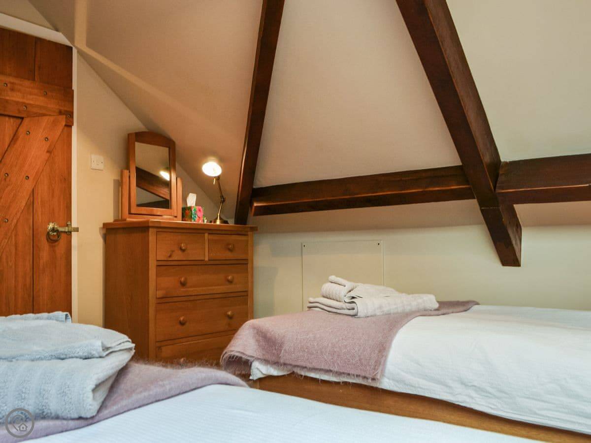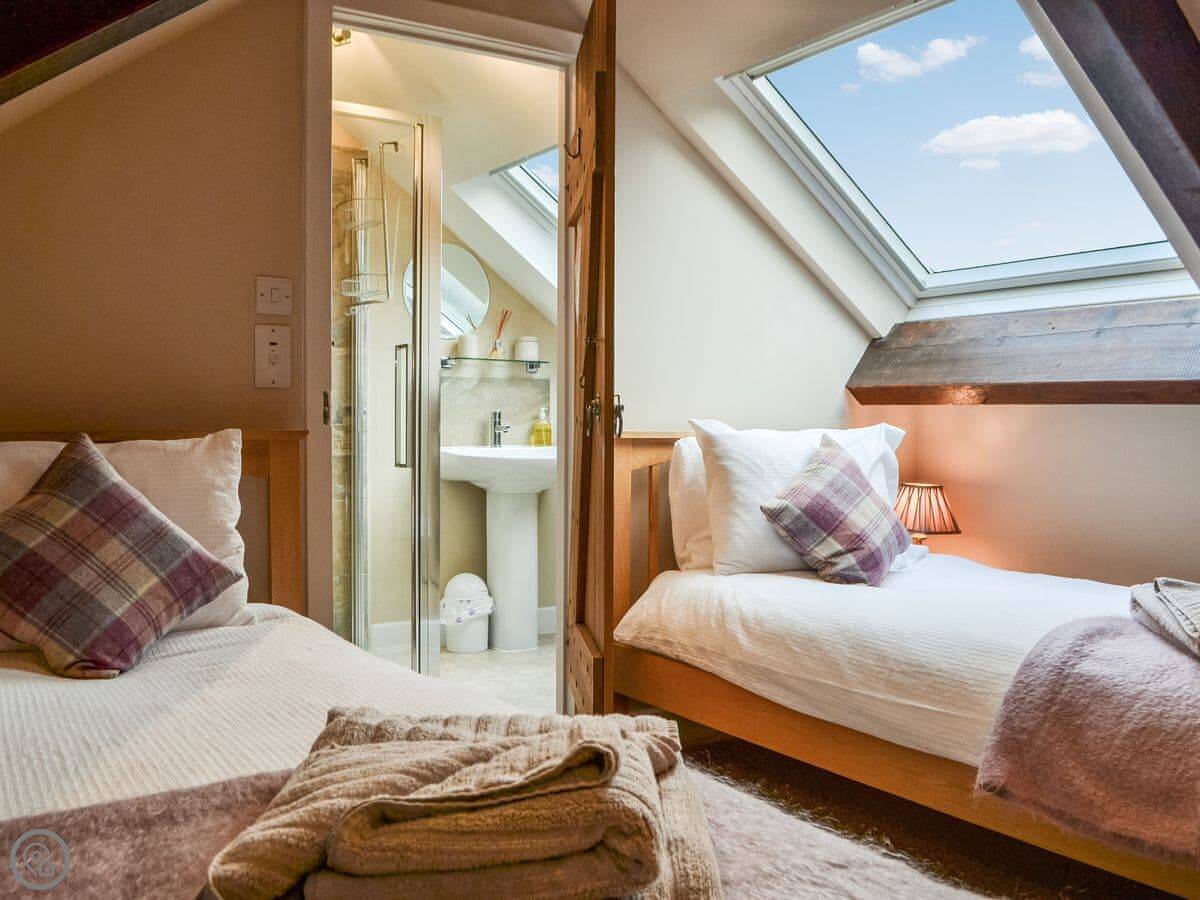 It sleeps six. Three bedrooms, two bathrooms. One double is on the ground floor, another is upstairs with an ensuite. The stairs are fine.
