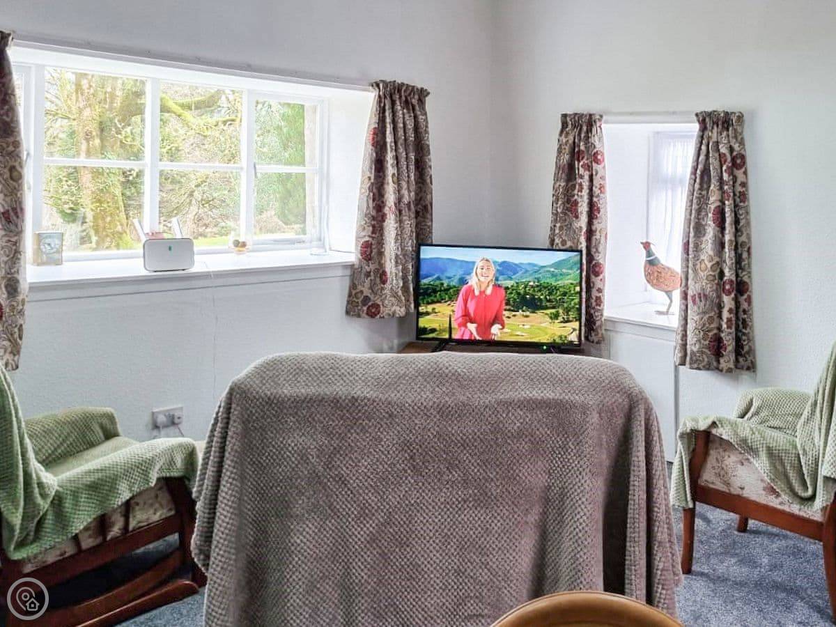 Beech Cottage is a cosy compact wee detached cottage, sitting at the bottom of the courtyard, perfect for a couple’s retreat or to make up a larger family group. Entrance is via 3 shallow steps down into the cottage into a welcoming open plan living/dining/kitchen area with cosy wood burning stove. A door into a hallway leading to the modern shower room is on the ground floor and delightful spacious bedroom, with kingsize bed and views over the grounds, where you may be lucky enough to see deer as you open the curtains of a morning! Thoughtfully renovated, decorated in traditional style with a contemporary twist, it’s a comfortable cottage, all on the ground floor, ideal for guests looking for an accessible cottage.