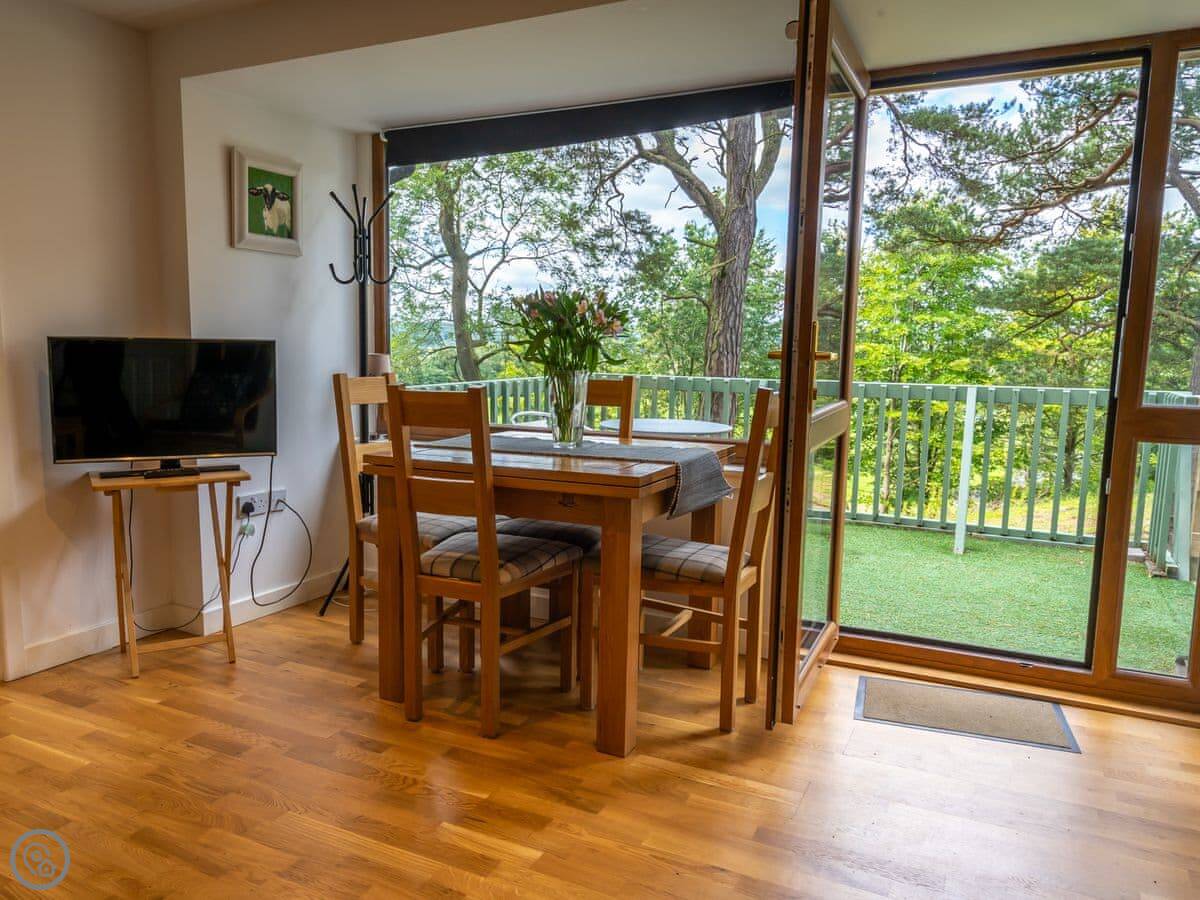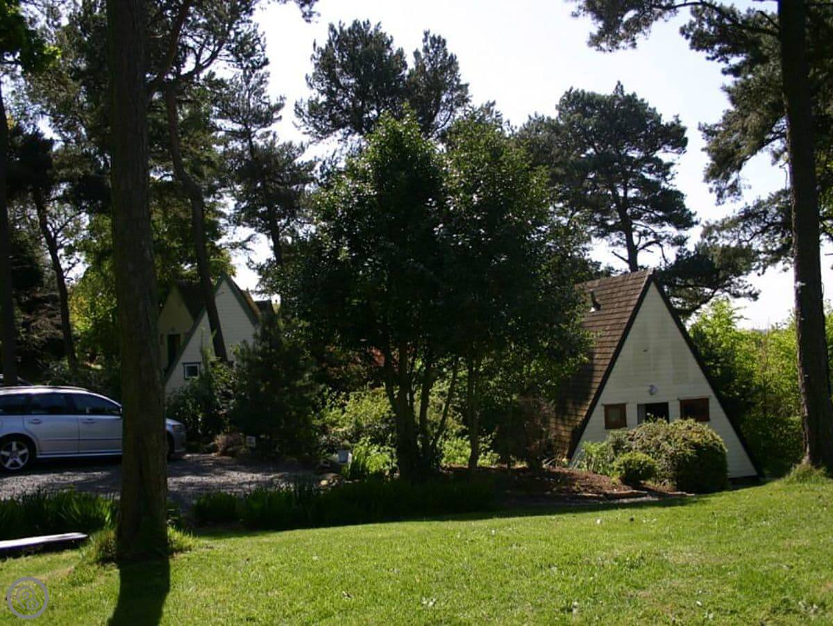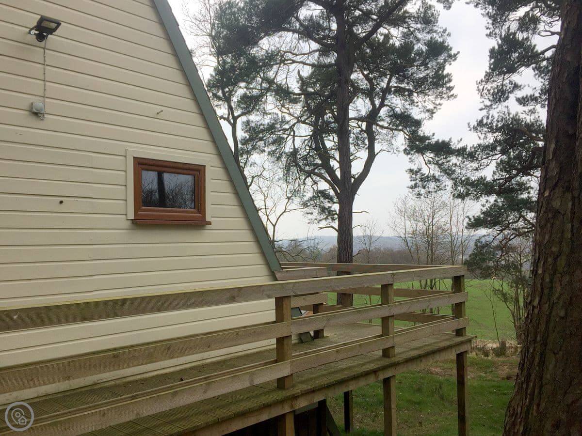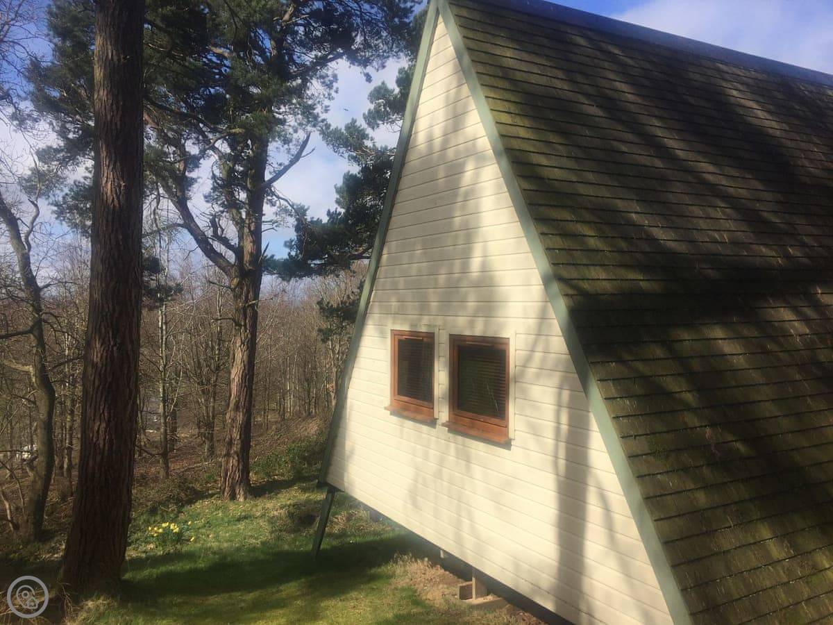 This is Ledi. It's a detached lodge on a small park just outside Linlithgow. You're in the countryside, surrounded by woodland, with fields in the distance. It's quiet.