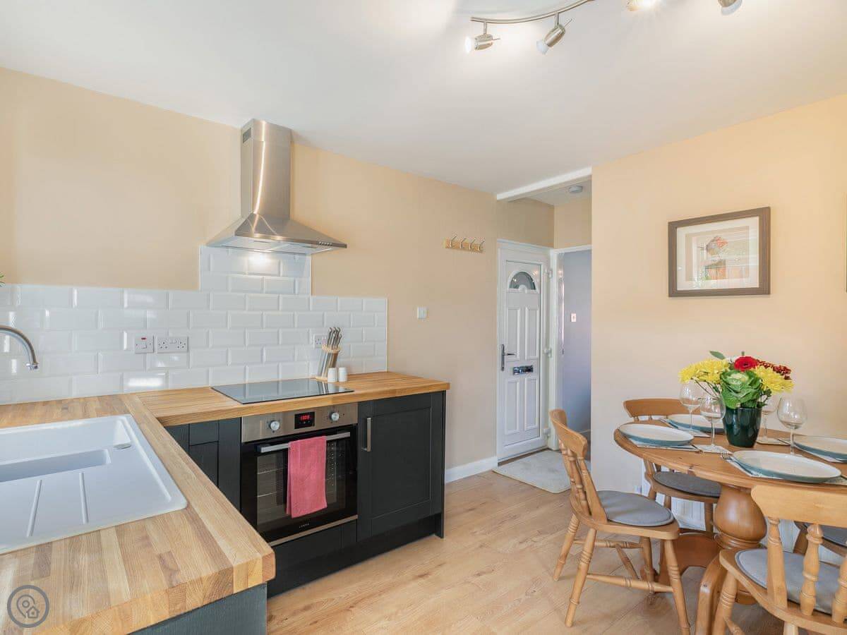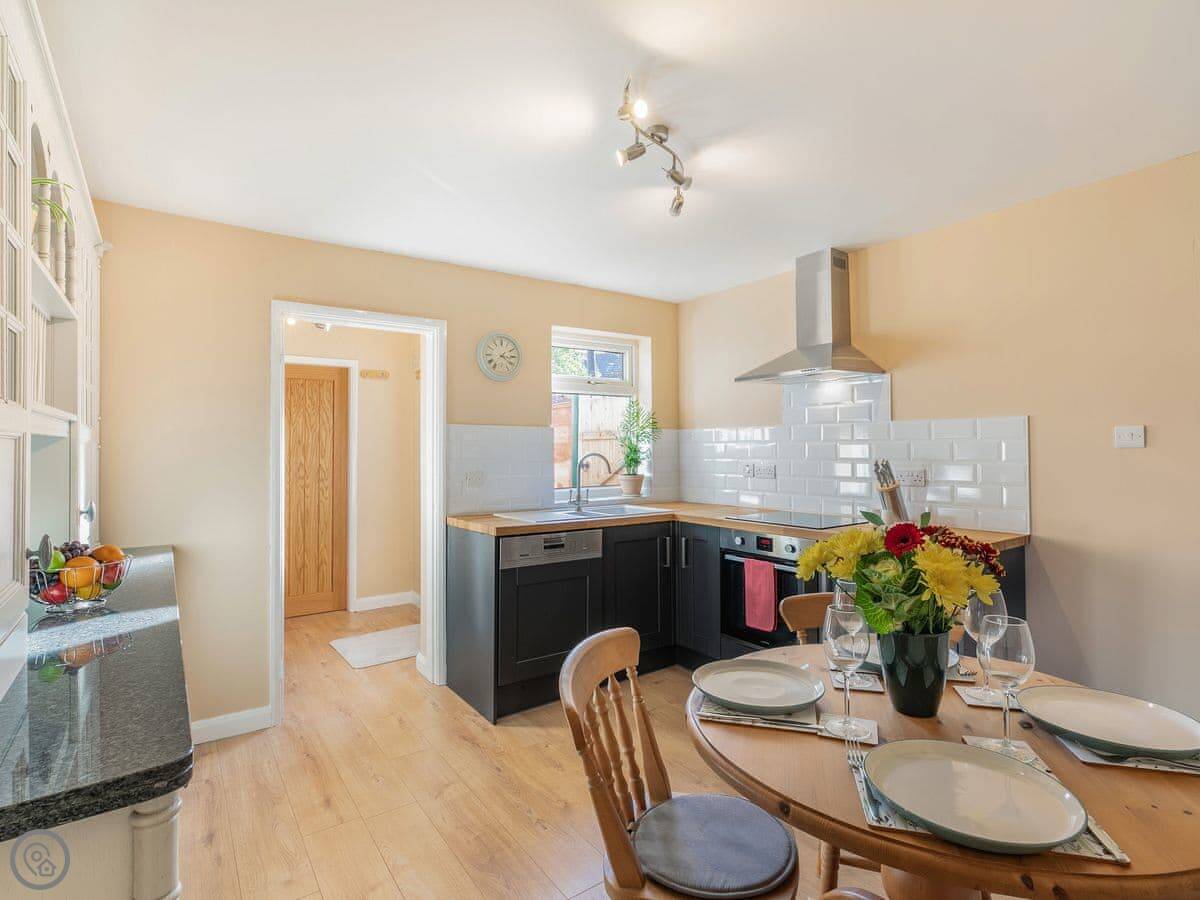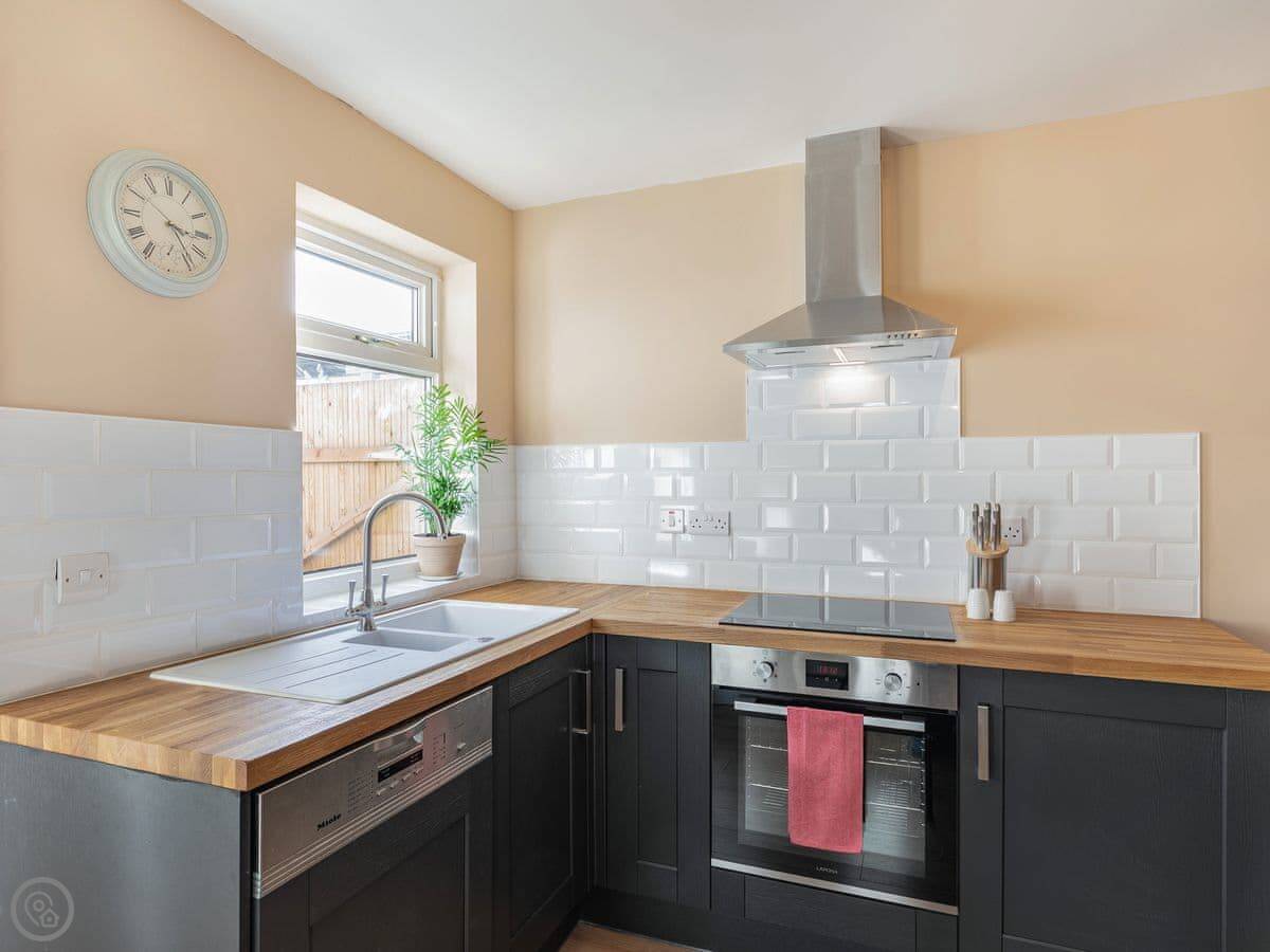 Rasen Cottage is on a street in Lincoln, near the castle. It's a terraced house. It sleeps four, in two bedrooms. There's one bathroom.
